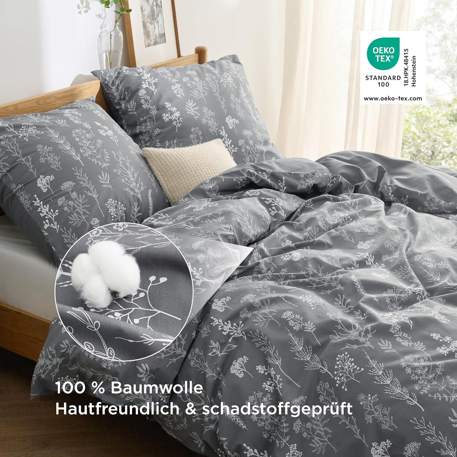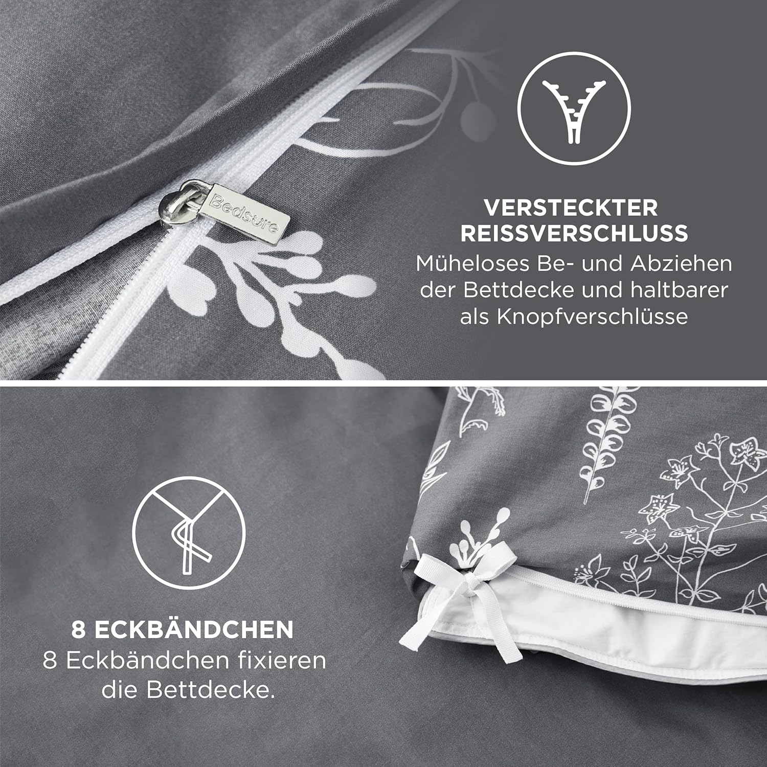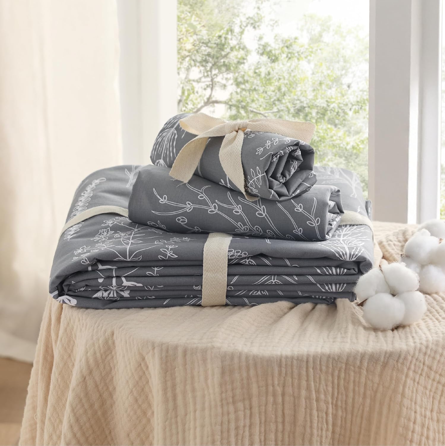 Плик за завивка Bedsure Cotton Grey/Ivory с бляскав мотив на клони ви предлага изключителна мекота и комфорт. Хипоалергенният памучен комплект спално бельо е подходящ за страдащи от алергии и предпазва завивката ви от замърсявания, петна и прах. В същото време, сваляемият калъф за завивка е много по-лесен за почистване от самата завивка. Двустранните контрастни цветове на калъфа за завивка, изработен от 100% памук, осигуряват изключителни тонове и комфорт, които ще ви осигурят спокоен и щастлив сън.