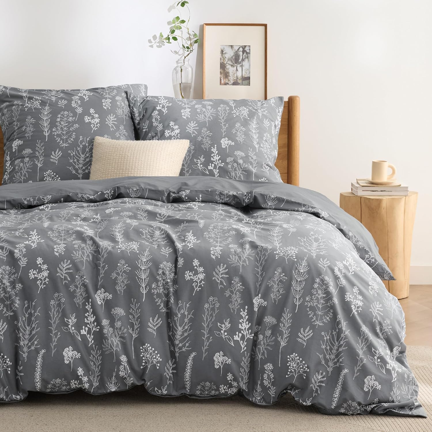 Bedsure Reversible Cotton Duvet Cover Set is lush and flowing with charming orange plum blossom on grey/ivory duvet cover. Made from fine, soft cotton fabric in inviting and soothing tones, this reversible branch bedding set will add a lively and delicate flair to your bedroom. Bring a breath of fresh air to your bed with our beautiful bed linen.
