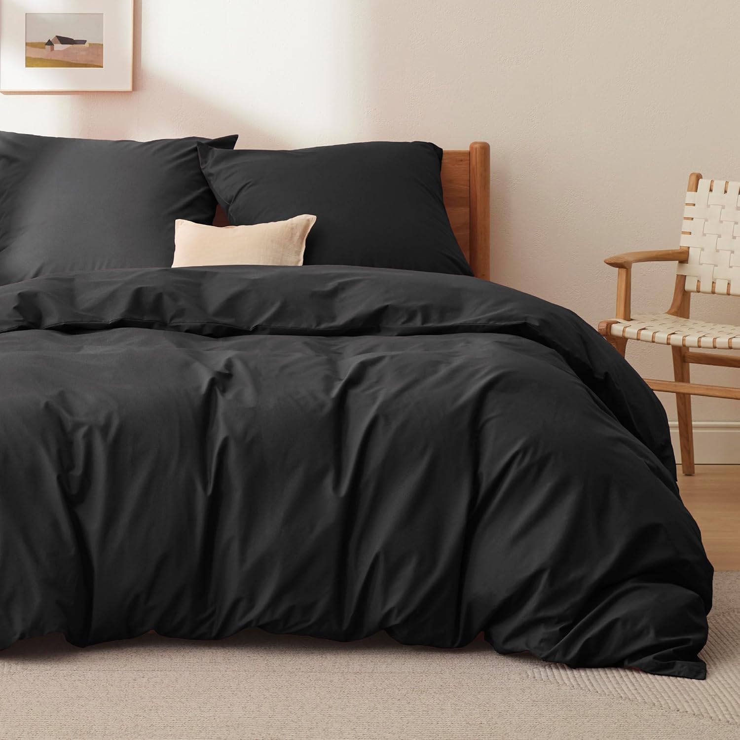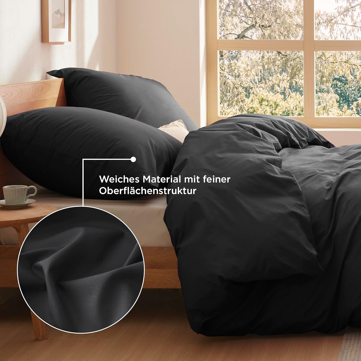 Спално бельо BEDSURE 200 x 200 см Памук Черен - Комплекти спално бельо 200 x 200 см Плик за завивка от 3 части с 2 калъфки за възглавници 80 x 80 см, Oeko-Tex Спално бельо Черен с цип