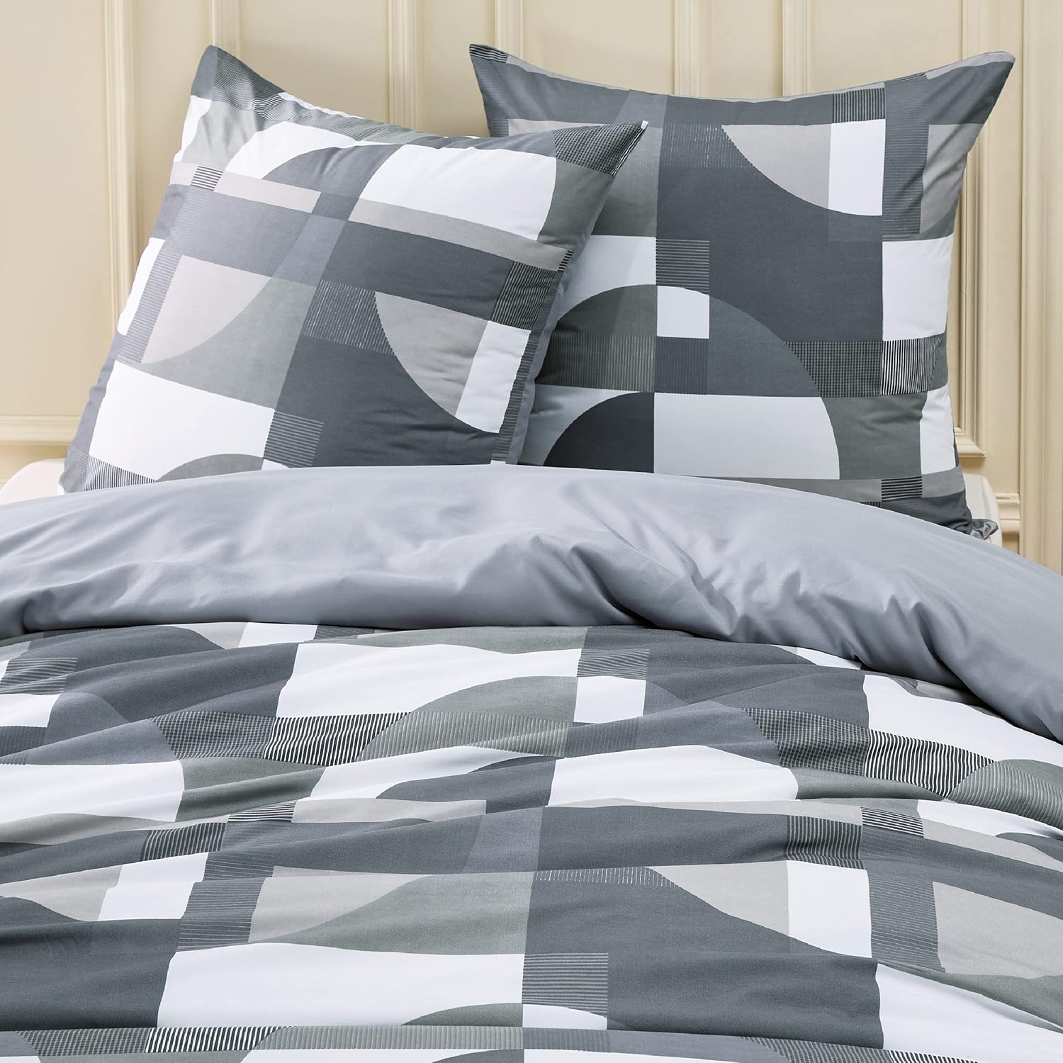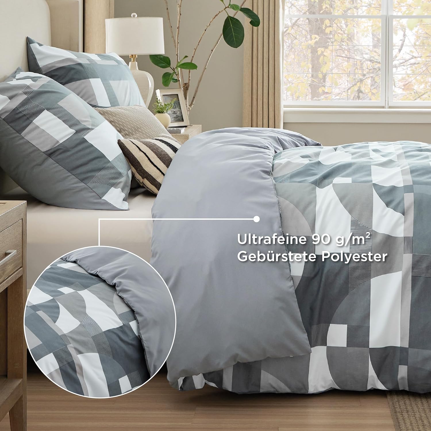 Спално бельо BEDSURE 200 x 220 см калъф за завивка от 3 части - Комплекти спално бельо 200 x 220 см с 2 калъфки за възглавници 80 x 80 см, Oeko-Tex двустранно спално бельо със сив геометричен мотив за двойно легло с цип