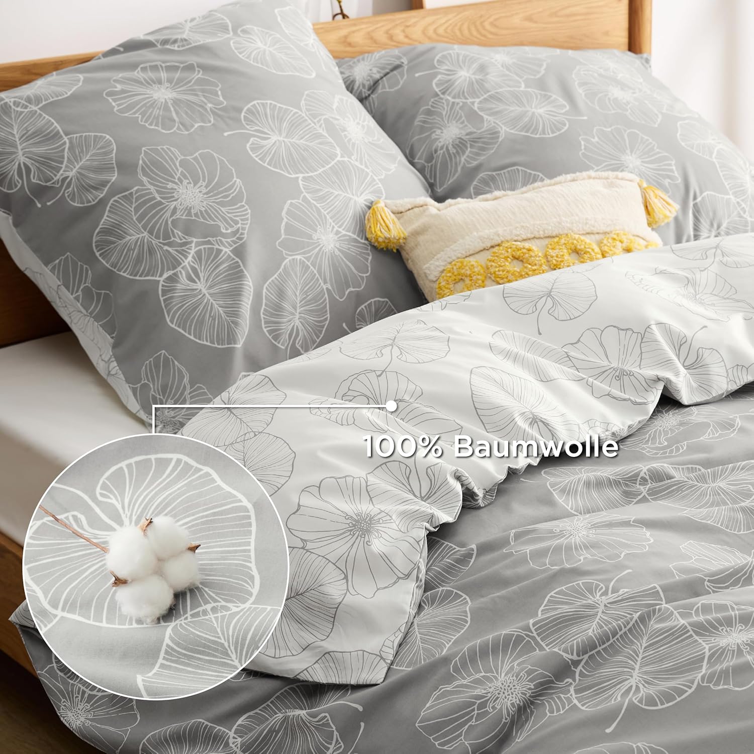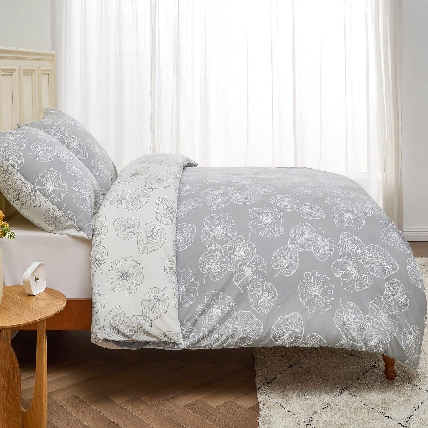 Bedsure Reversible Cotton Duvet Cover Set is lush and flowing with charming orange plum blossom on grey/ivory duvet cover. Made from fine, soft cotton fabric in inviting and soothing tones, this reversible branch bedding set will add a lively and delicate flair to your bedroom. Bring a breath of fresh air to your bed with our beautiful bed linen.
