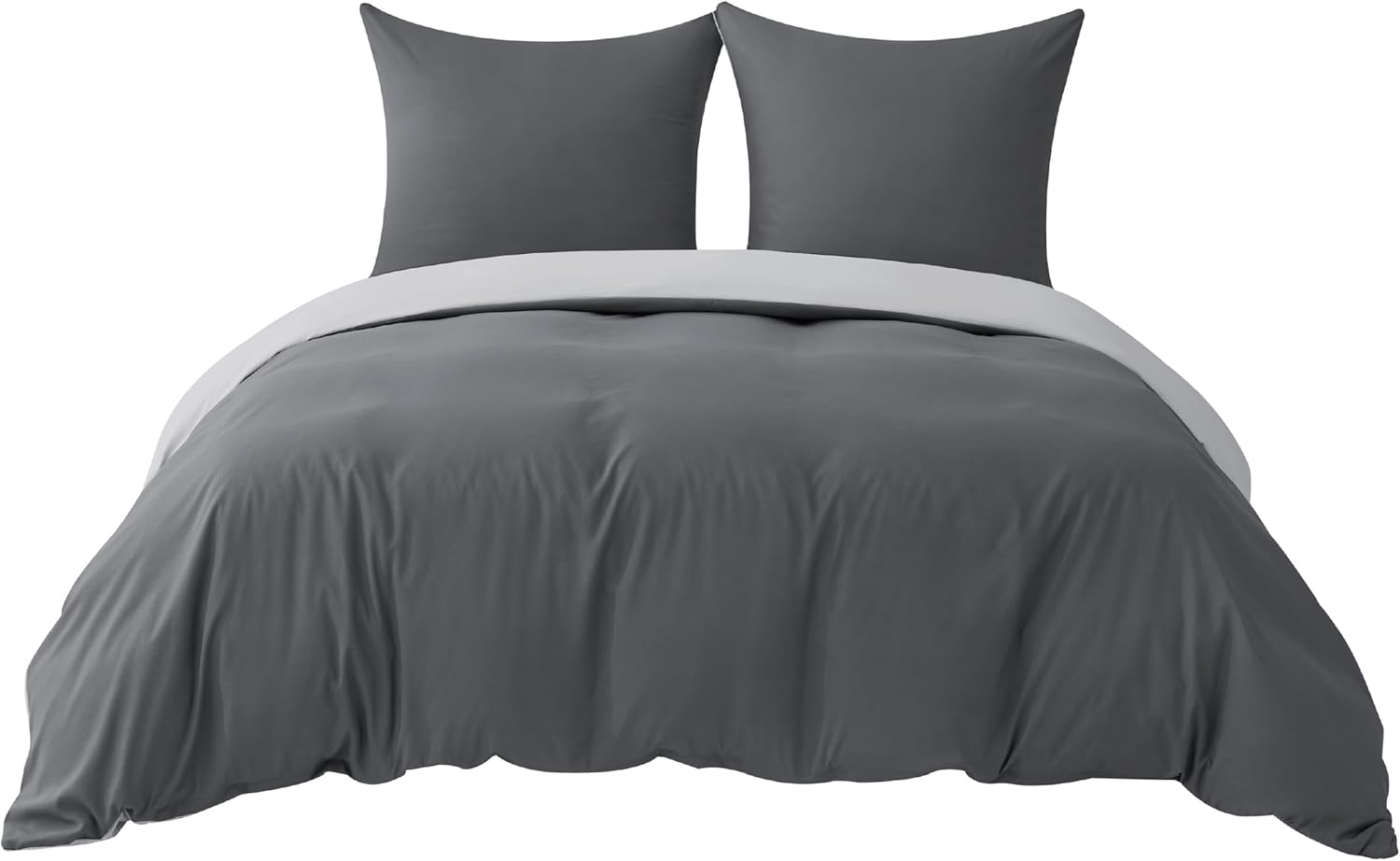 Спално бельо BEDSURE 220 x 240 см, 3 комплекта спално бельо в сиво/антрацит, калъф за завивка 220 x 240 см с 2 калъфки за възглавници 80 x 80 см, Oeko-Tex двулицево спално бельо с цип