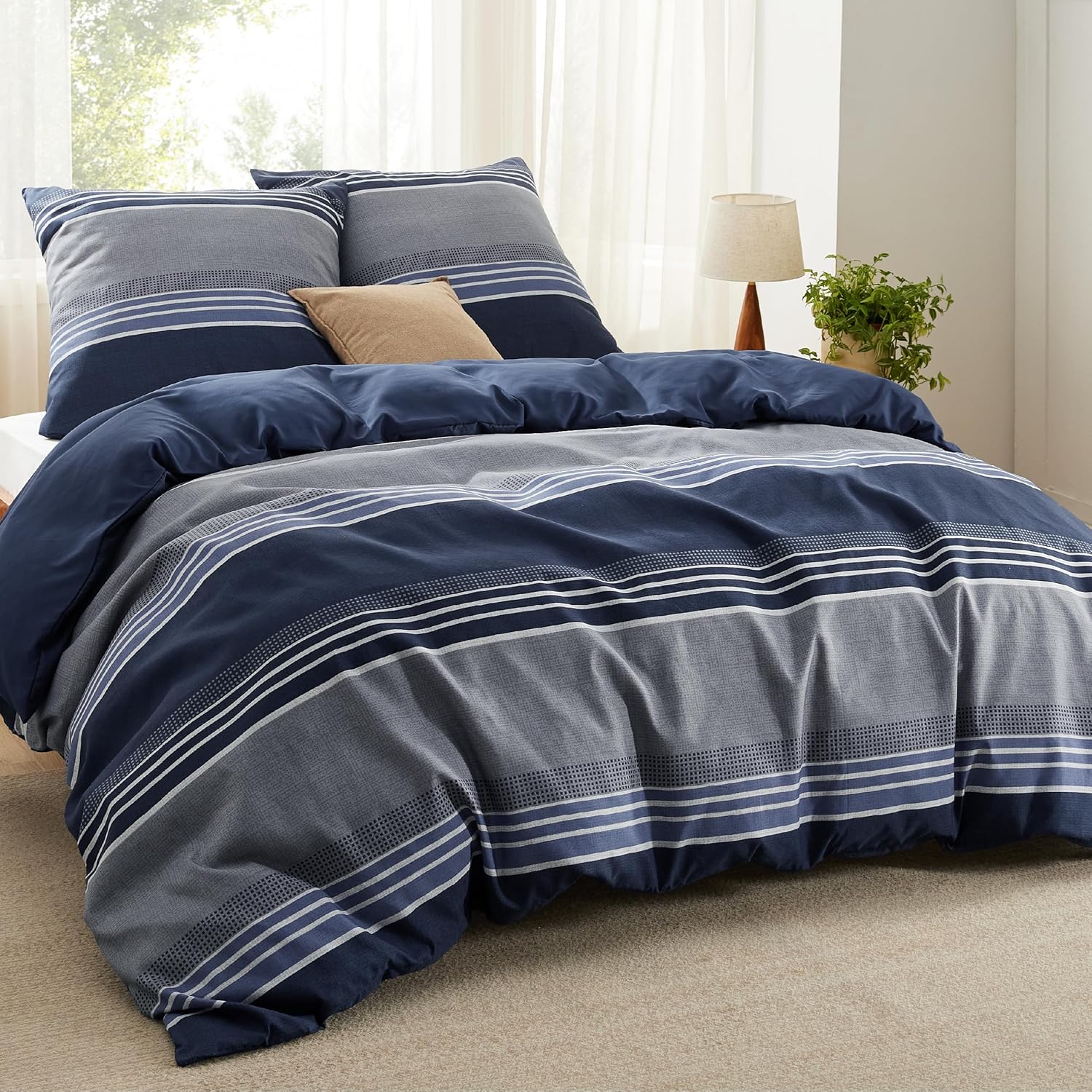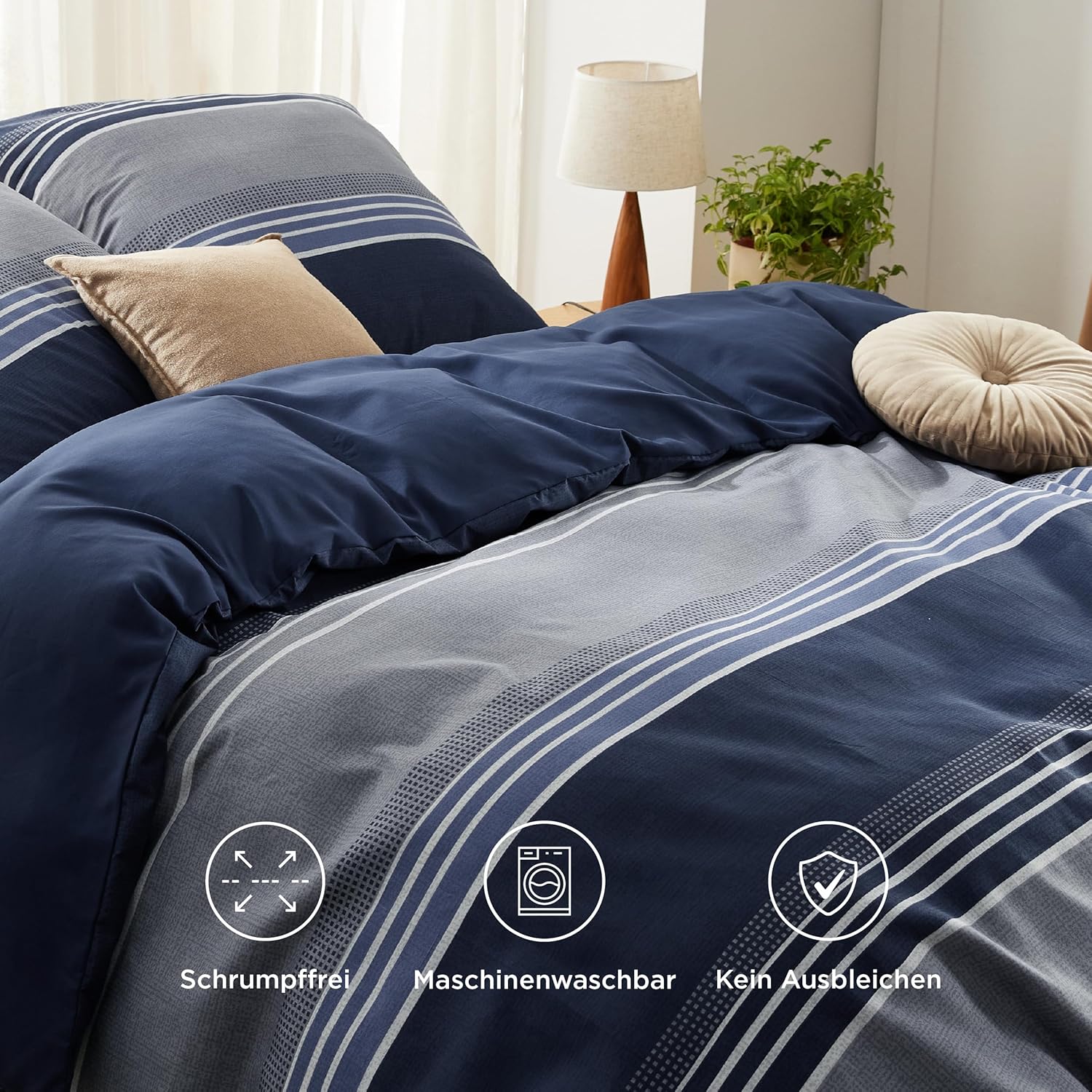 Спално бельо BEDSURE 220 x 240 см калъф за завивка от 3 части - Комплекти спално бельо син 220 x 240 см с 2 калъфки за възглавници 80 x 80 см, Oeko-Tex двулицево спално бельо със син шарен мотив и цип