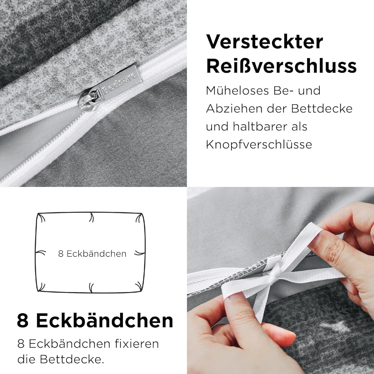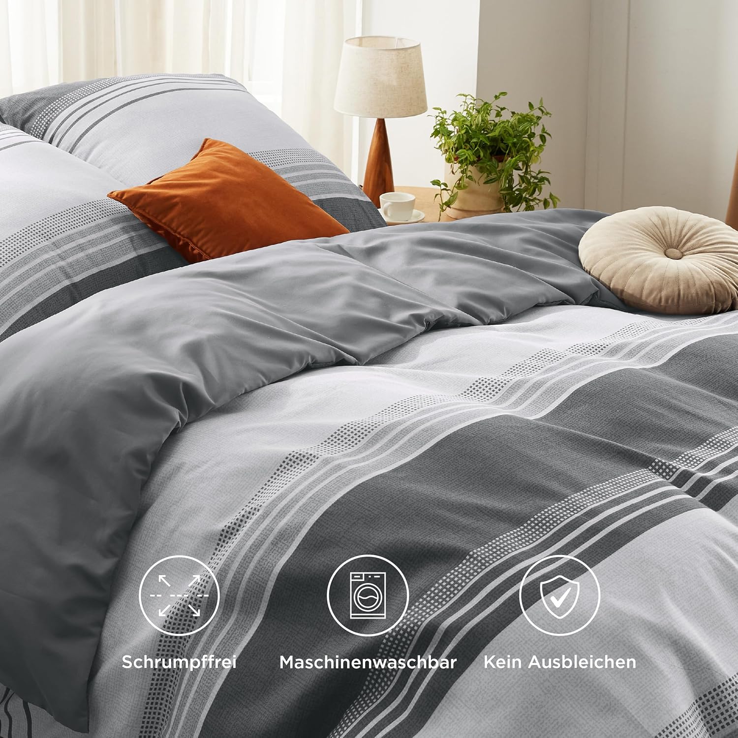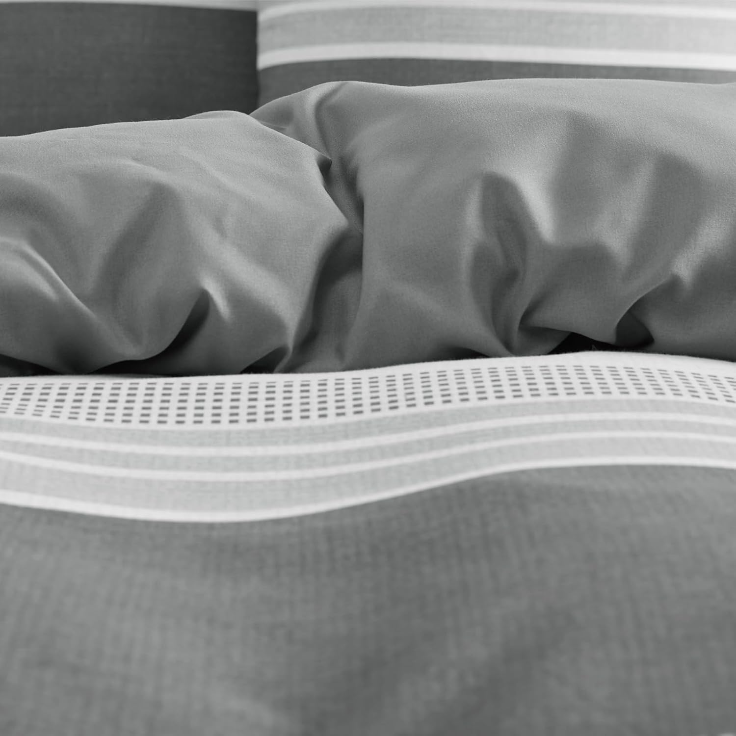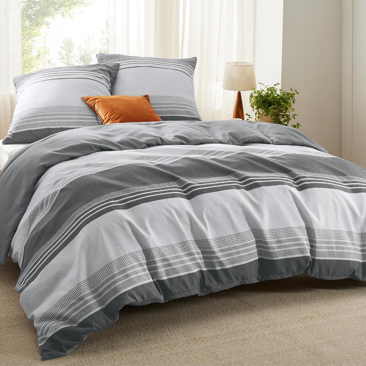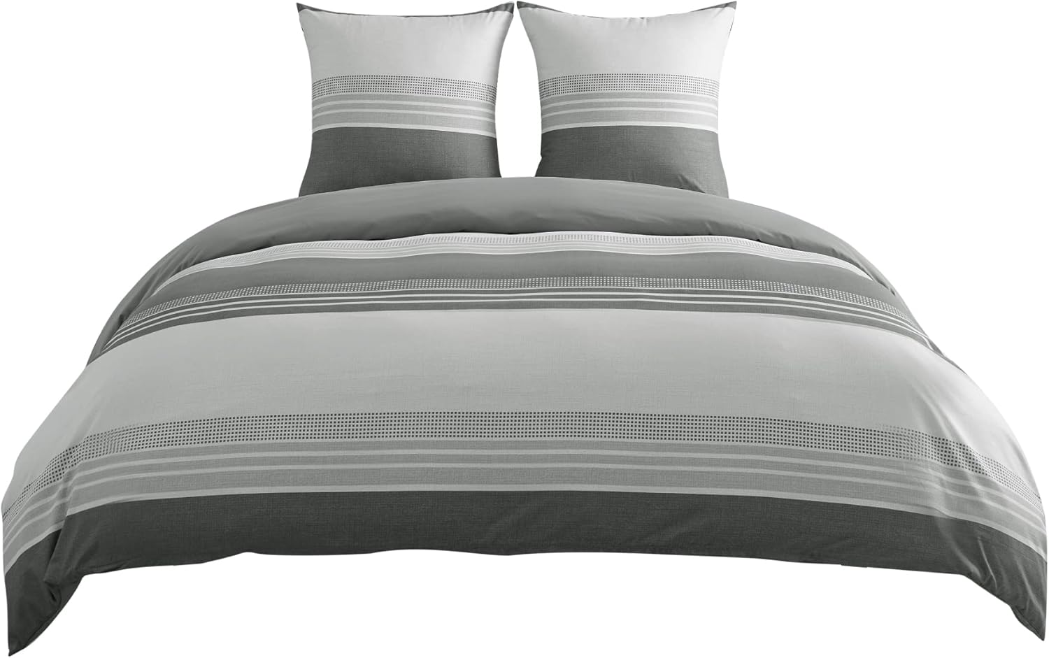 Спално бельо BEDSURE 220 x 240 см калъф за завивка от 3 части - Комплекти спално бельо сив 220 x 240 см с 2 калъфки за възглавници 80 x 80 см, Oeko-Tex двулицево спално бельо сиво на райета с цип