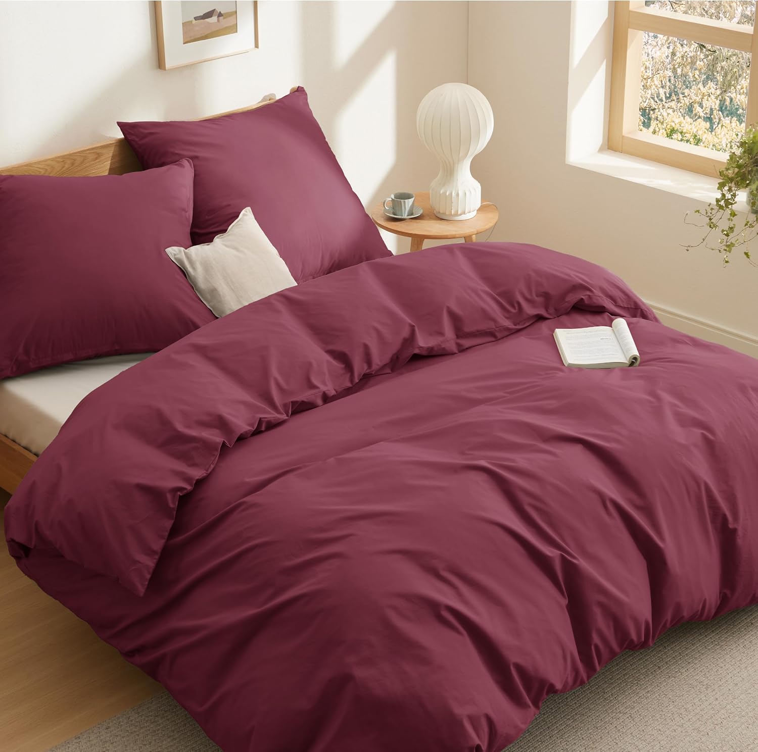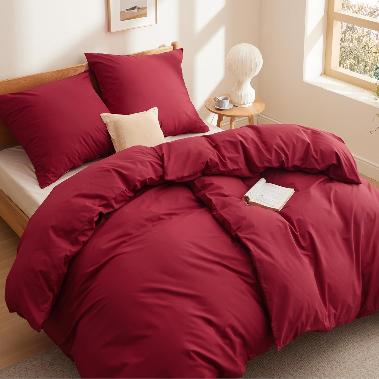 Спално бельо BEDSURE 220 x 240 см Памучно бордо червено - Комплекти спално бельо 240 x 220 см Плик за завивка от 3 части с 2 калъфки за възглавници 80 x 80 см, Oeko-Tex спално бельо червено с цип