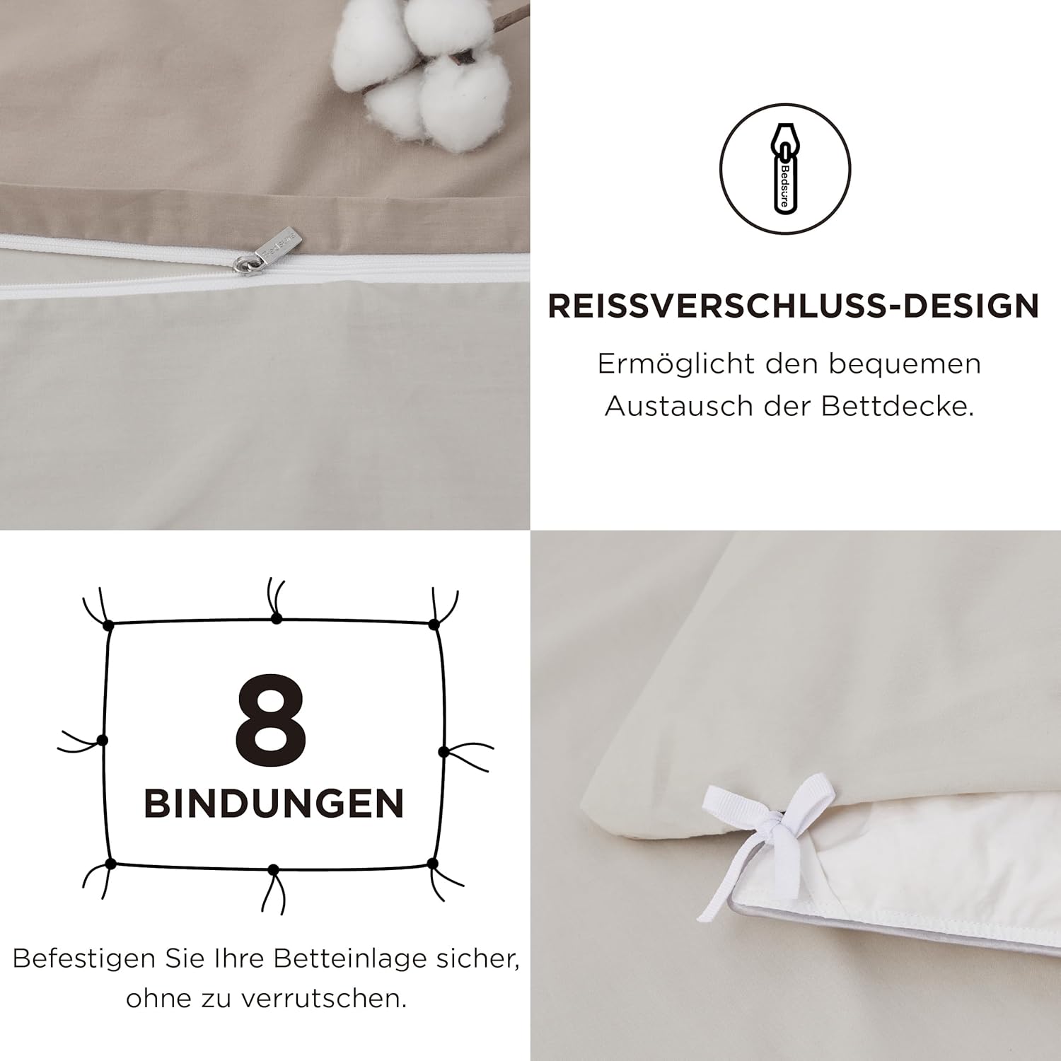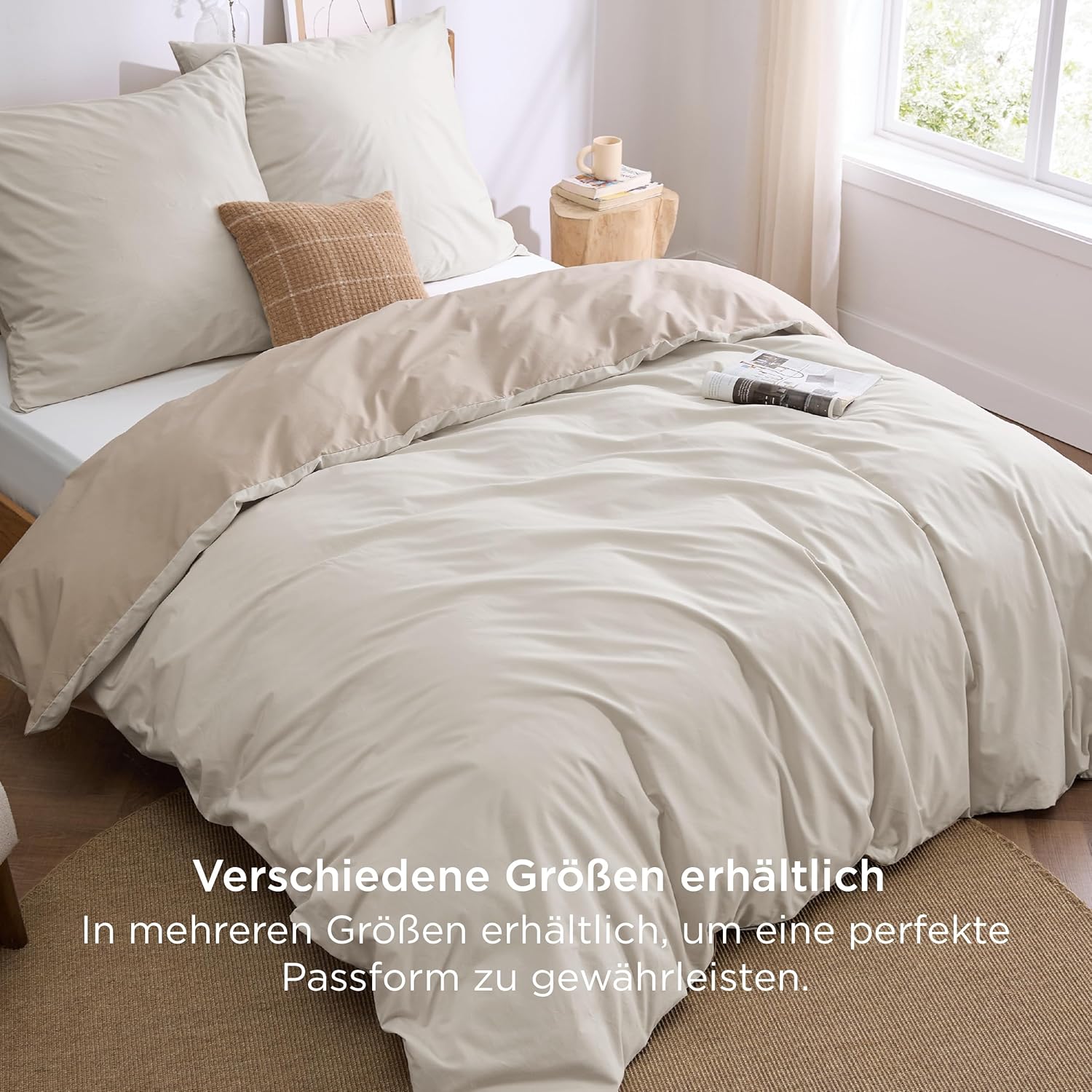 Спално бельо BEDSURE 220 x 240 см, памук, бежово - Комплекти спално бельо 220 x 240 см, двулицево спално бельо от 3 части с 2 калъфки за възглавници 80 x 80 см, Oeko-Tex двуцветен калъф за завивка с цип, каки тауп