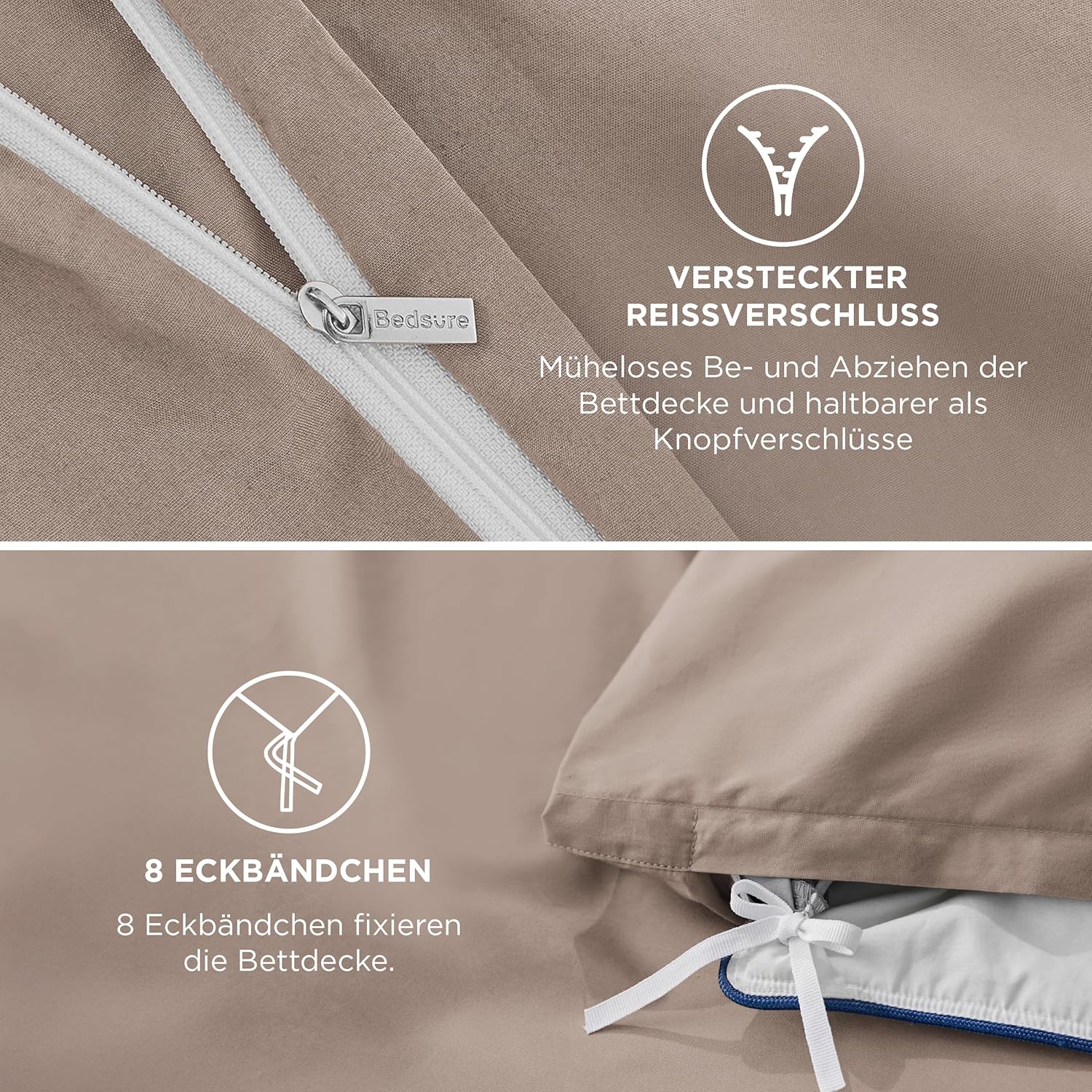 Спално бельо BEDSURE 220 x 240 см Памук Каки - Комплекти спално бельо 240 x 220 см Плик за завивка от 3 части с 2 калъфки за възглавници 80 x 80 см, Oeko-Tex Спално бельо Taupe с цип