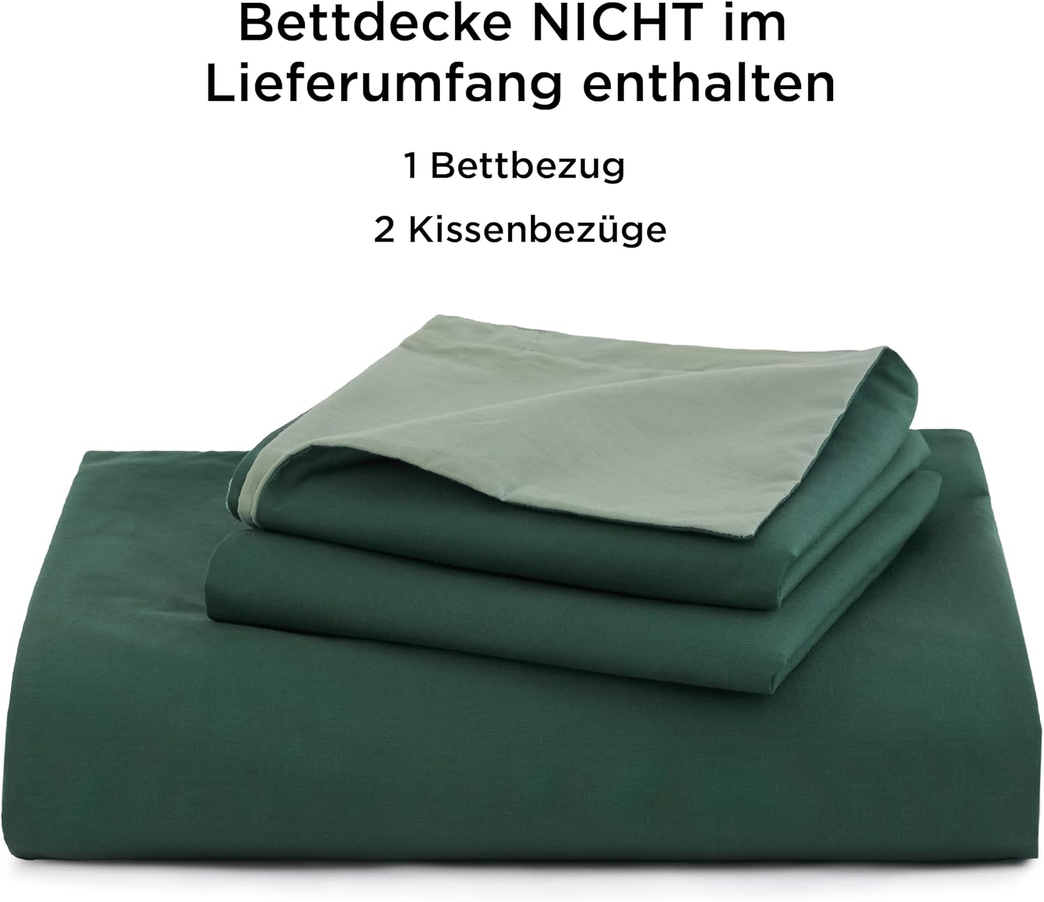 Спално бельо BEDSURE 220 x 240 см, тъмнозелено - Комплекти памучно спално бельо 220 x 240 см, двулицево спално бельо от 3 части с 2 калъфки за възглавници 80 x 80 см, Oeko-Tex двуцветен калъф за завивка с цип