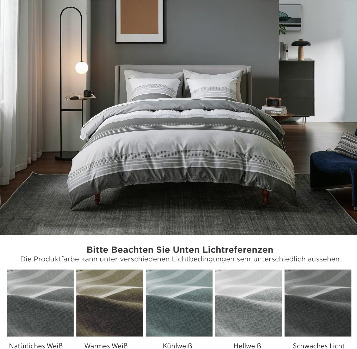 Спално бельо Bedsure от 3 части 200 x 200 см - Комплекти спално бельо сив 200 x 200 см микрофибър с 2 калъфки за възглавници 80 x 80 см калъф за завивка на райета с цип