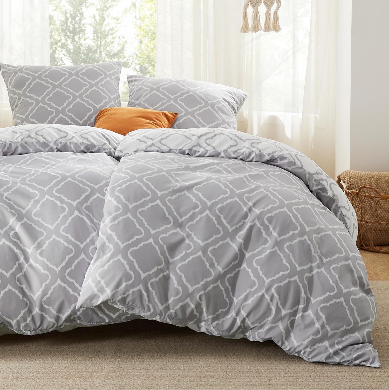 Спално бельо Bedsure от 3 микрофибърни части 200 x 200 см, калъф за завивка 200 x 200 см с калъфка за възглавница 80 x 80 см, сиво, за двойно легло с цип