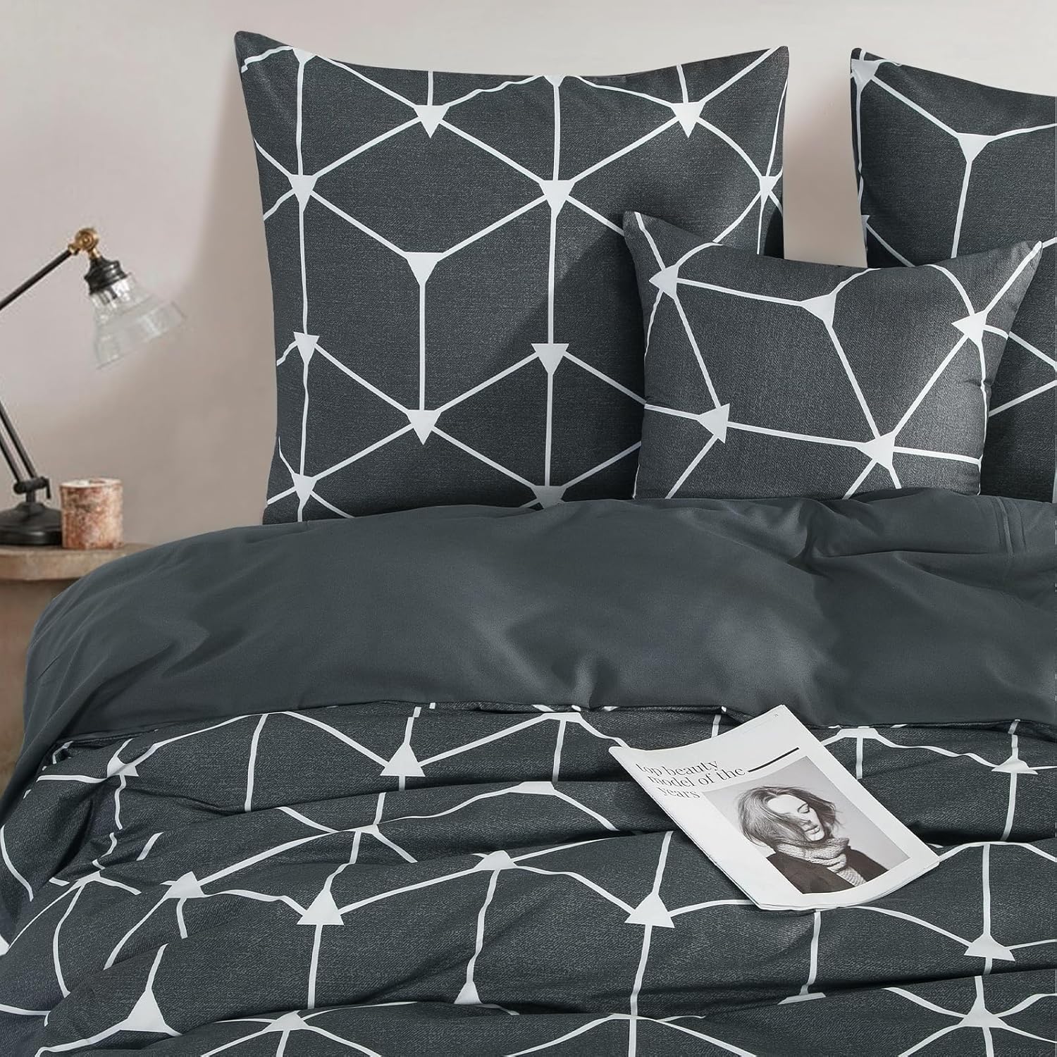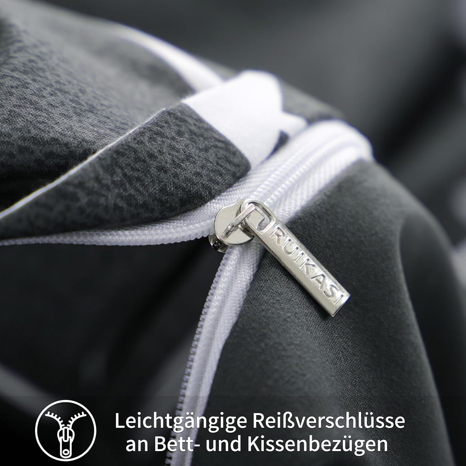 Спално бельо RUIKASI 135 x 200 см, 4 части, антрацит – Пликове за завивки 135 x 200 см, комплект от 2 броя с геометричен мотив, Комплекти спално бельо от микрофибър 135 x 200 см с цип, меко и нежелаещо гладене