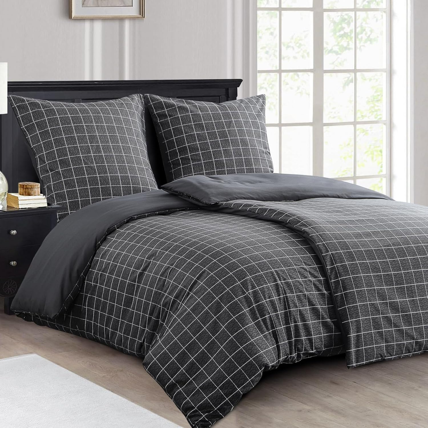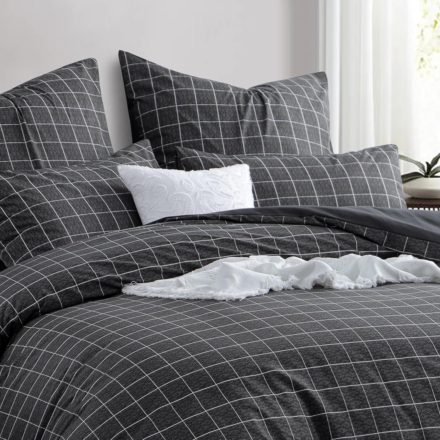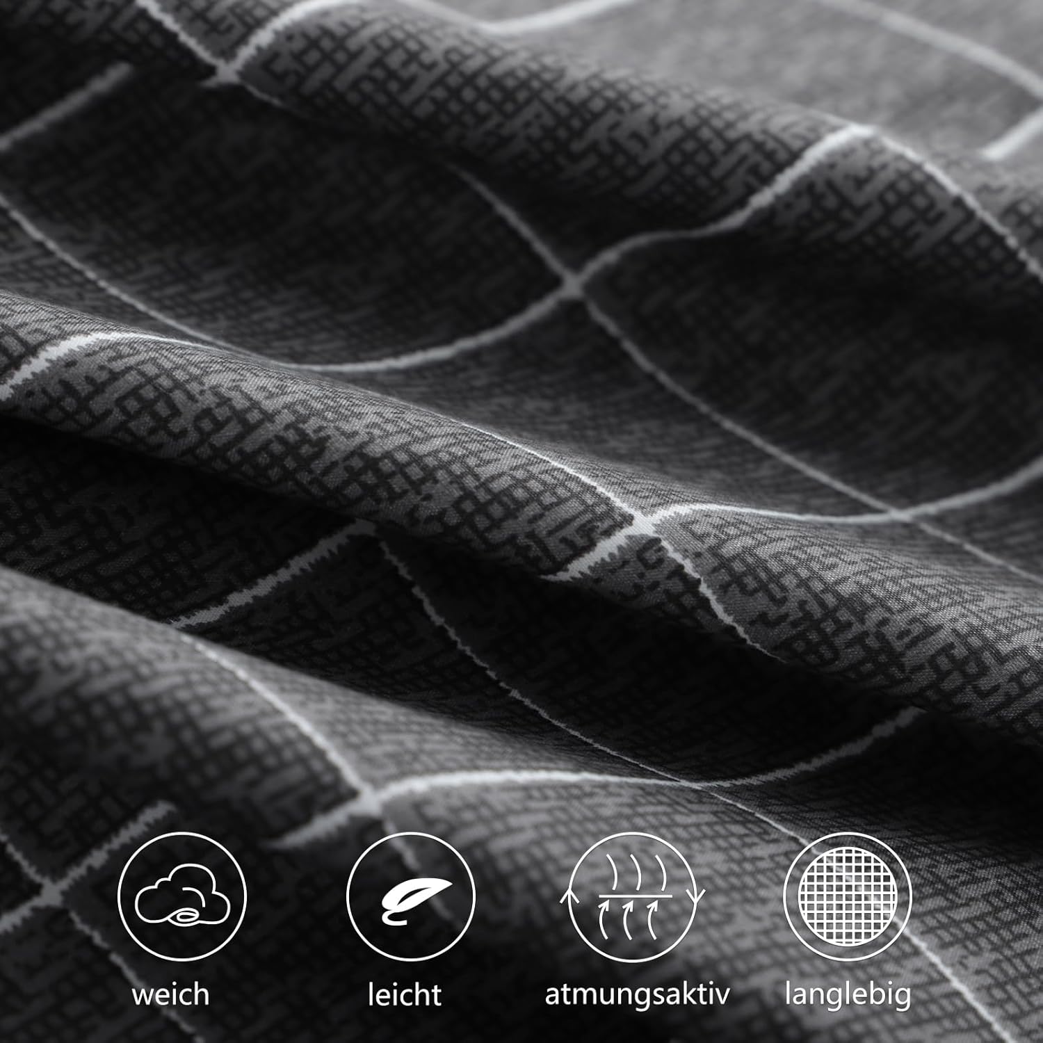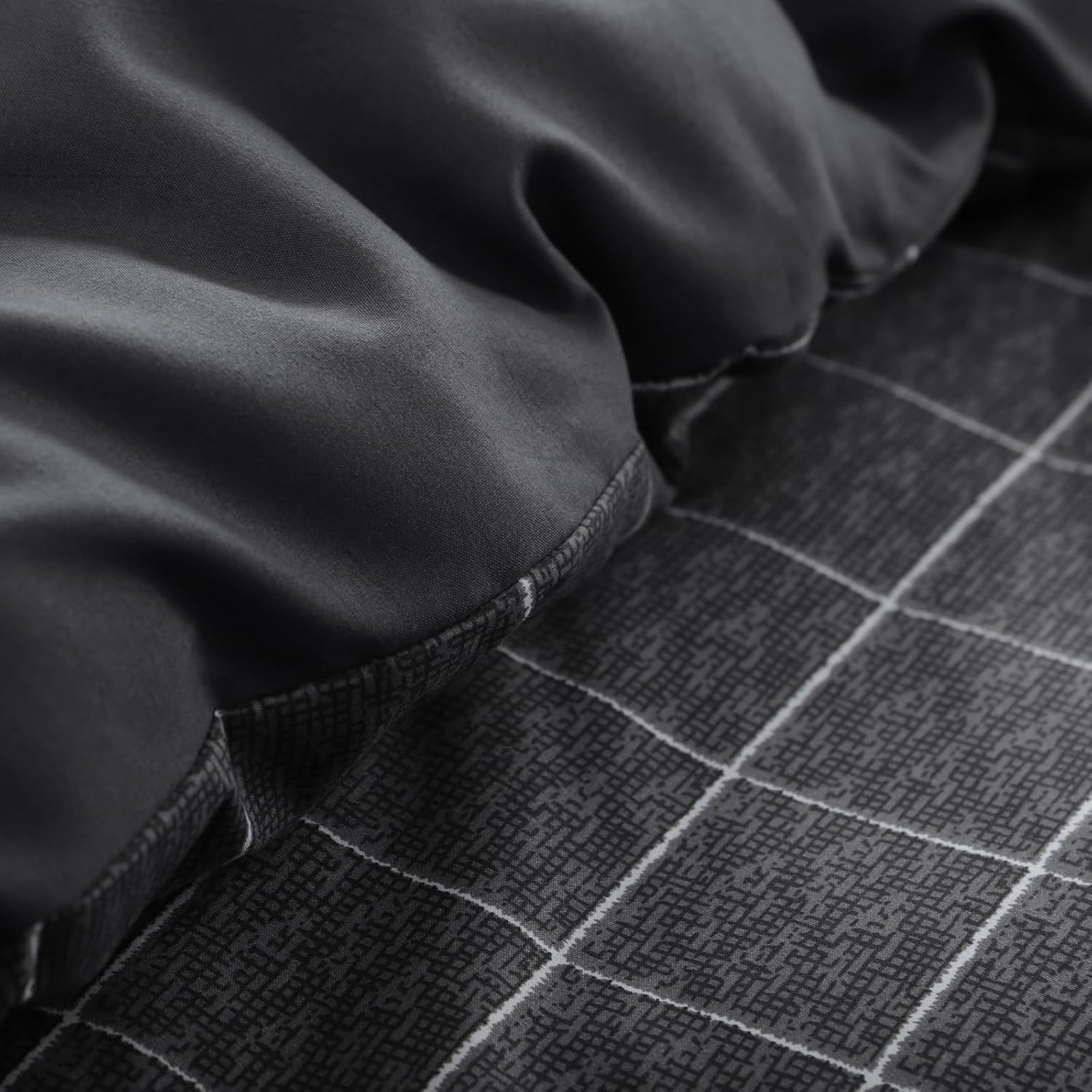 Спално бельо RUIKASI 135 x 200 см, 4 части, антрацит – Пликове за завивки 135 x 200 см, комплект от 2 броя с решетъчен мотив, Комплекти спално бельо от микрофибър 135 x 200 см с цип, меко и нежелаещо гладене