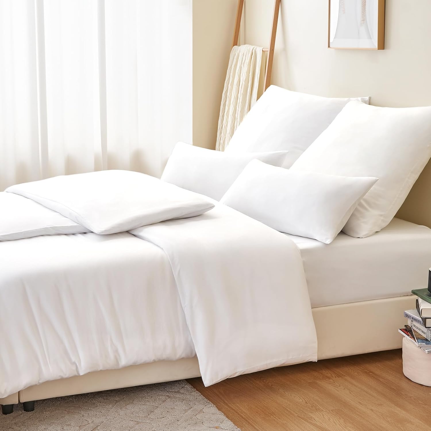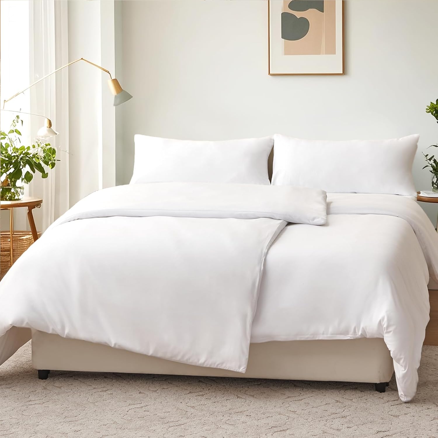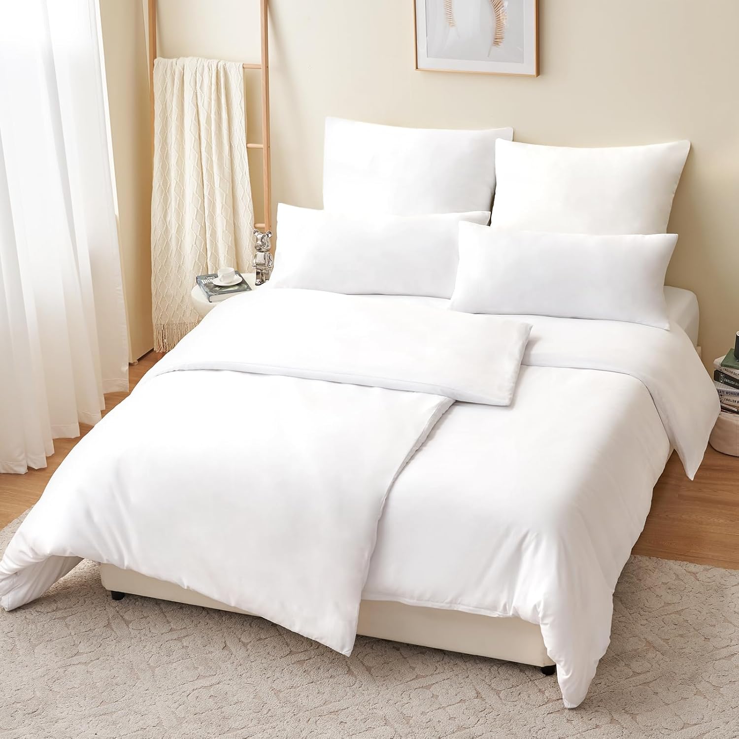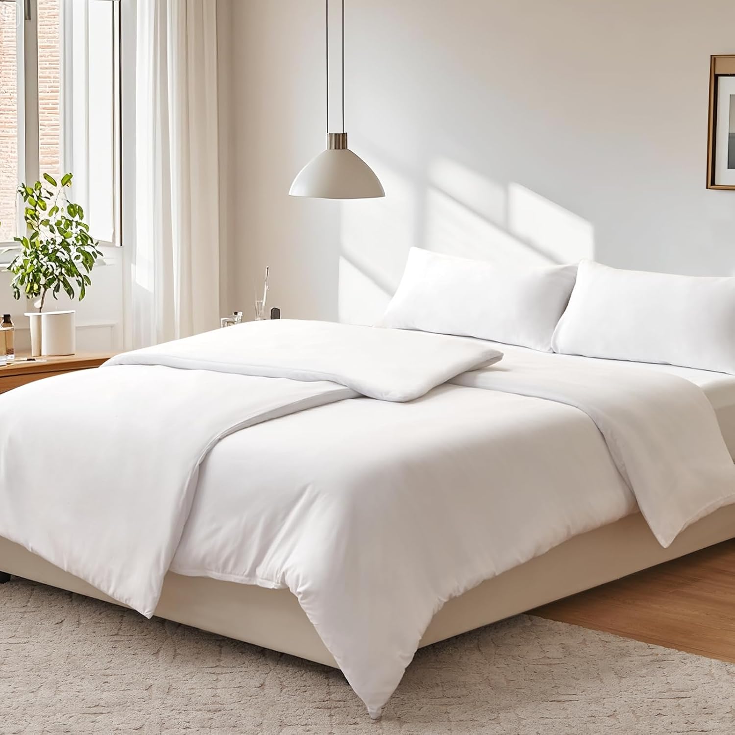 Спално бельо RUIKASI 135 x 200 см, 4 части, бяло - Комплекти спално бельо от бял микрофибър Oeko-Tex, 2 калъфа за завивки 135 x 200 см + 2 калъфки за възглавници 40 x 80 см с цип, меко и не се глади