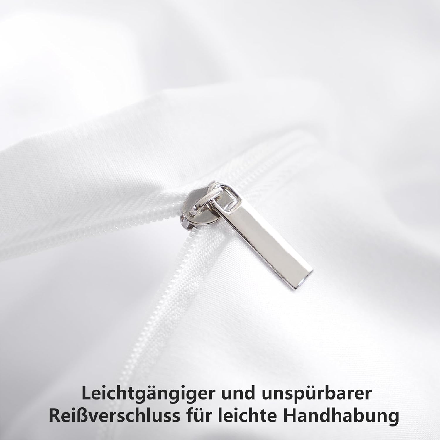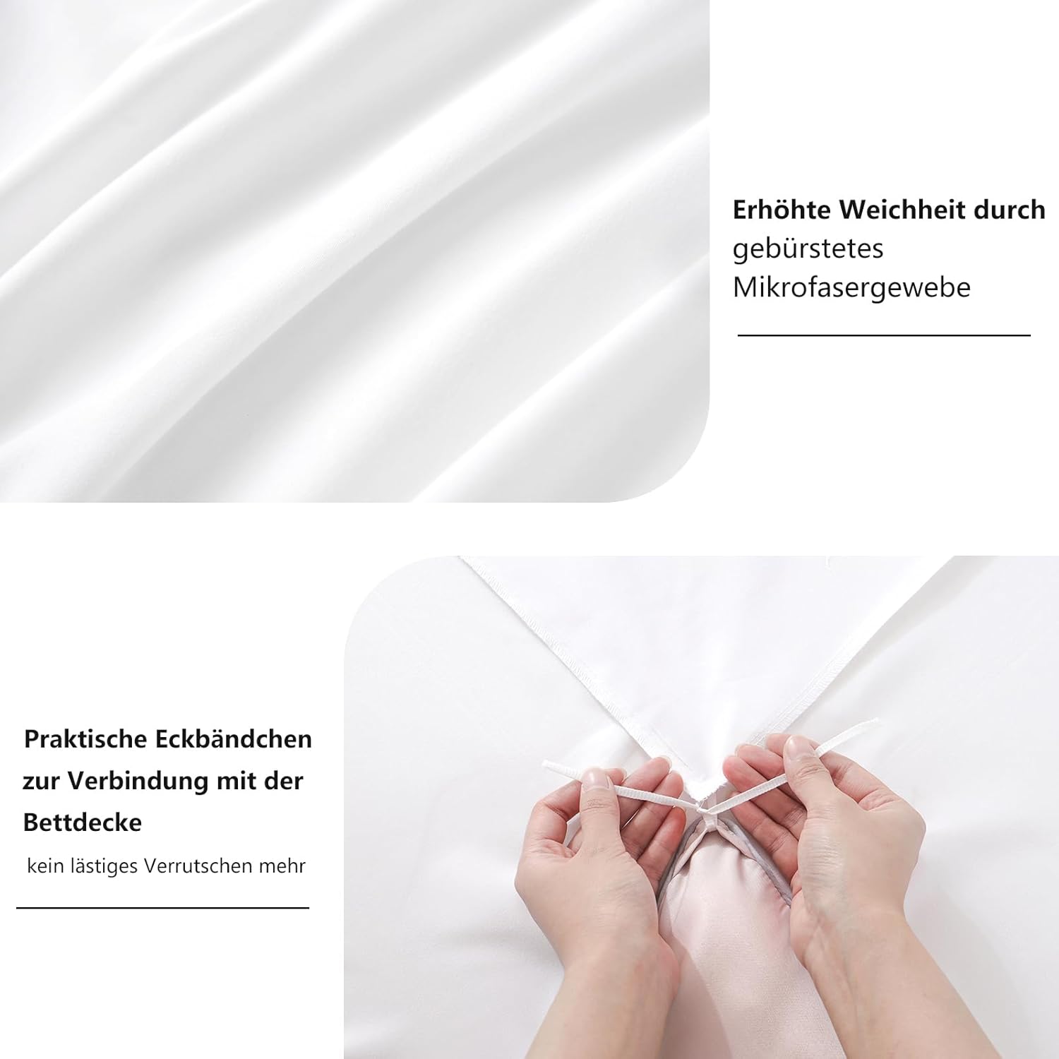 • Комплектът спално бельо от 4 части с размери 135 x 200 см (съдържание на кутията: 2 калъфа за завивки (135 x 200 см) + 2 калъфки за възглавници (80 x 80 см)) с гладка повърхност и фино усещане е изработен от микрофибър. Поради това е много приятен на допир, тъй като е особено мек и нежен към кожата, и можете да се насладите на спокоен нощен сън.
