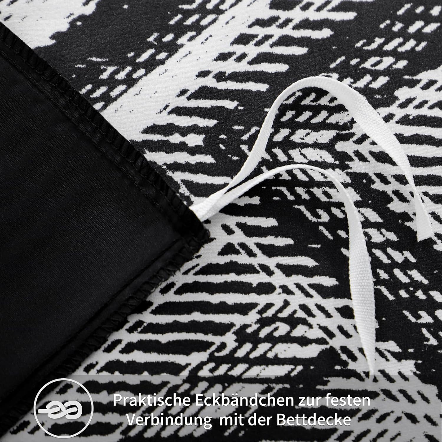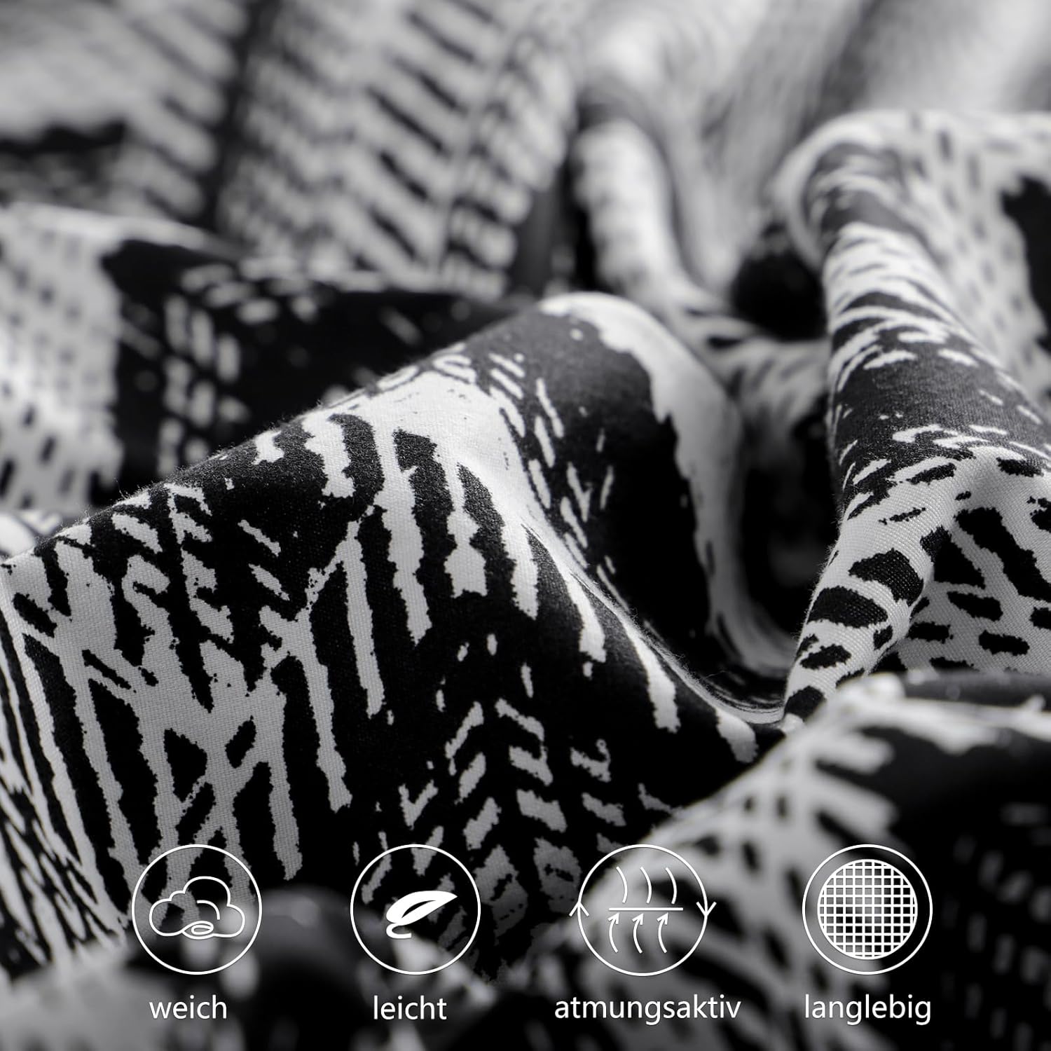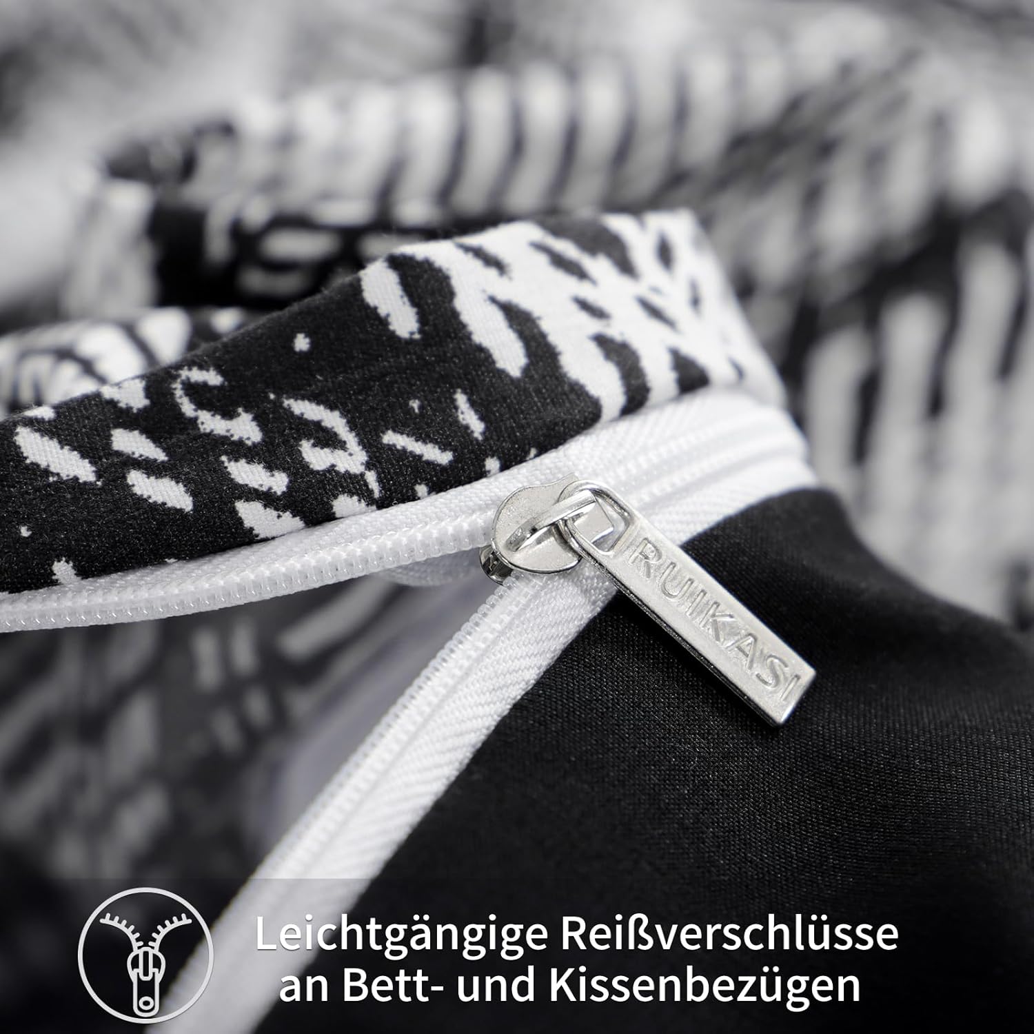Спално бельо RUIKASI 135 x 200 см, 4 части, черно - Пликове за завивки 135 x 200 см, комплект от 2 с геометричен мотив, Комплекти спално бельо от микрофибър 135 x 200 см с цип, меко и нежелаещо гладене