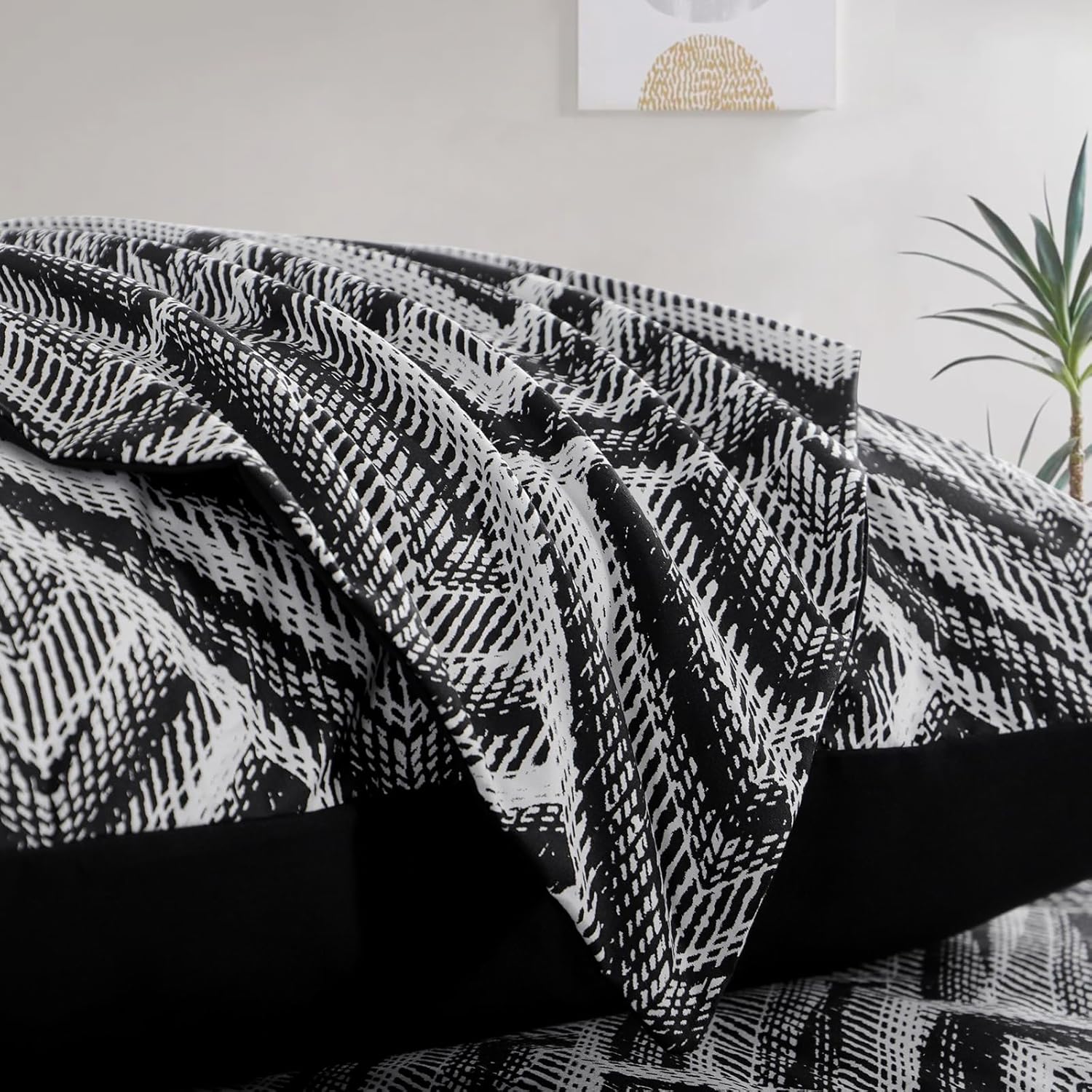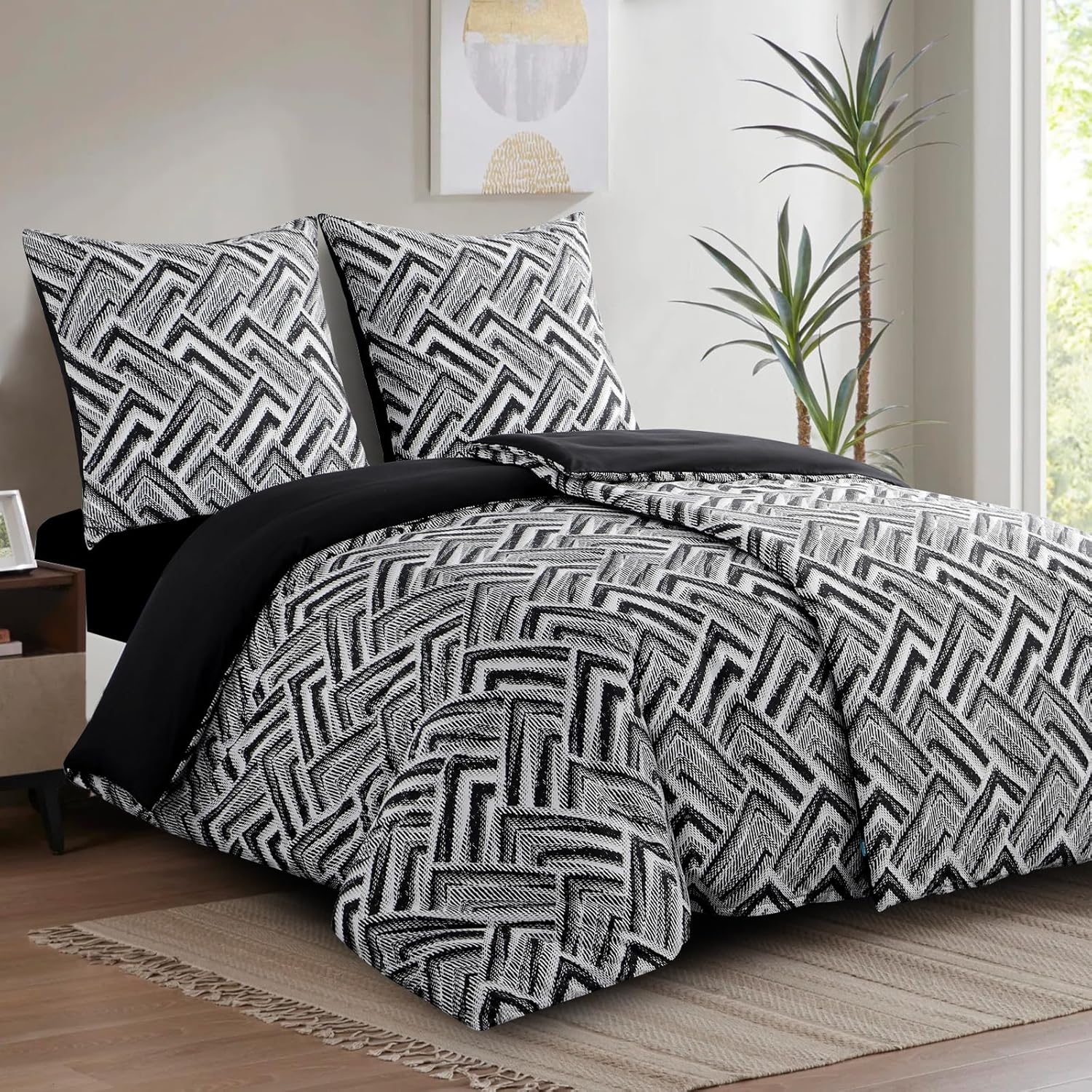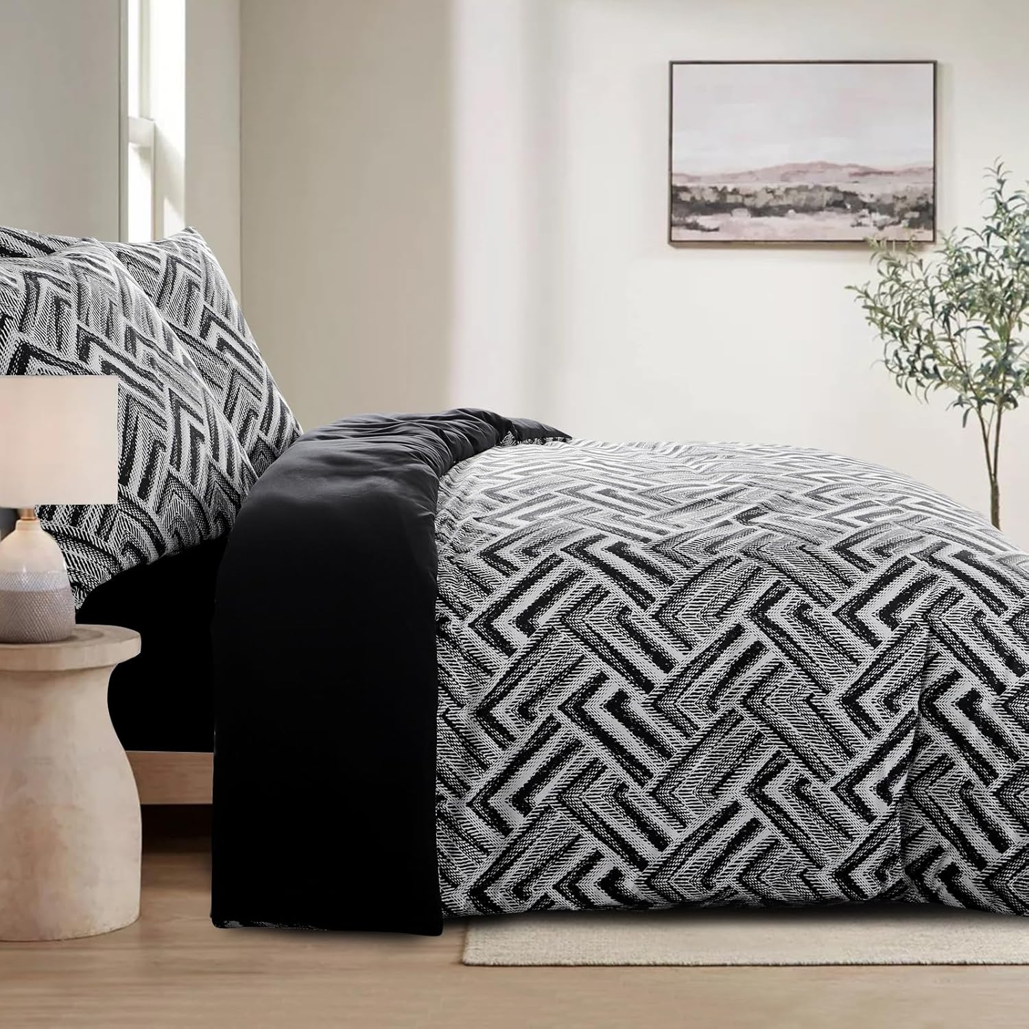 Спално бельо RUIKASI 135 x 200 см, 4 части, черно - Пликове за завивки 135 x 200 см, комплект от 2 с геометричен мотив, Комплекти спално бельо от микрофибър 135 x 200 см с цип, меко и нежелаещо гладене