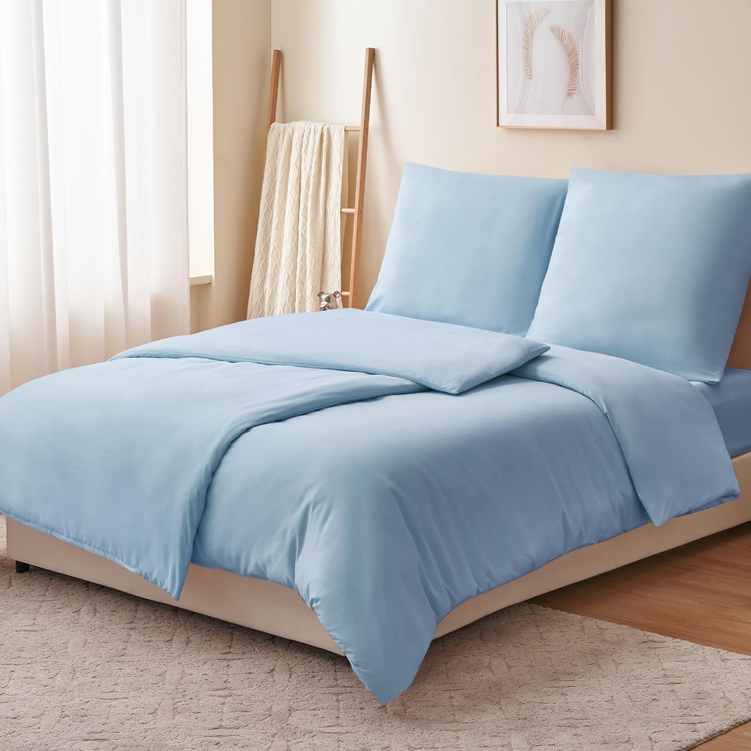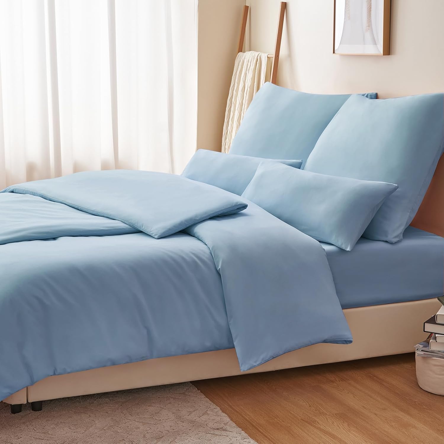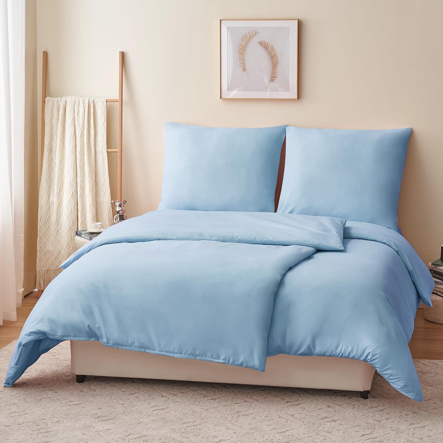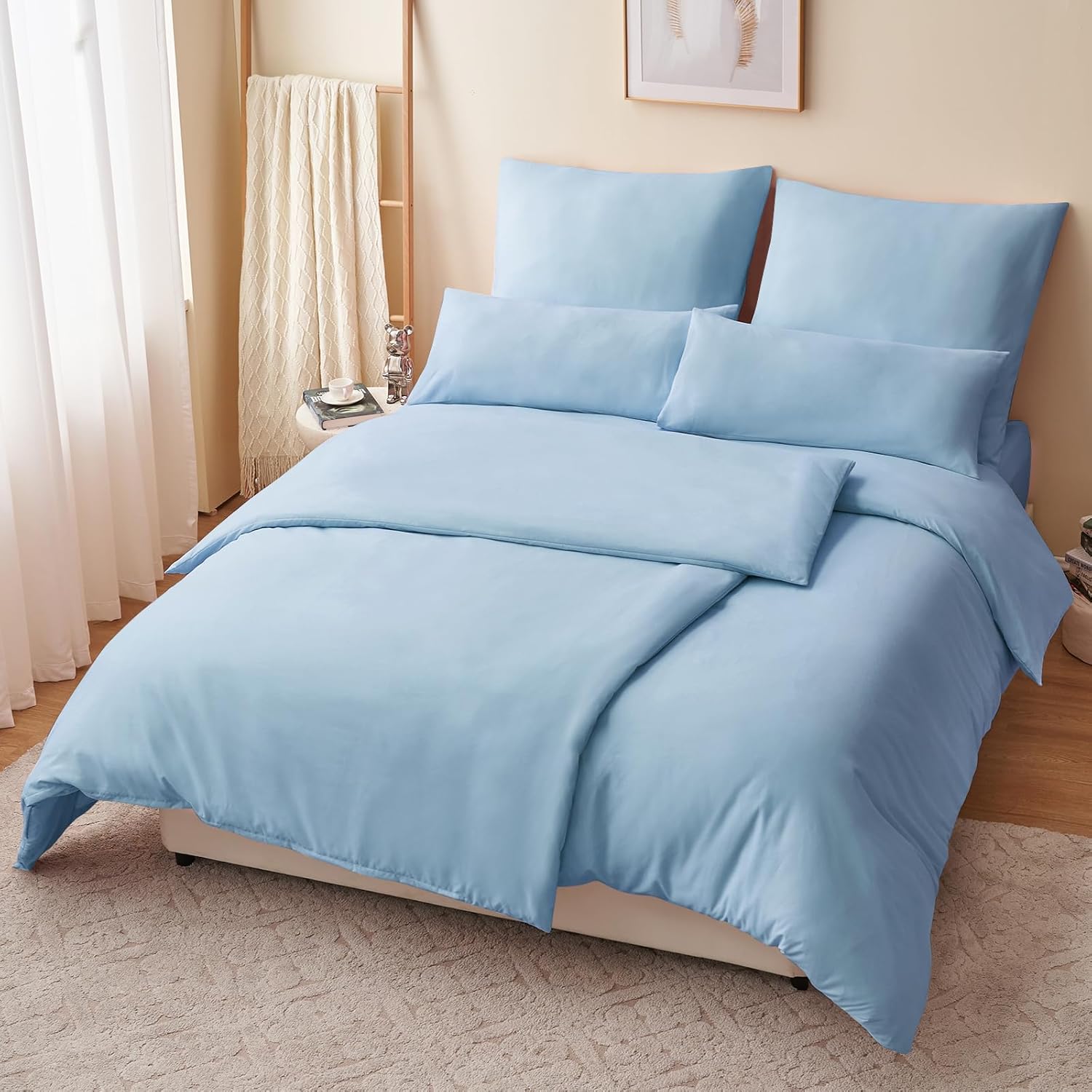 Спално бельо RUIKASI, 135 x 200 см, 4 части, син, калъф за завивка, комплект от 2, светло син, с калъфки за възглавници, комплект спално бельо от микрофибър, с цип, меко и не се глади