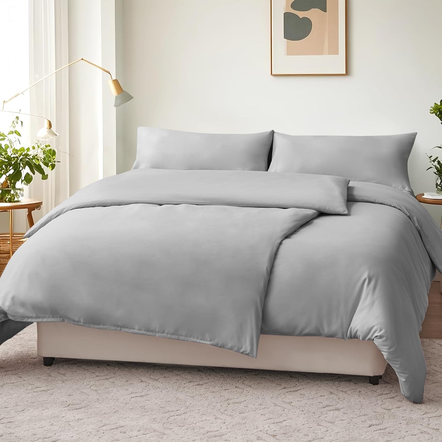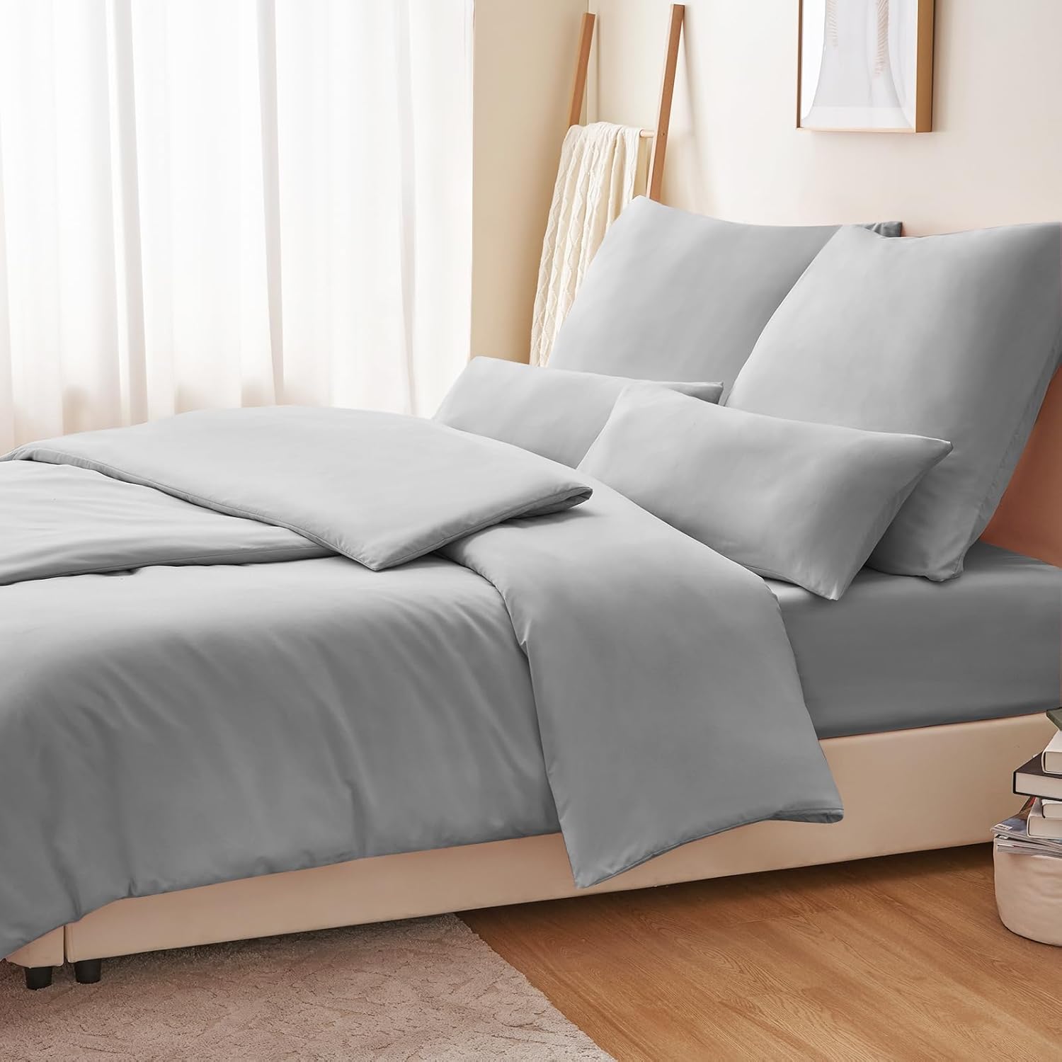 Спално бельо RUIKASI 135 x 200 см, 4 части, сиво - светло сиво, микрофибърно спално бельо, Oeko-Tex, 2 калъфа за завивки 135 x 200 см + 2 калъфки за възглавници 40 x 80 см с цип, меко и не се глади