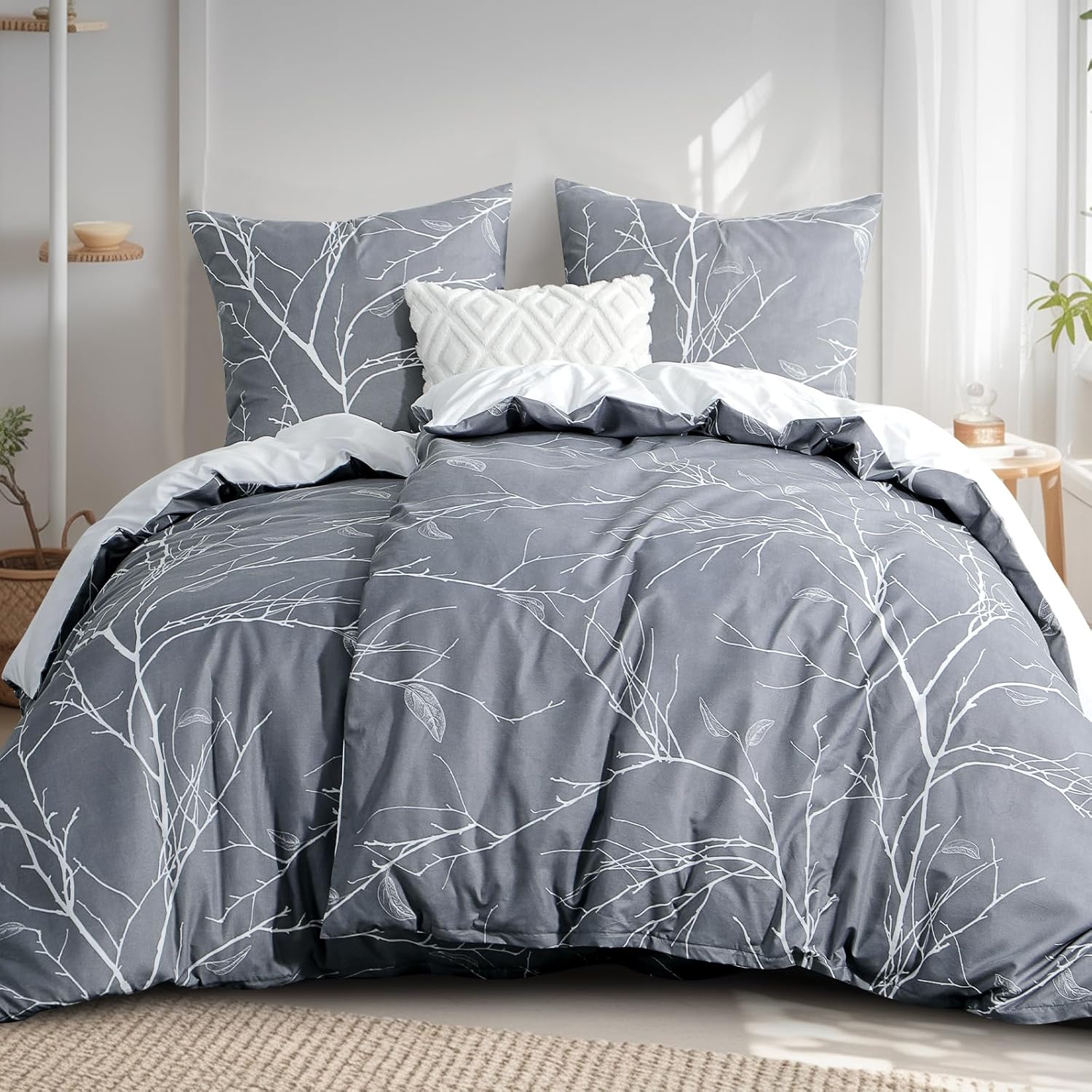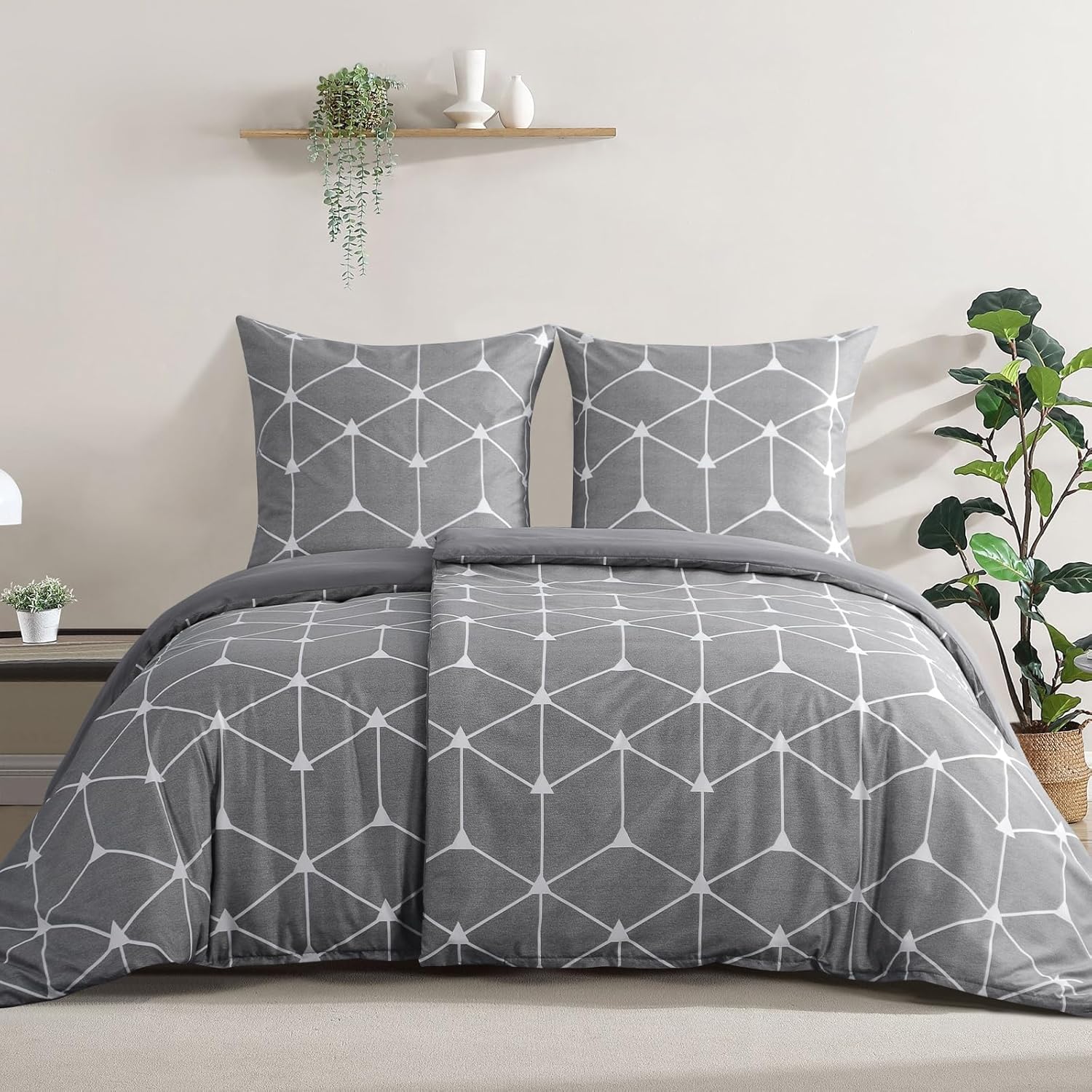 Спално бельо RUIKASI 135 x 200 см, 4 части, сиво – Пликове за завивки 135 x 200 см, комплект от 2 броя с бохо мотив, Комплекти спално бельо от микрофибър 135 x 200 см с цип, меко и нежелаещо гладене