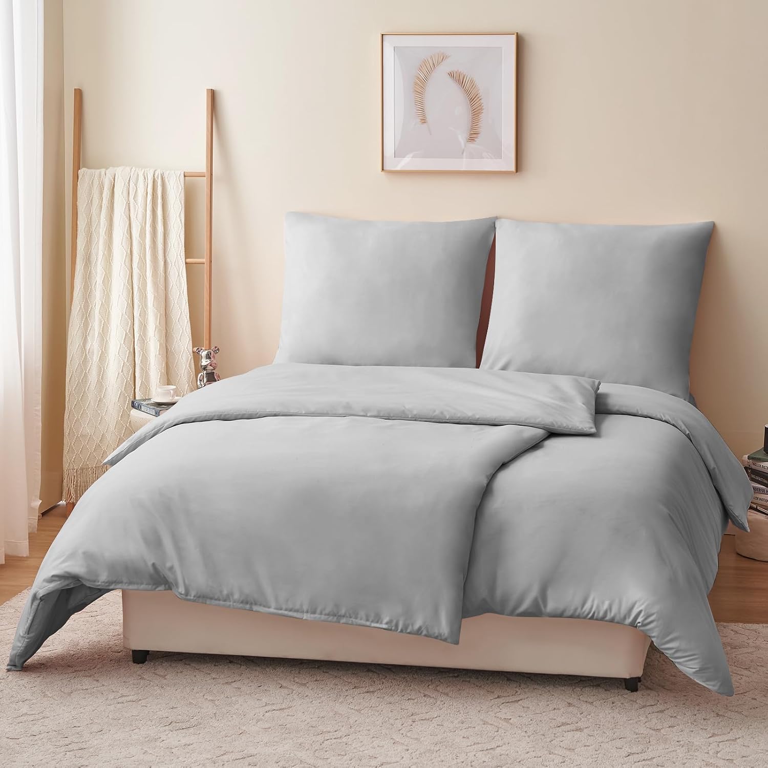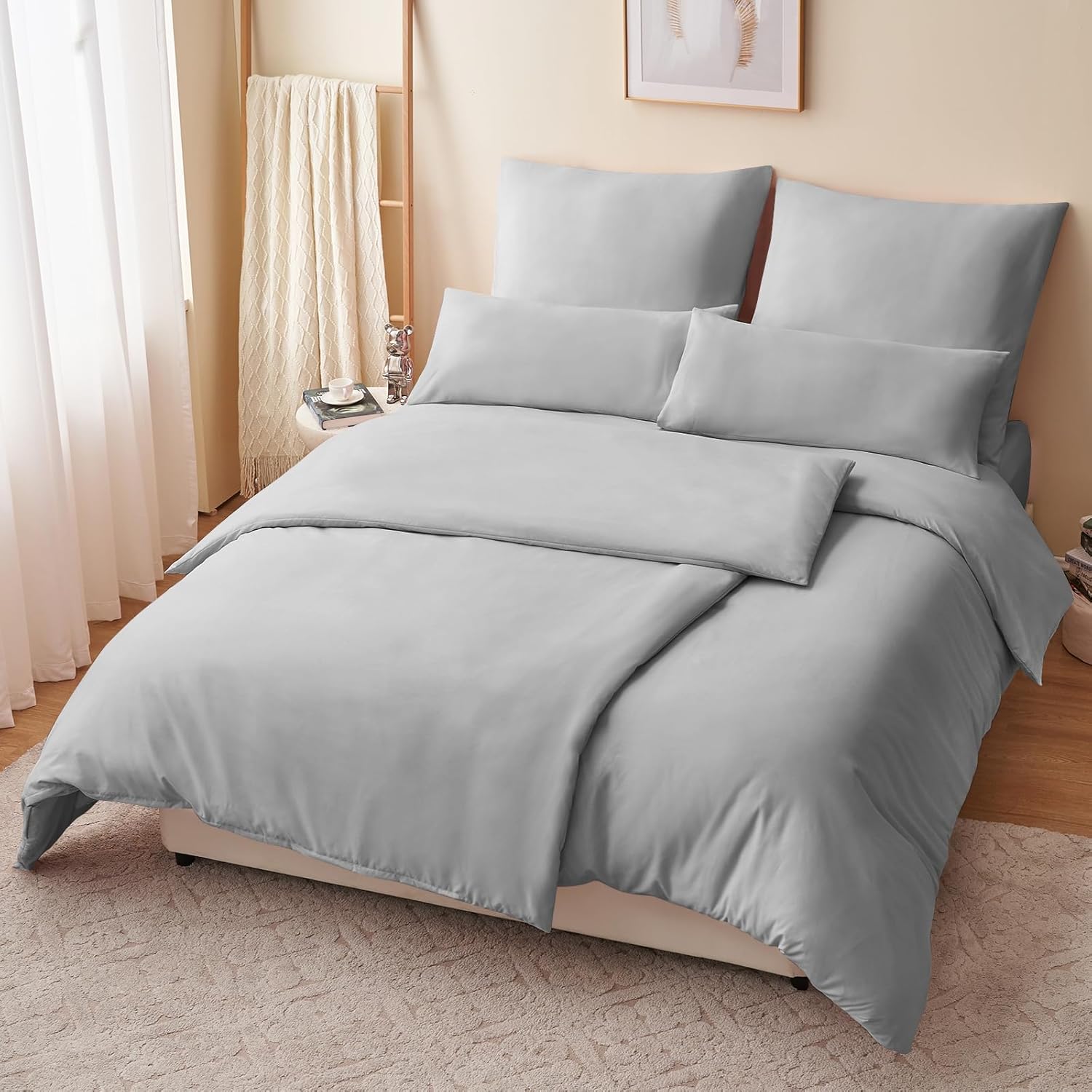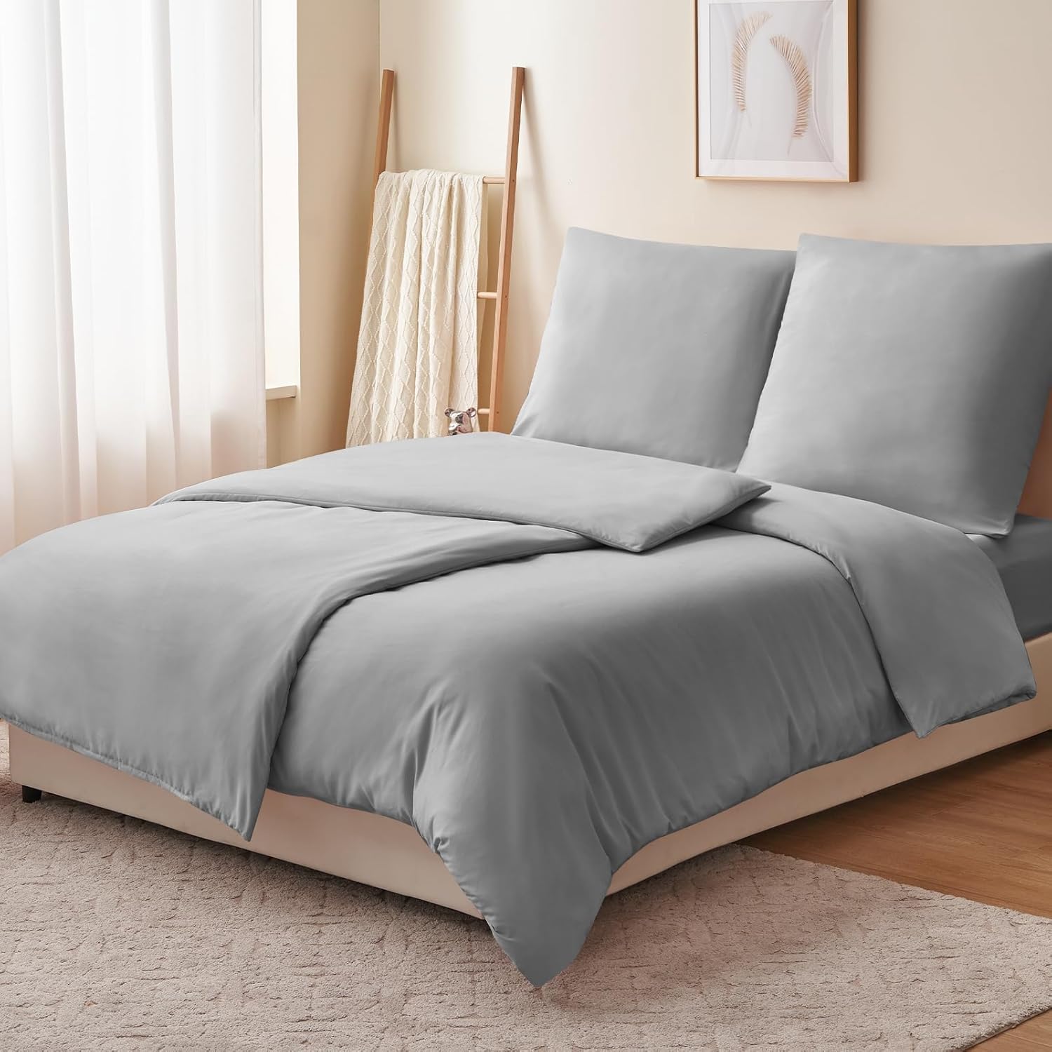Спално бельо RUIKASI, 135 x 200 см, 4 части, сиво, калъф за завивка, комплект от 2, светло сиво, с калъфки за възглавници, комплект спално бельо от микрофибър, с цип, меко и не се глади