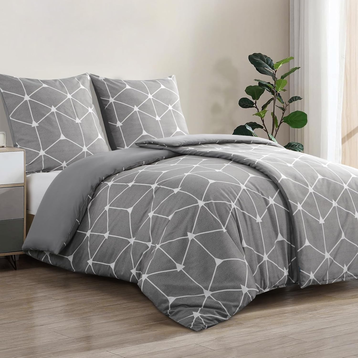 Спално бельо RUIKASI 135 x 200 см, 4 части, светло сиво - Пликове за завивки 135 x 200 см, комплект от 2 броя с геометричен мотив, Комплекти спално бельо от микрофибър 135 x 200 см с цип, меко и не се глади