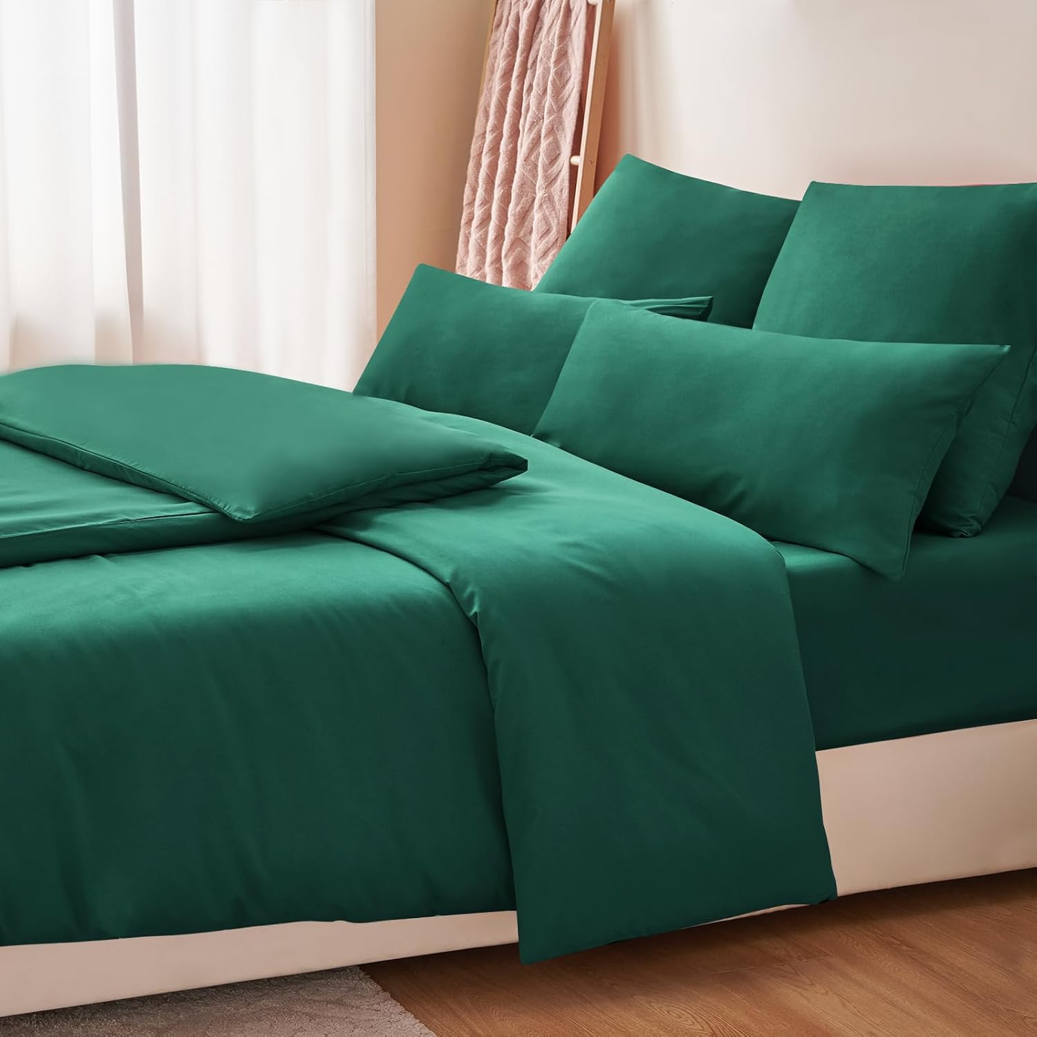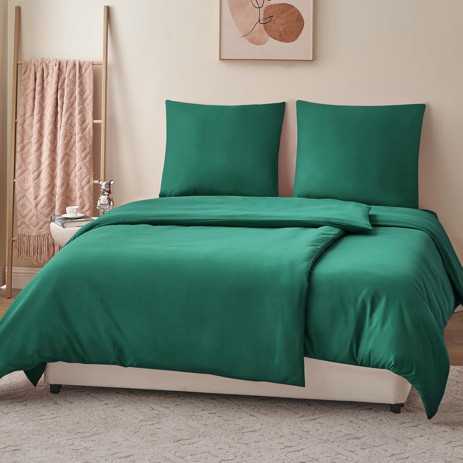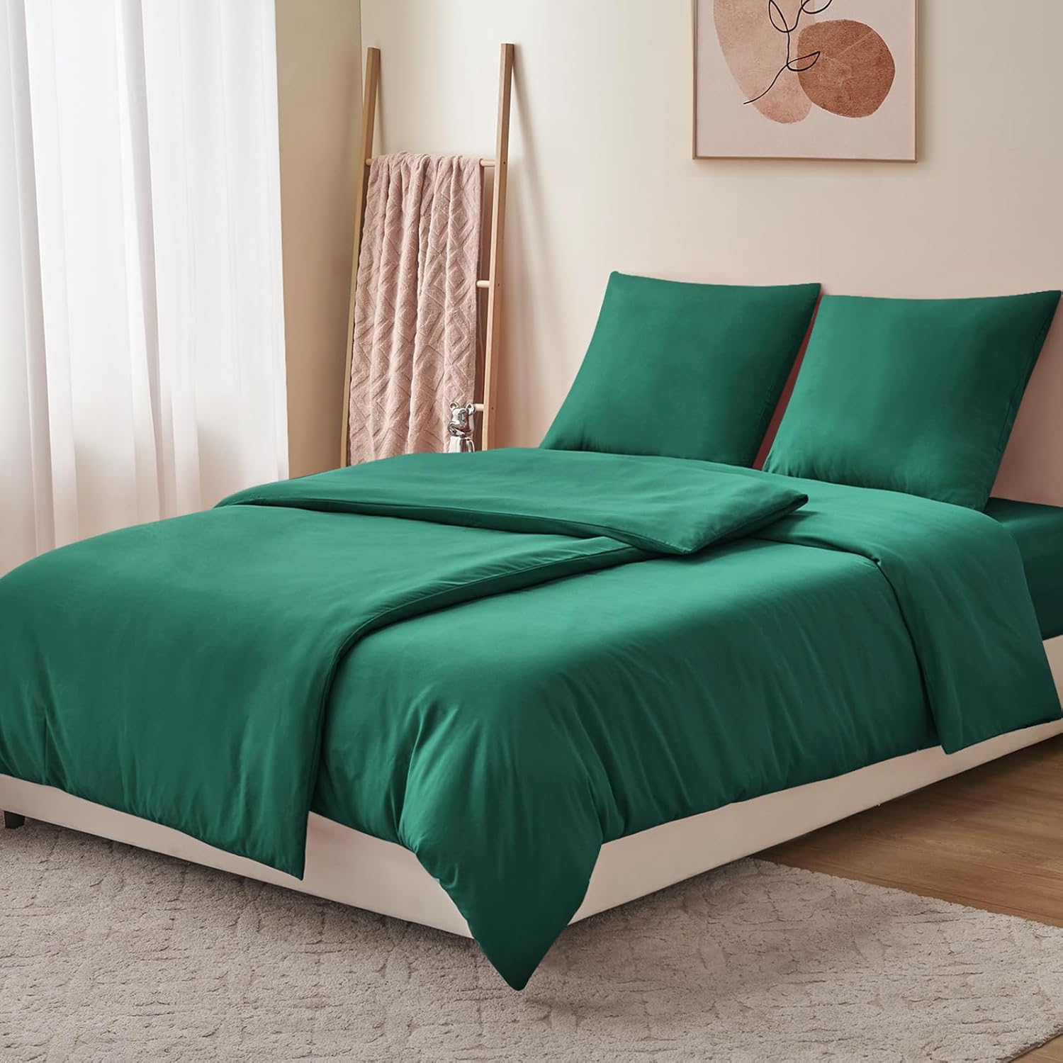 Спално бельо RUIKASI, 135 x 200 см, 4 части, зелено, калъф за завивка, комплект от 2, с калъфки за възглавници, комплект спално бельо от микрофибър, с цип, меко и не се глади