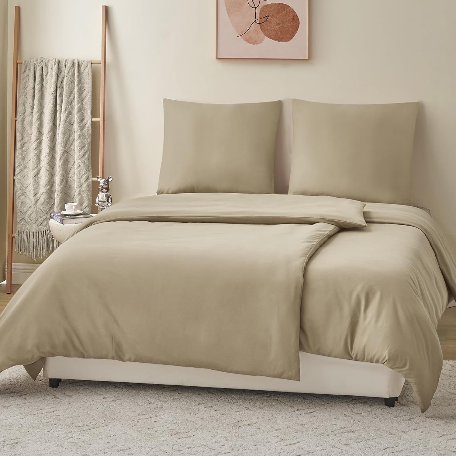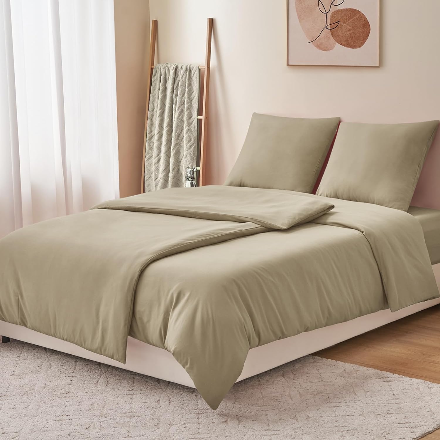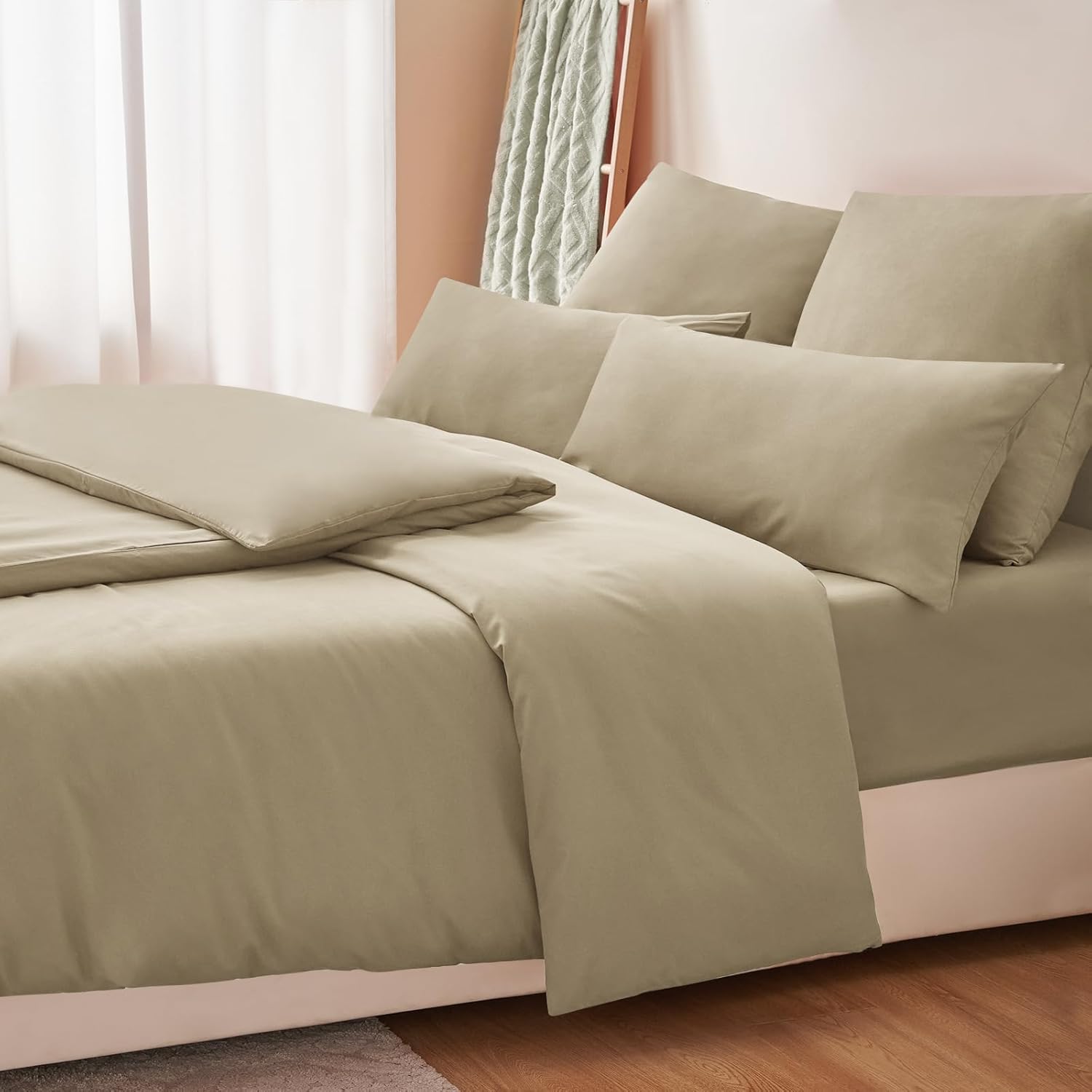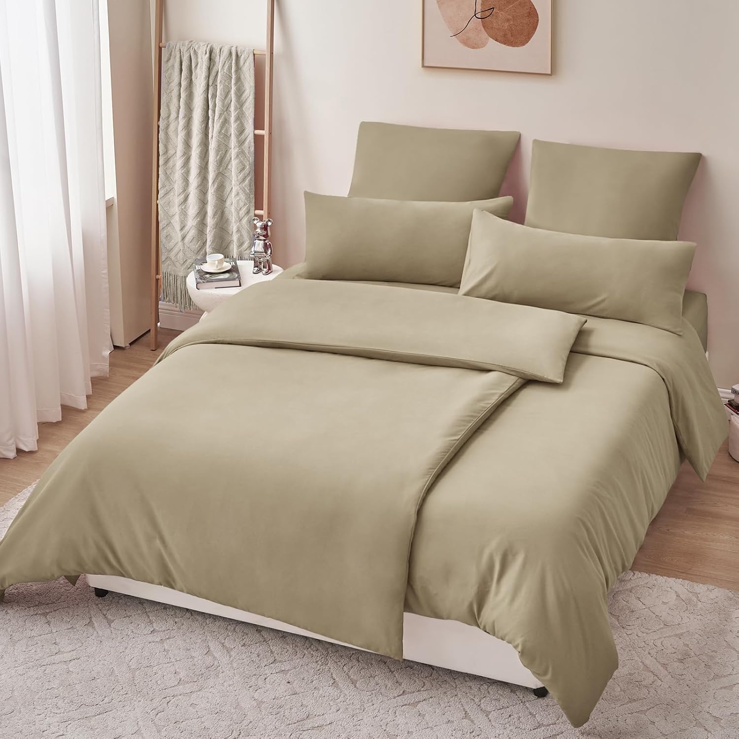 Спално бельо RUIKASI 135 x 200 см, каки, ​​4 части - комплект спално бельо от полиестерен микрофибър, Oeko-Tex, 2 калъфа за завивки 135 x 200 см + 2 калъфки за възглавници 80 x 80 см с цип, меко и не се глади