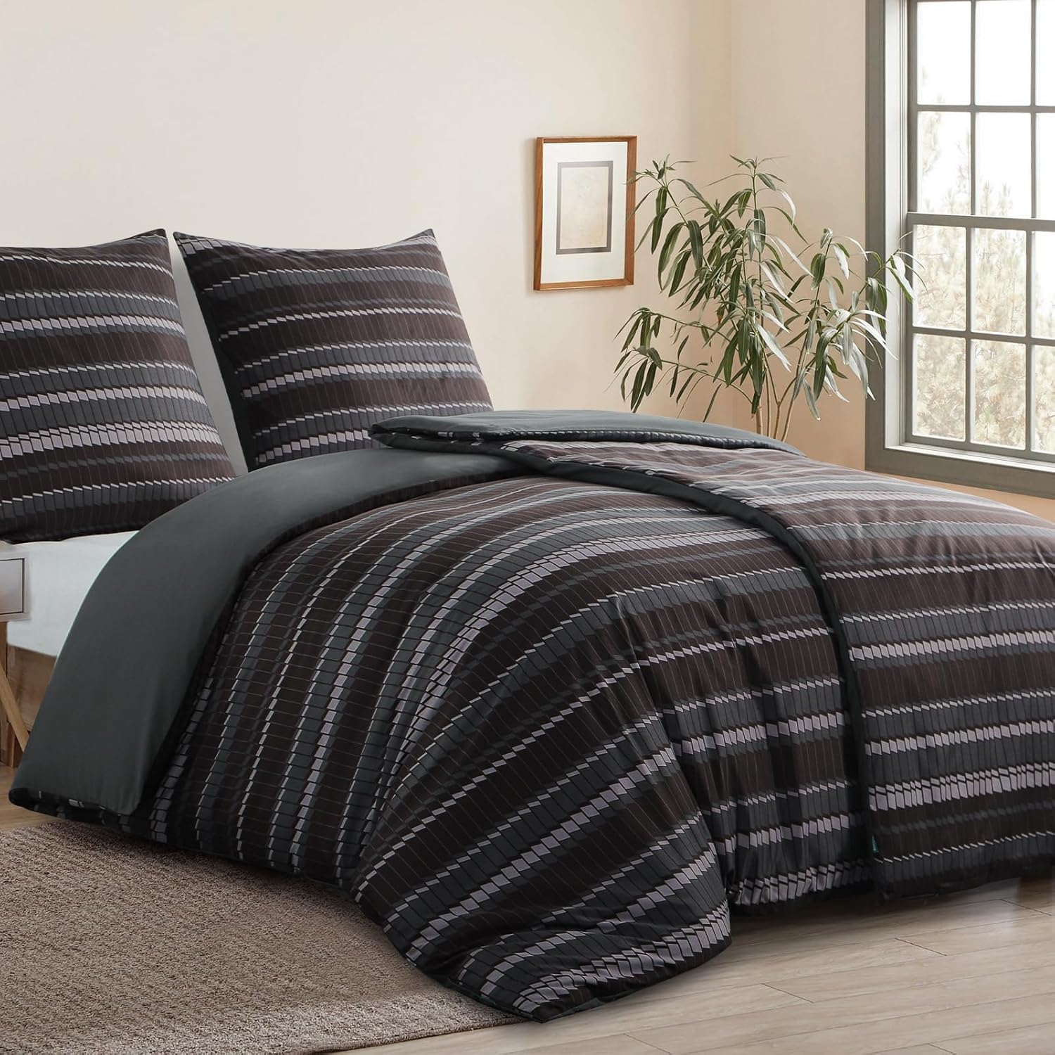 Спално бельо RUIKASI 135 x 200 см Комплект от 4 тъмни калъфа за завивки 135 x 200 см с райета, Комплекти спално бельо от микрофибър 135 x 200 см с цип, меко и нежелаещо гладене