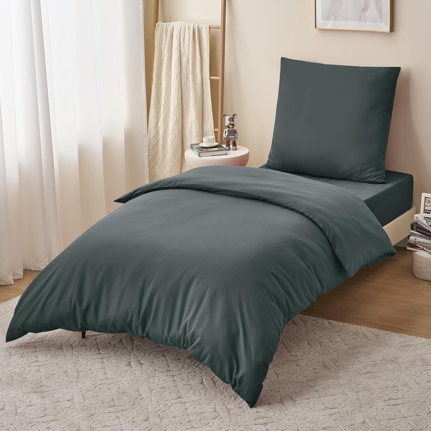 Спално бельо RUIKASI 140 x 200 см, 2 части, сиво-антрацит, комплекти спално бельо от микрофибър, Oeko-Tex, калъфи за завивки 140 x 200 см + калъфки за възглавници 80 x 80 см с цип, меко и нежелаещо гладене