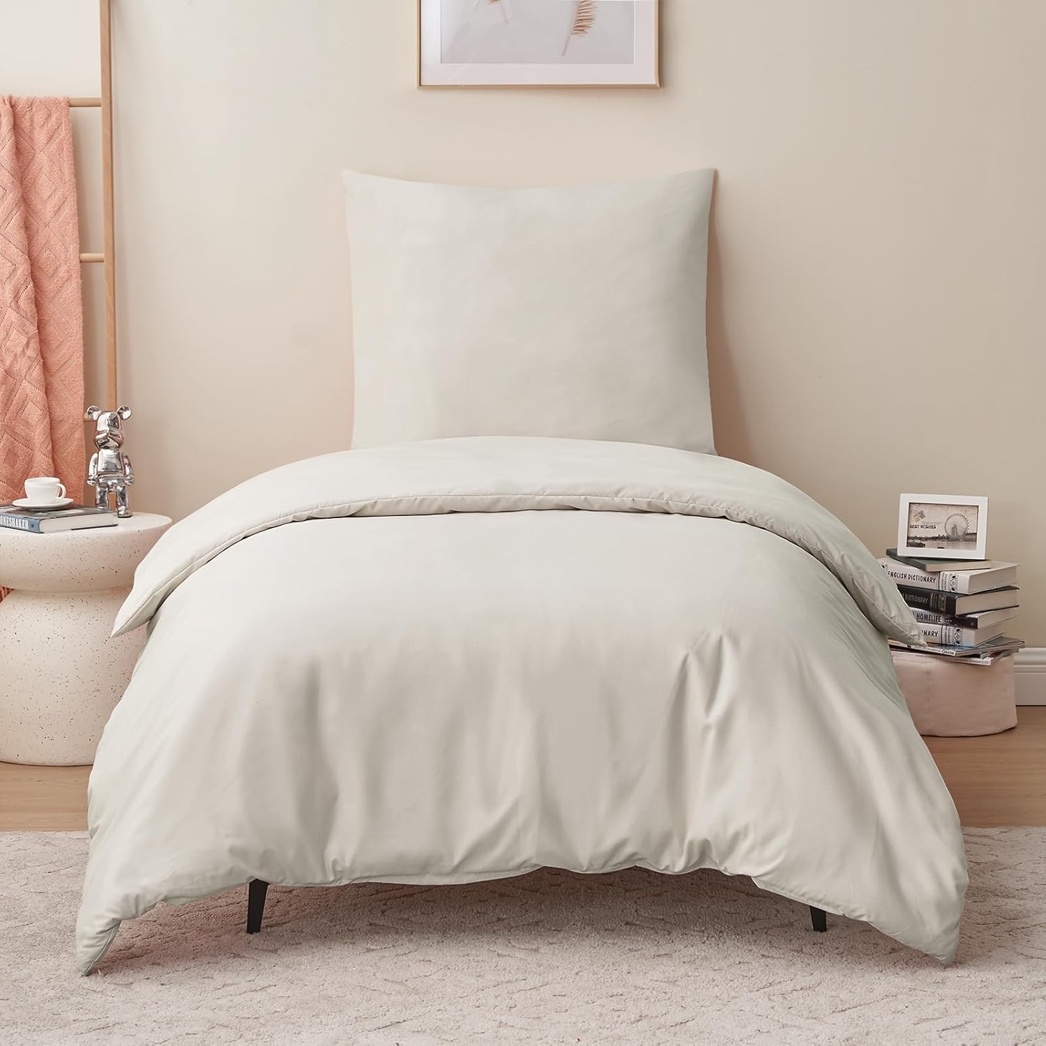 Спално бельо RUIKASI, 155 x 220 см, 2 части, бежово, комплект пликове за завивка, с калъфка за възглавница, комплект спално бельо от микрофибър, с цип, меко и не се глади