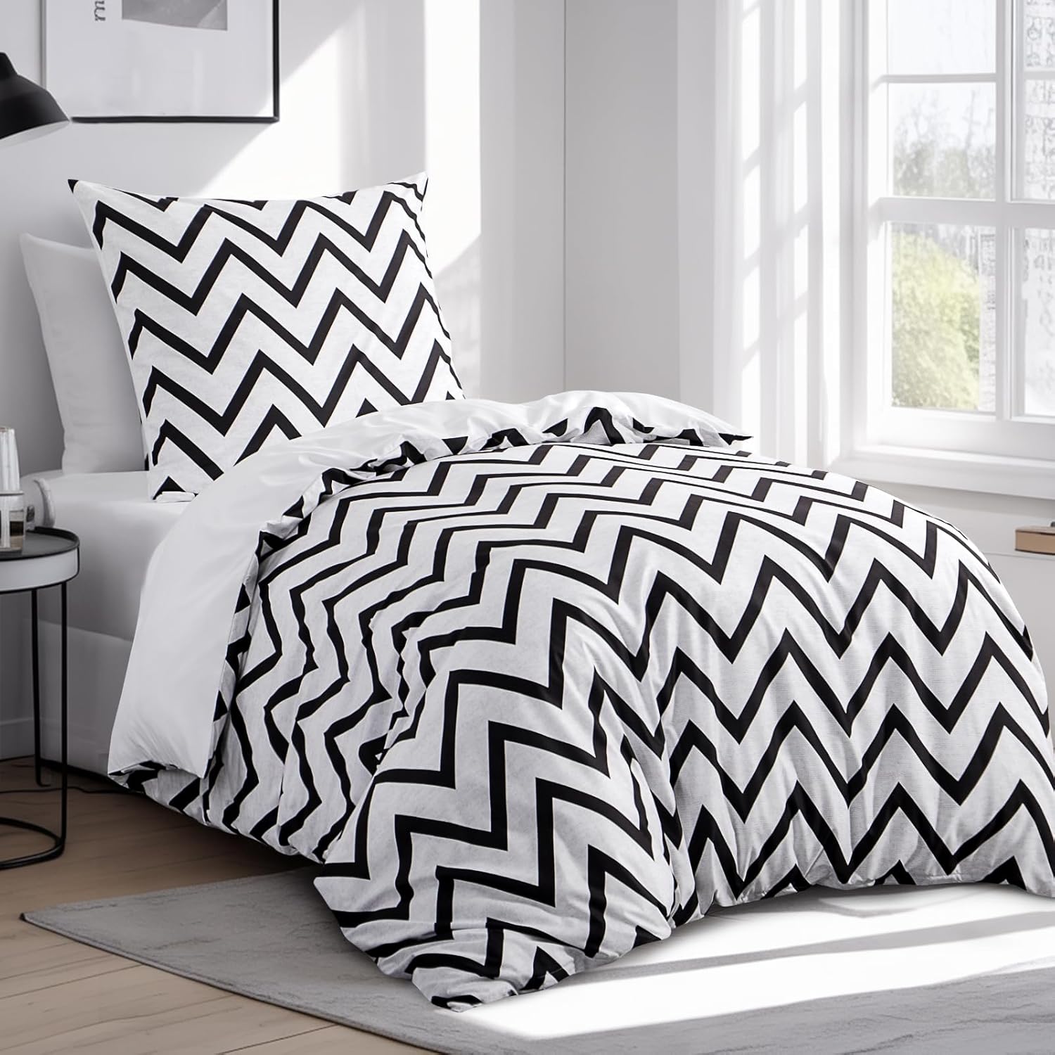 Спално бельо RUIKASI 155 x 220 см, 2 части, бяло - калъф за завивка 155 x 220 см с шеврон шарка, комплекти спално бельо от микрофибър 155 x 220 см с цип, меко и нежелаещо гладене