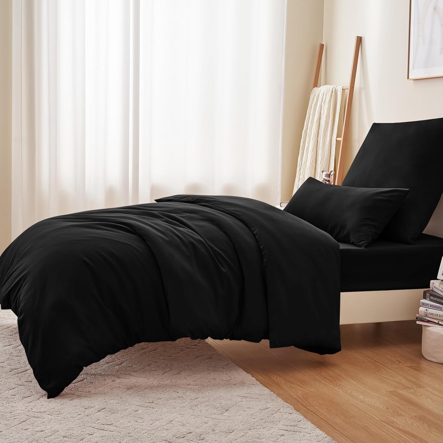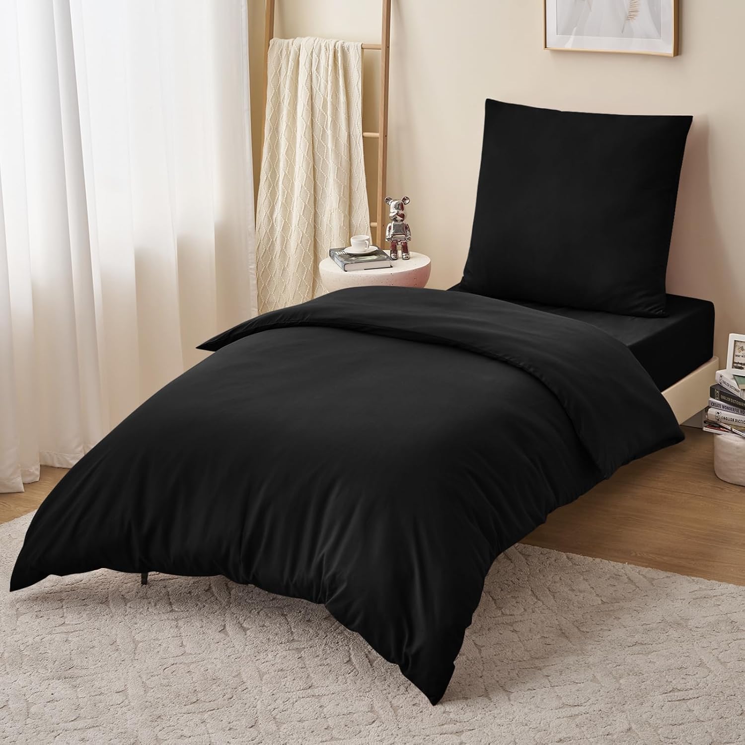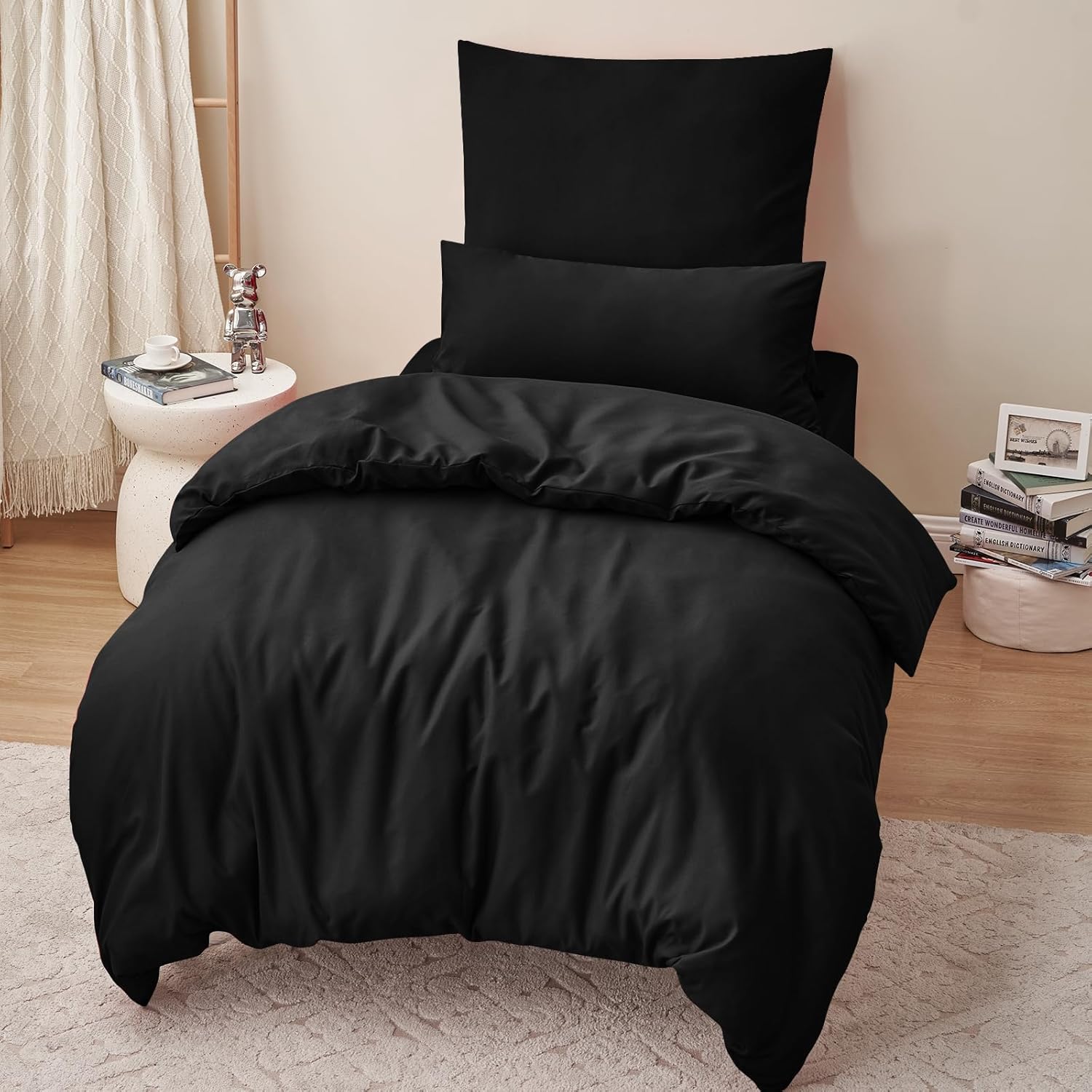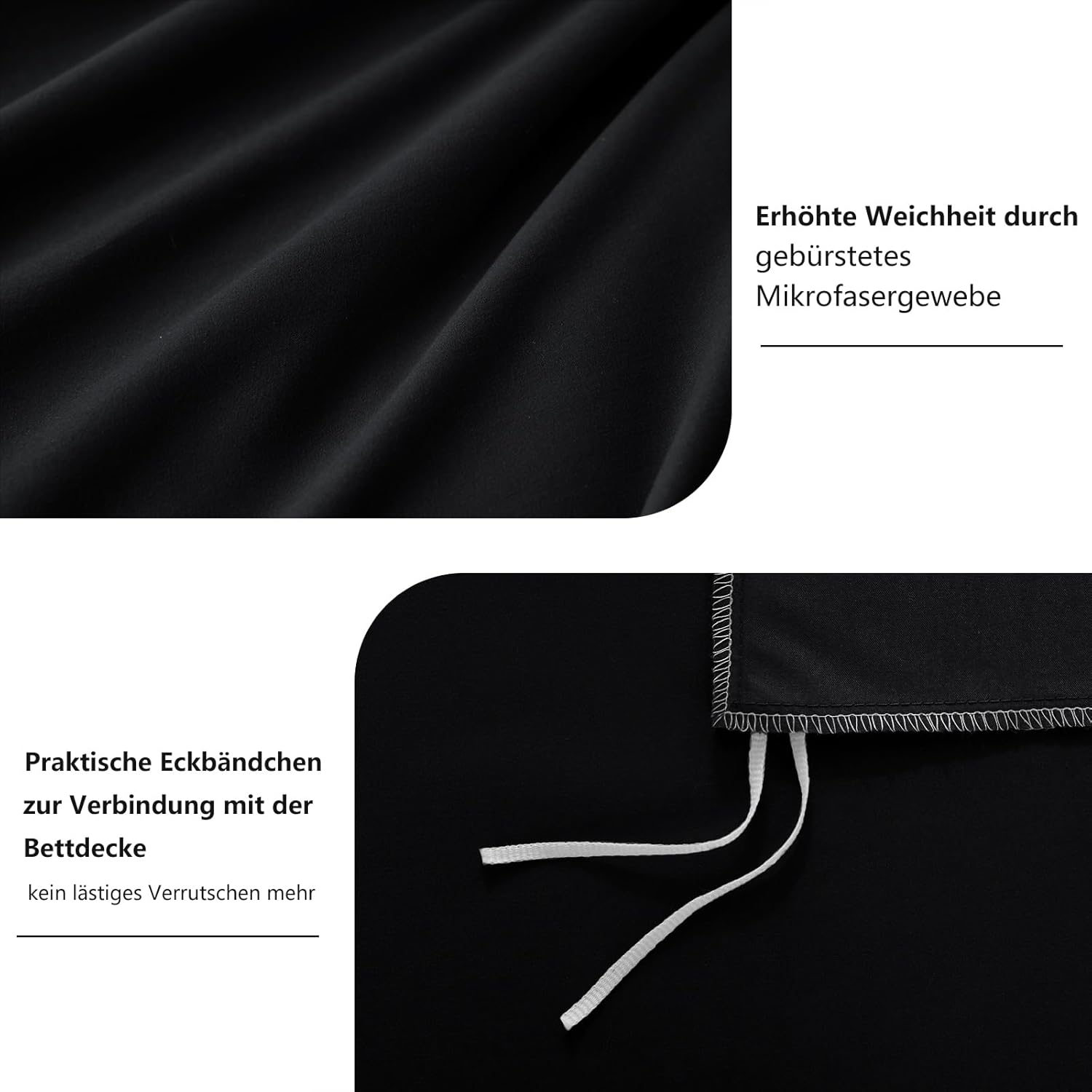 Спално бельо RUIKASI, 155 x 220 см, 2 части, черно, комплект калъфки за завивка, с калъфка за възглавница, комплект спално бельо, микрофибър, с цип, меко и не се глади