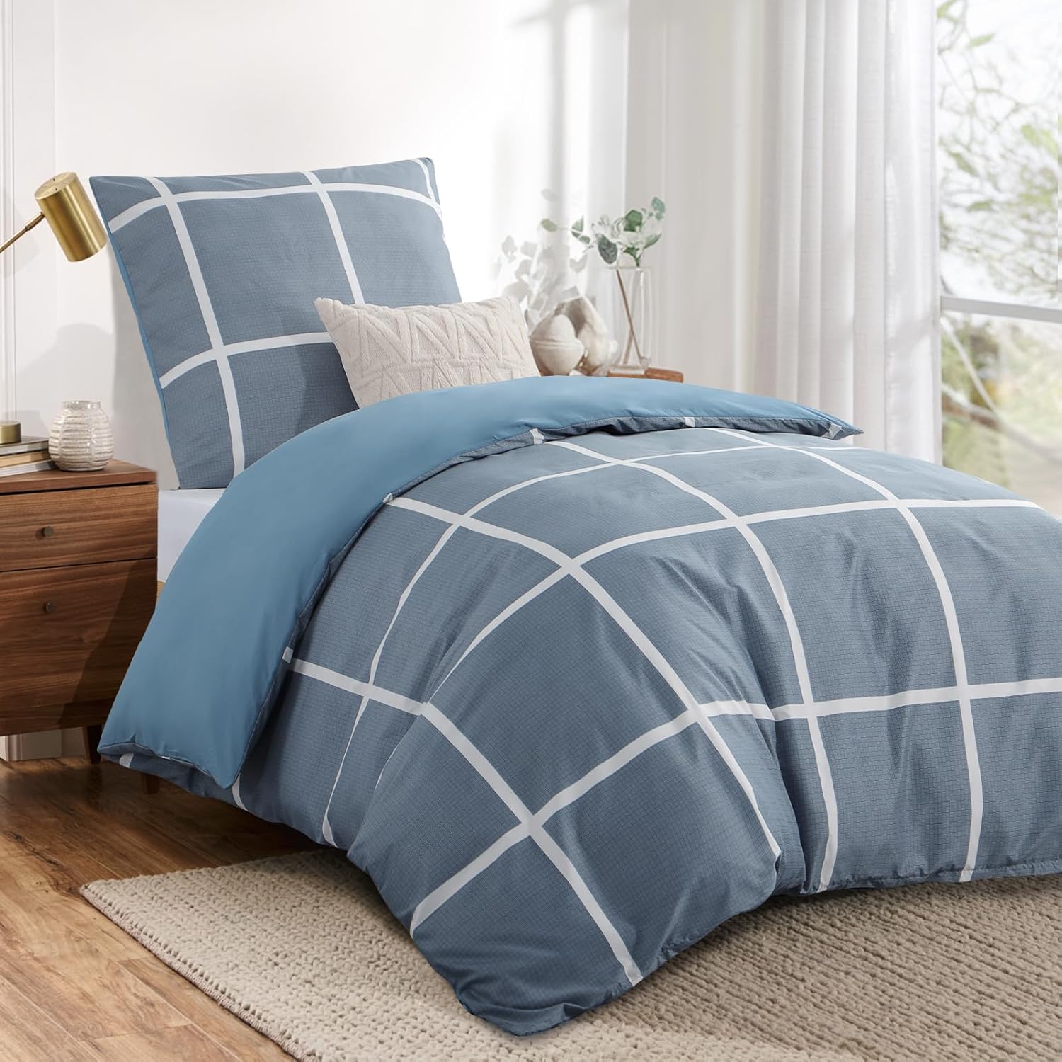 Спално бельо RUIKASI 155 x 220 см, 2 части, деним син - калъф за завивка 155 x 220 см, комплект с кариран десен, комплекти спално бельо от микрофибър 155 x 220 см с цип, меко и нежелаещо гладене