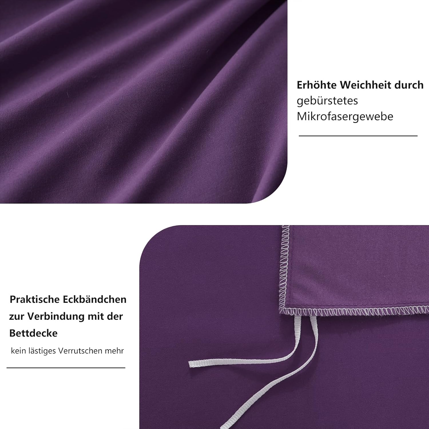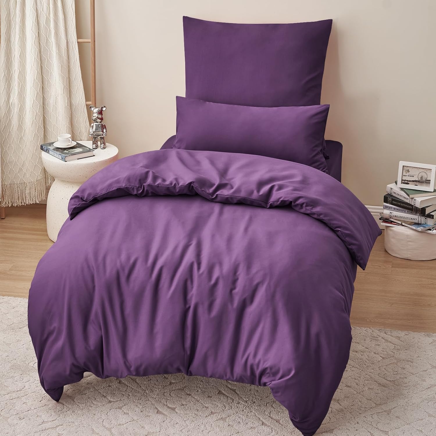 Спално бельо RUIKASI, 155 x 220 см, 2 части, лилаво, комплект пликове за завивка, с калъфка за възглавница, комплект спално бельо от микрофибър, с цип, меко и не се глади