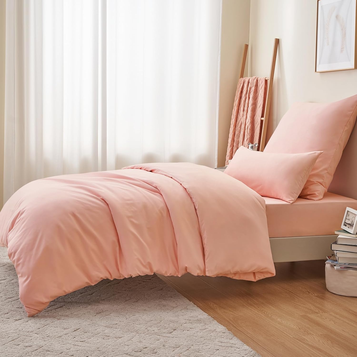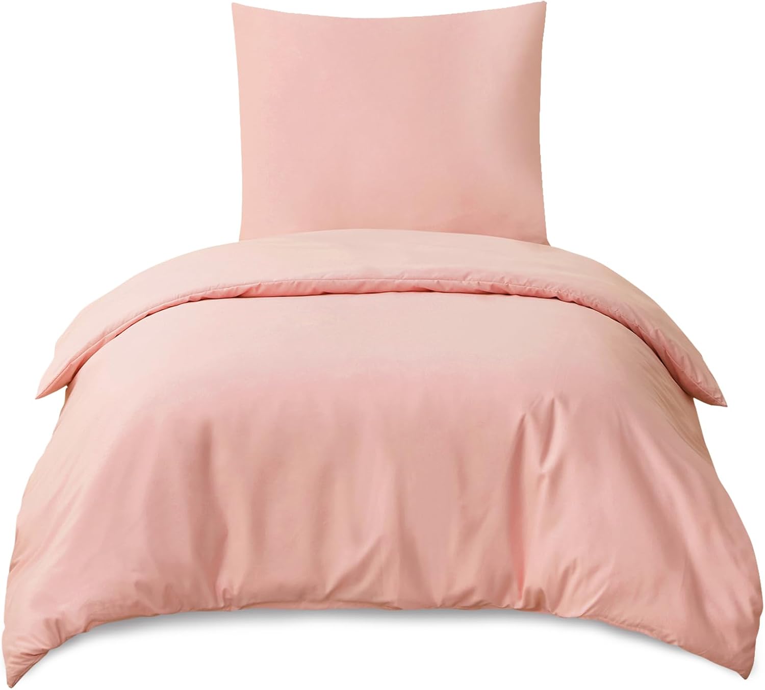 Спално бельо RUIKASI, 155 x 220 см, 2 части, розово, комплект пликове за завивка, прасковено розово, с калъфка за възглавница, комплект спално бельо от микрофибър, с цип, меко и не се глади