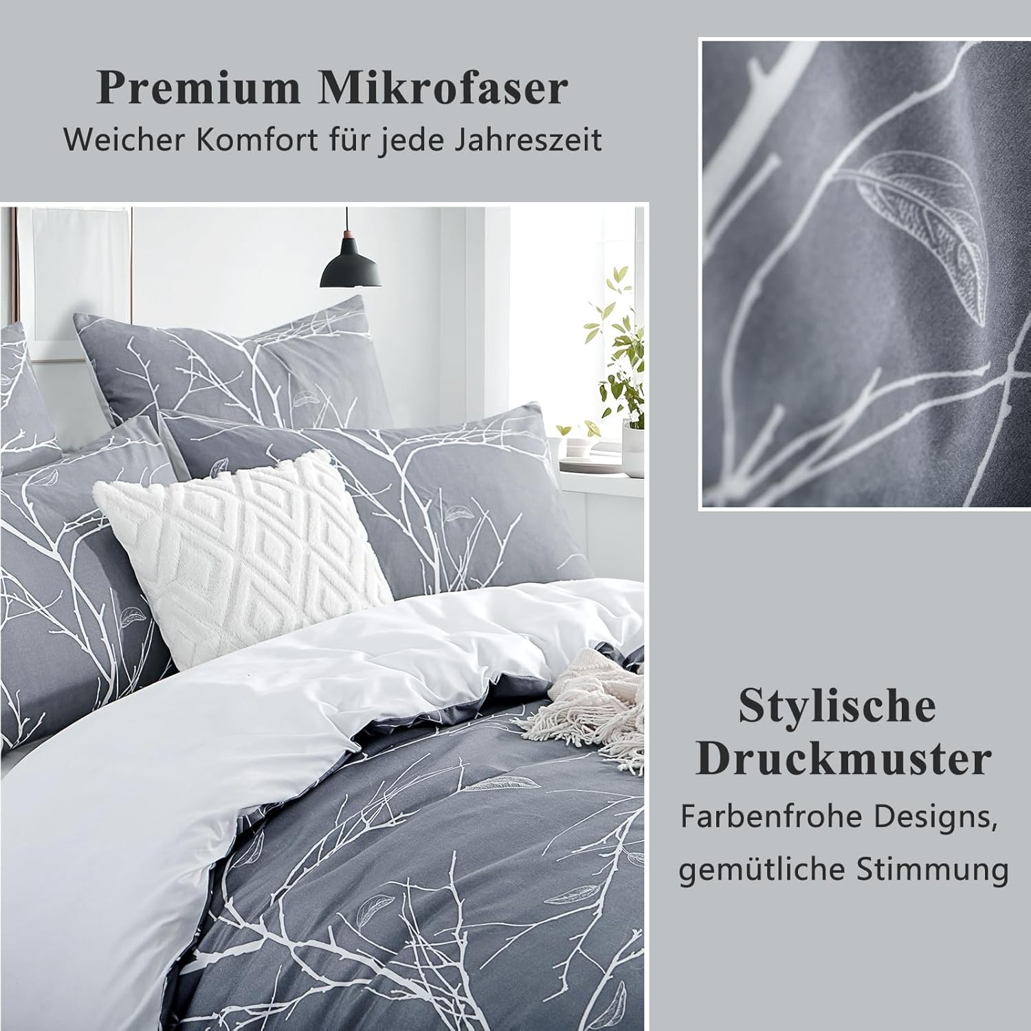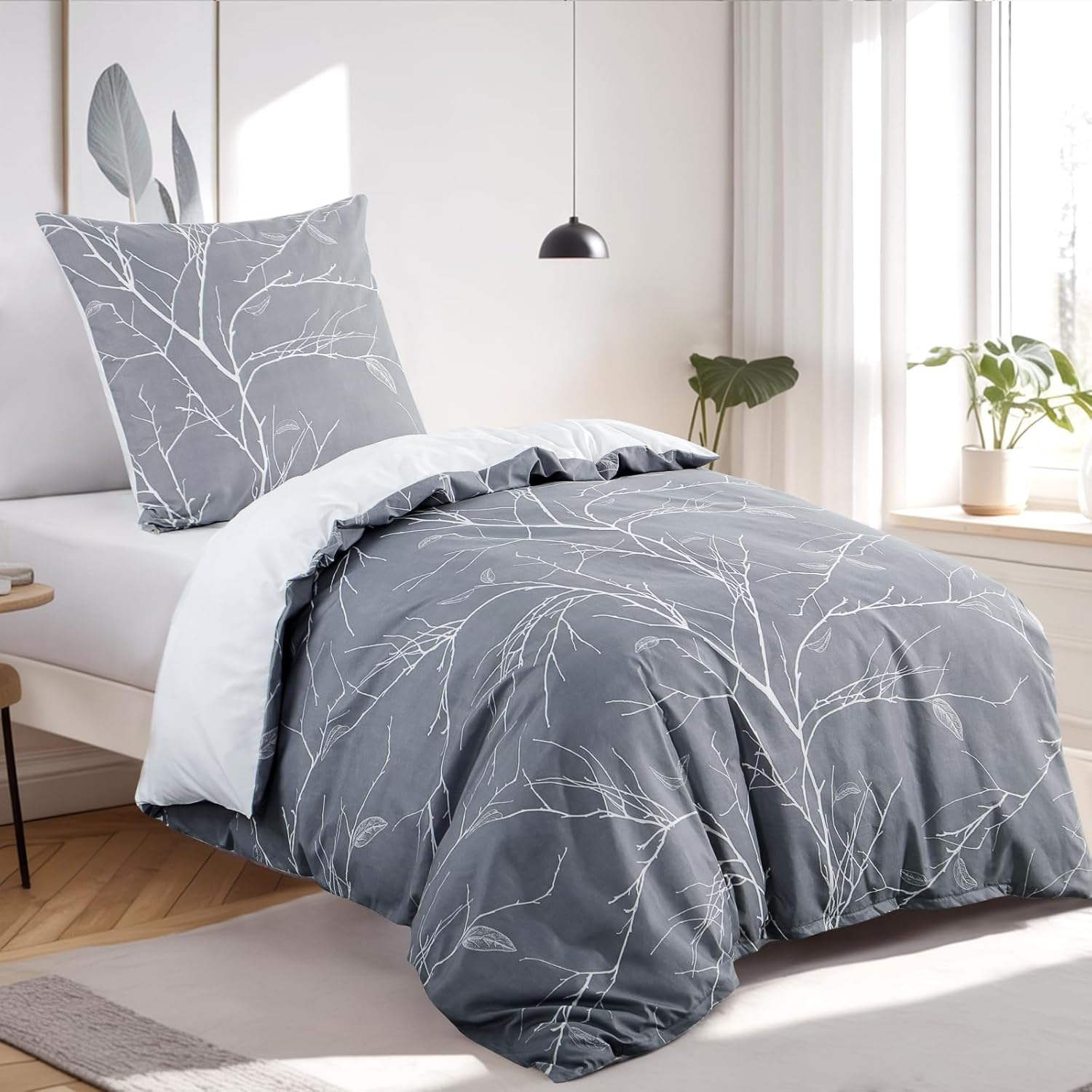Спално бельо RUIKASI 155 x 220 см, 2 части, сив - калъф за завивка 155 x 220 см с шарка на клони, комплекти спално бельо от микрофибър 155 x 220 см с цип, меко и нежелаещо гладене