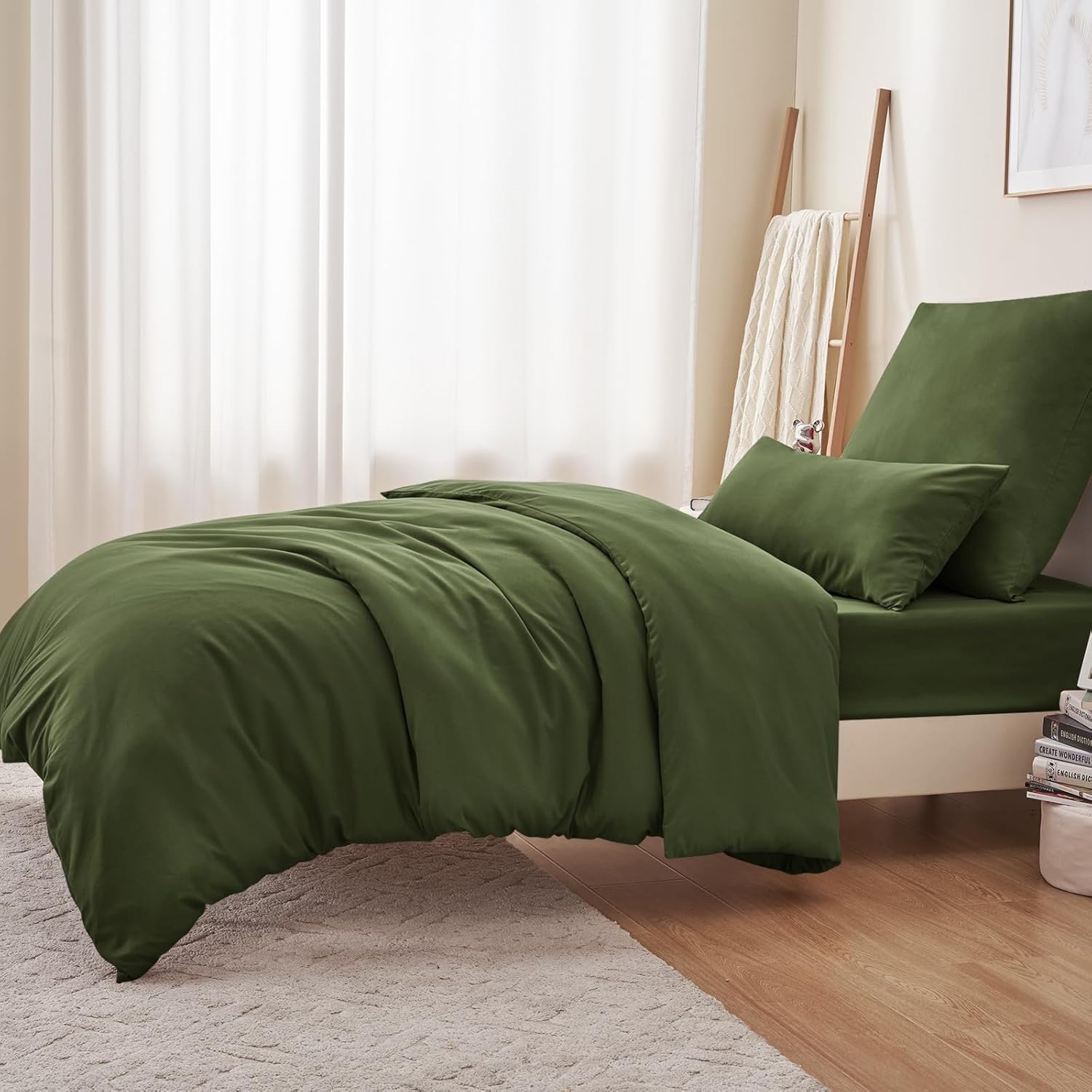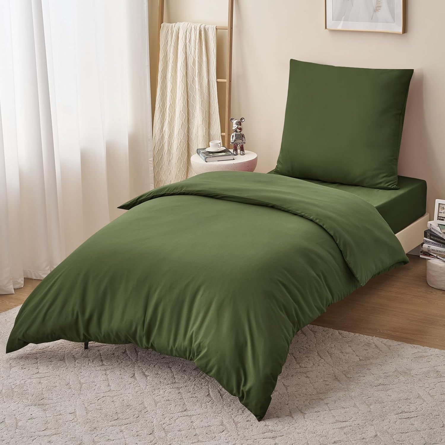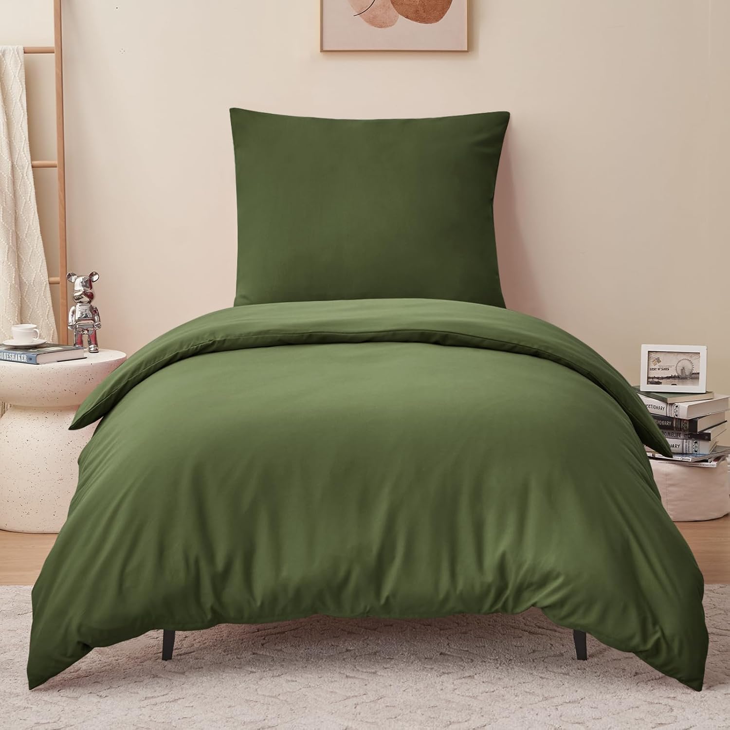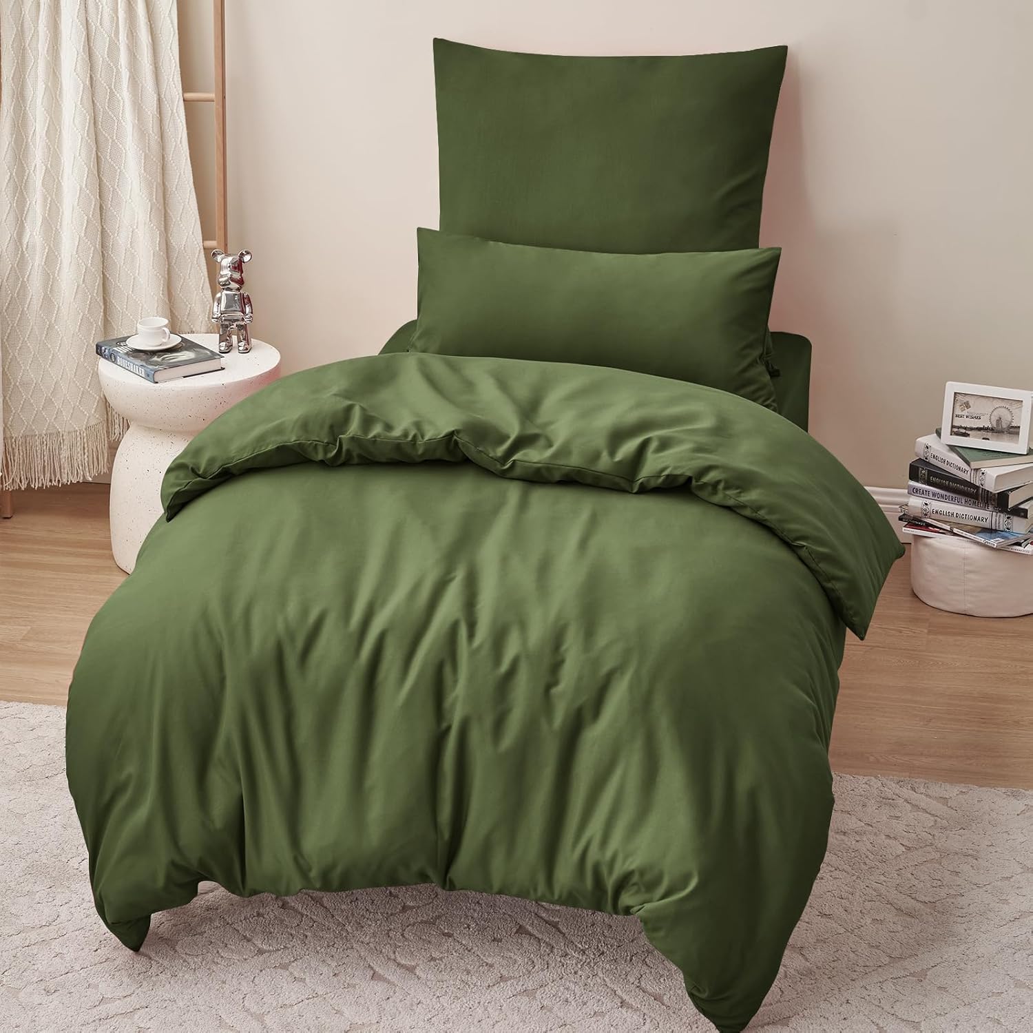 Спално бельо RUIKASI, 155 x 220 см, 2 части, зелено, комплект пликове за завивка, маслинено зелено, с калъфка за възглавница, комплект спално бельо, микрофибър, с цип, меко и не се глади
