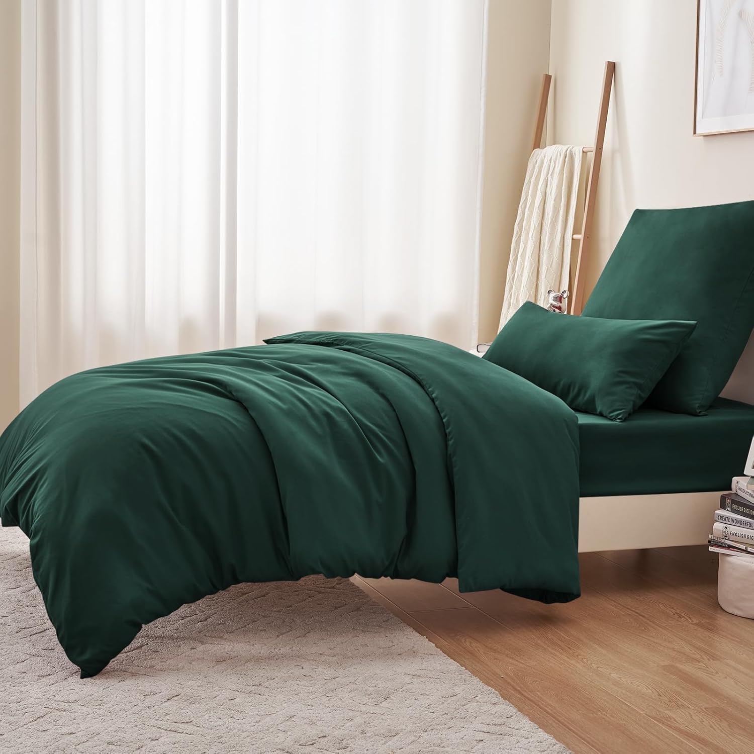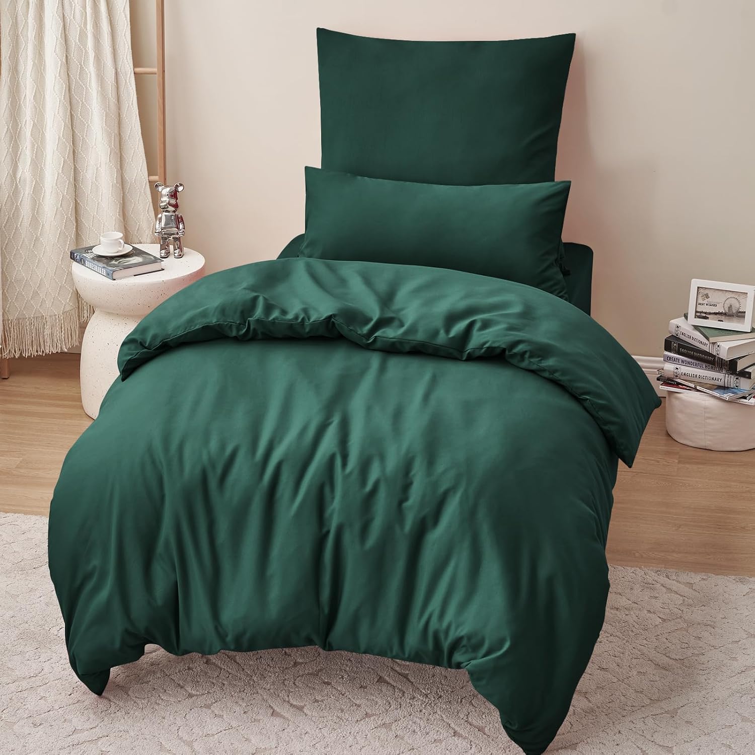 Спално бельо RUIKASI, 155 x 220 см, 2 части, зелено, комплект пликове за завивки, тъмнозелено, с калъфка за възглавница, комплект спално бельо от микрофибър, с цип, меко и не се глади