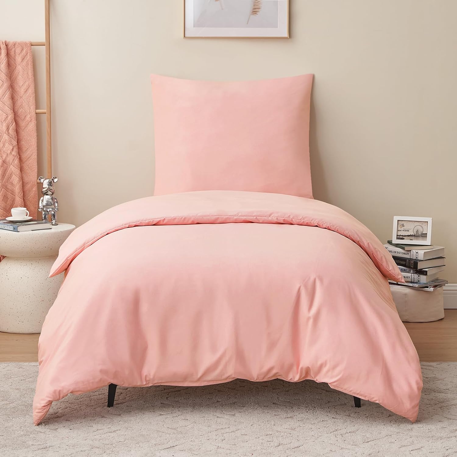 • Спалното бельо с размери 200 x 135 см е представено в семпъл дизайн и е решено в няколко модерни едноцветни цвята, така че лесно можете да намерите подходящо спално бельо за интериорния стил. То също така добавя стилни акценти към спалнята и създава домашна атмосфера.