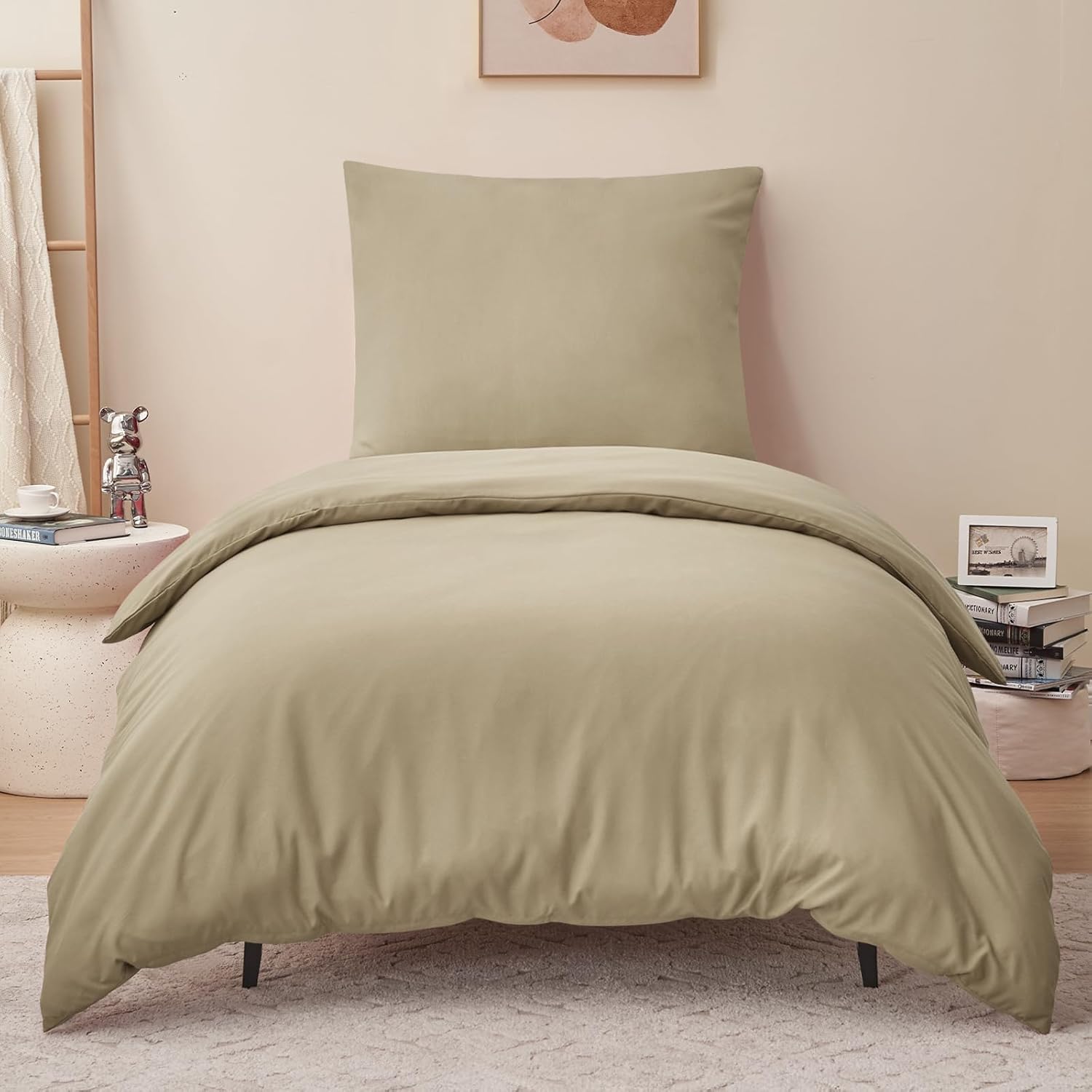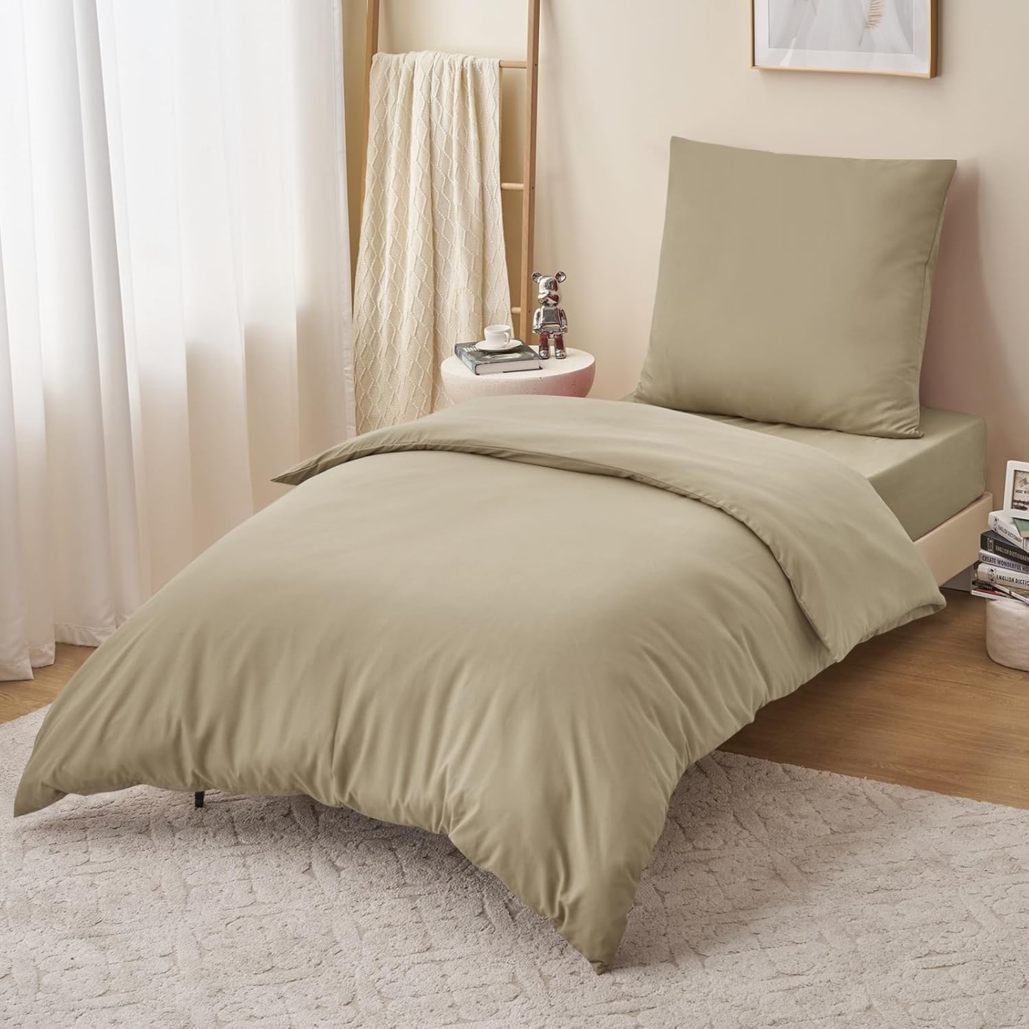 Спално бельо RUIKASI 155 x 220 см, каки, ​​2 части - комплекти спално бельо от полиестерен микрофибър, Oeko-Tex, калъфи за завивки 155 x 220 см + калъфки за възглавници 80 x 80 см с цип, меко и не се глади