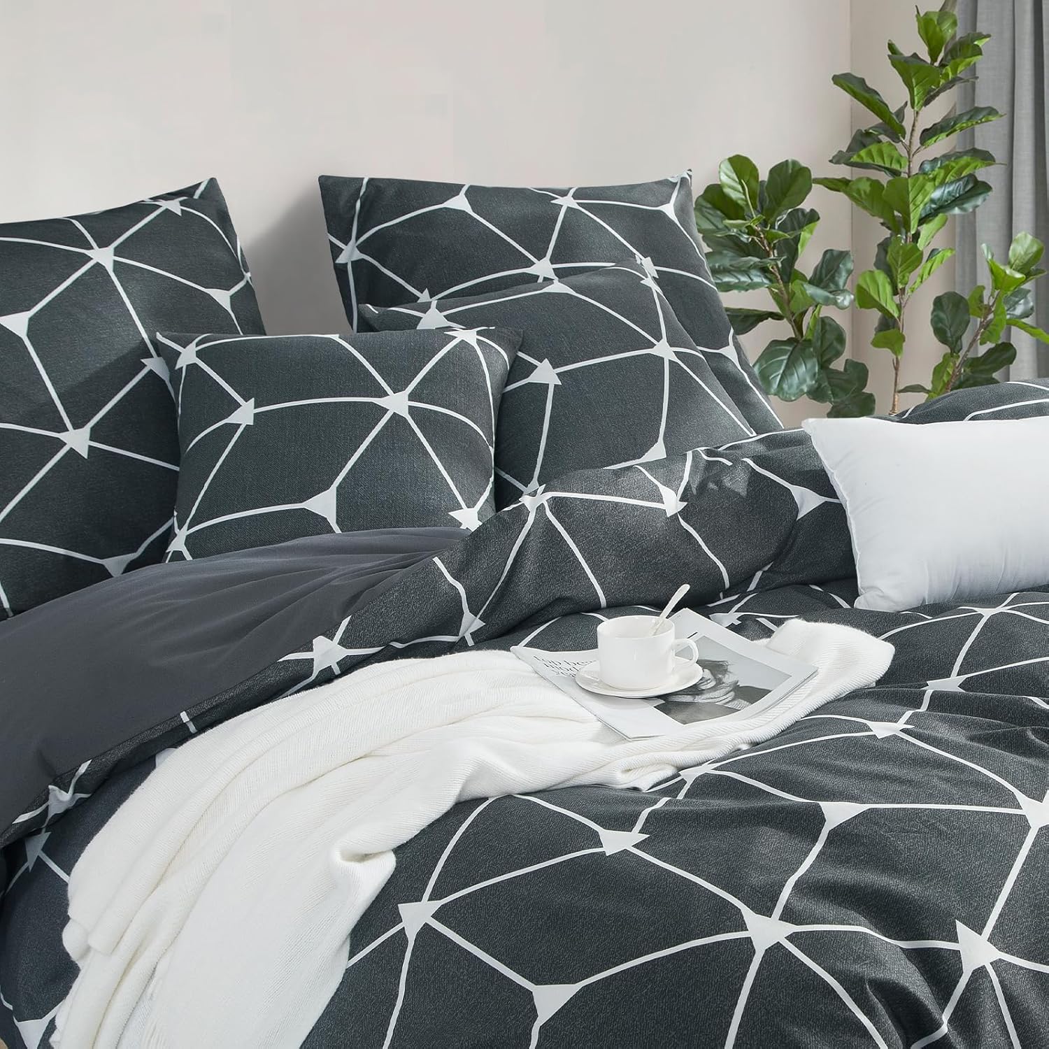 Спално бельо RUIKASI 200 x 200 см, 3 части, антрацит – Плик за завивка 200 x 200 см с геометричен мотив, Комплект спално бельо от микрофибър 2 x 2 м с цип, меко и нежелаещо гладене