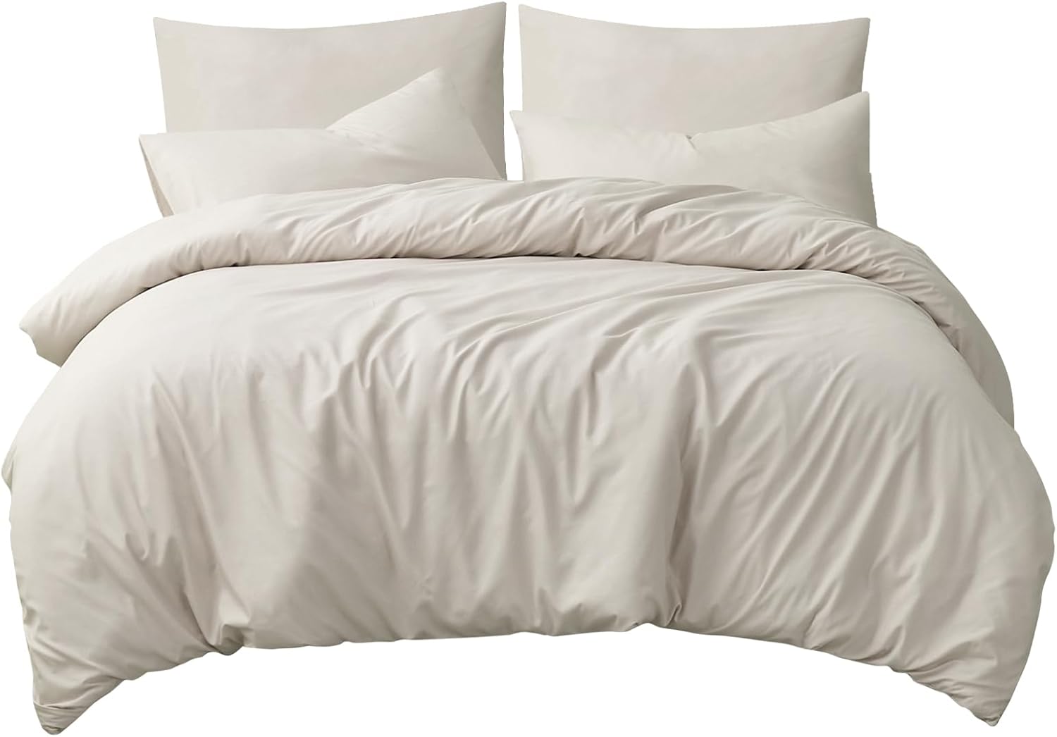 Спално бельо RUIKASI, 200 x 200 см, 3 части, бежово, комплект пликове за завивки, с калъфки за възглавници, комплект спално бельо от микрофибър, 2 x 2 м, с цип, меко и не се глади