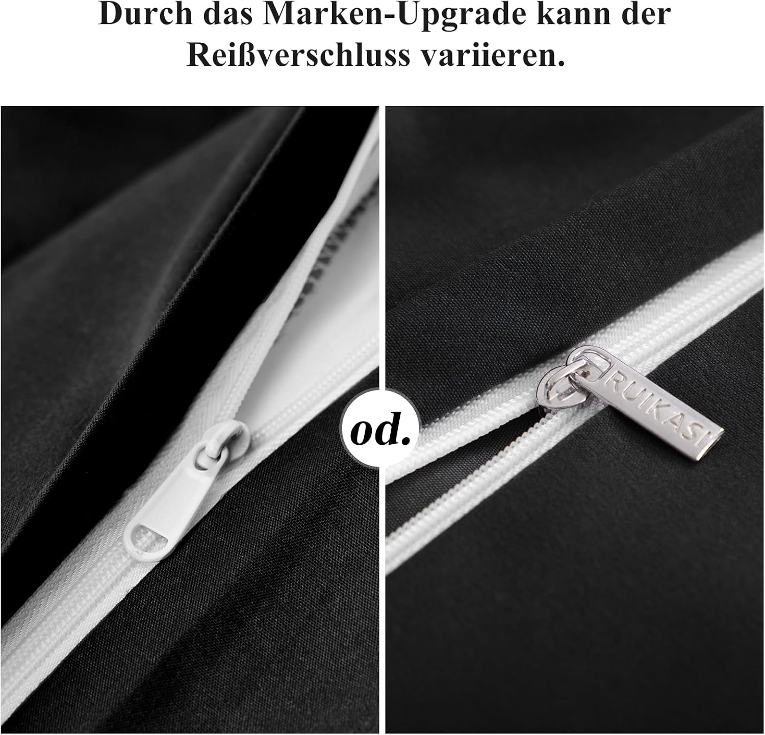 Спално бельо RUIKASI, 200 x 200 см, 3 части, черно, комплект пликове за завивки, с калъфки за възглавници, комплект спално бельо, 2 x 2 м, микрофибър, с цип, меко и не се глади