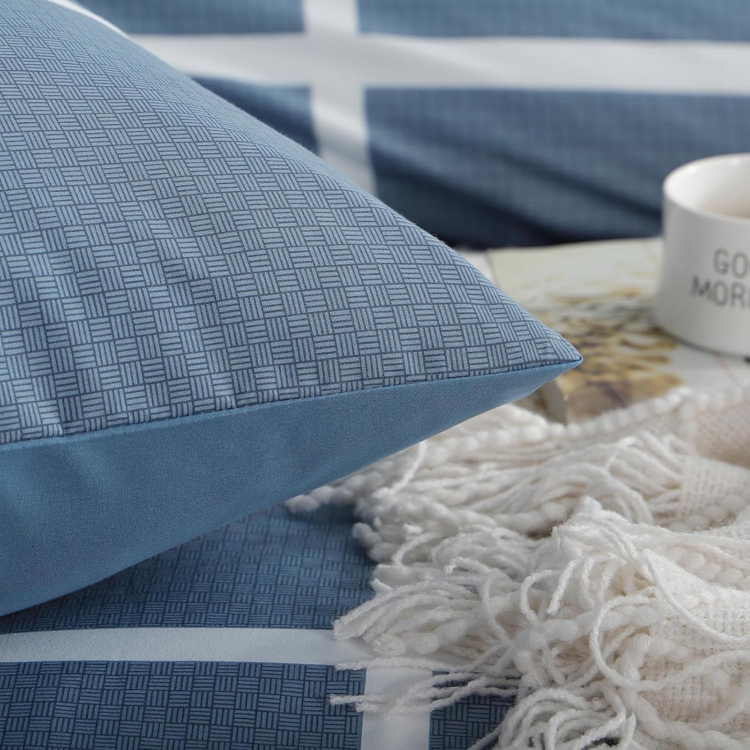 Спално бельо RUIKASI 200 x 200 см, 3 части, деним син - калъф за завивка 200 x 200 см с кариран десен, комплекти спално бельо от микрофибър 200 x 200 см с цип, меко и нежелаещо гладене