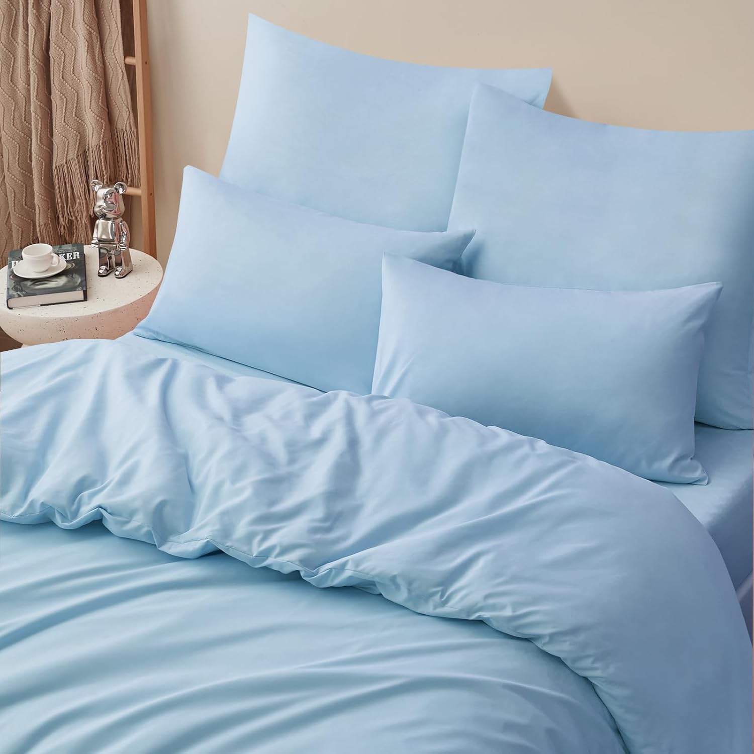 Спално бельо RUIKASI, 200 x 200 см, 3 части, син, комплект пликове за завивки, светло син, с калъфки за възглавници, комплект спално бельо от микрофибър, 2 x 2 м, с цип, меко и не се глади