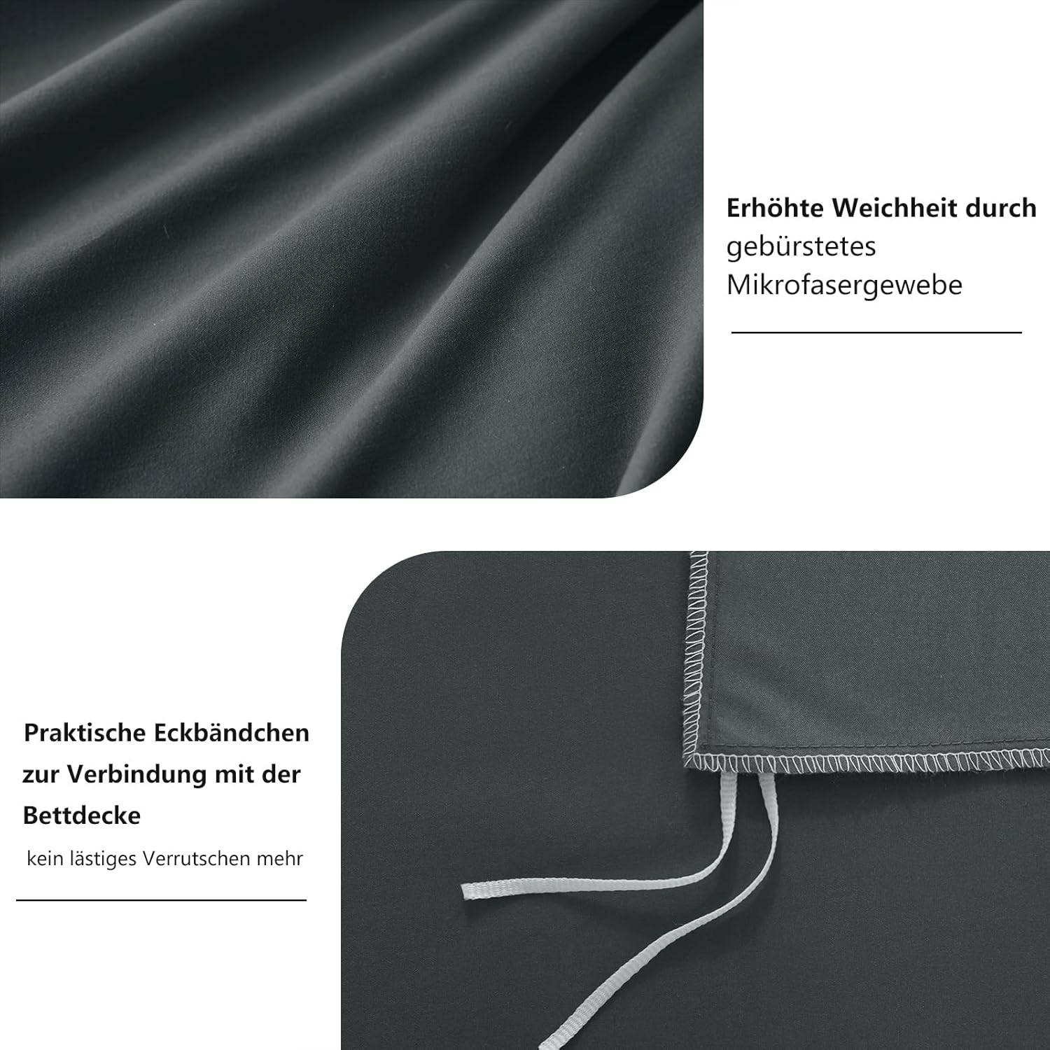 Спално бельо RUIKASI, 200 x 200 см, 3 части, сиво, комплект пликове за завивки, антрацит, с калъфки за възглавници, комплект спално бельо от микрофибър, 2 x 2 м, с цип, меко и не се глади