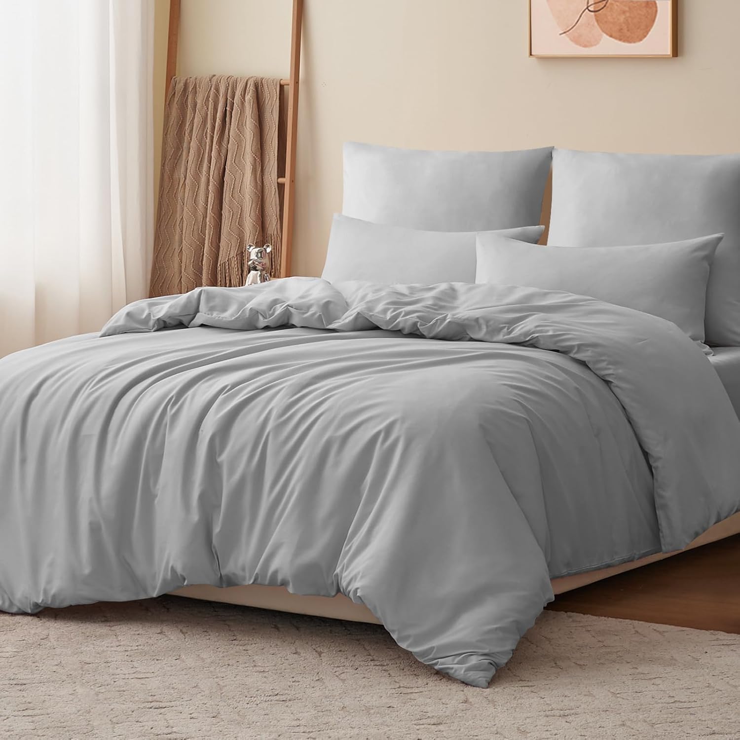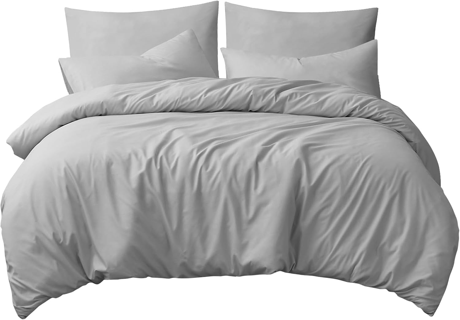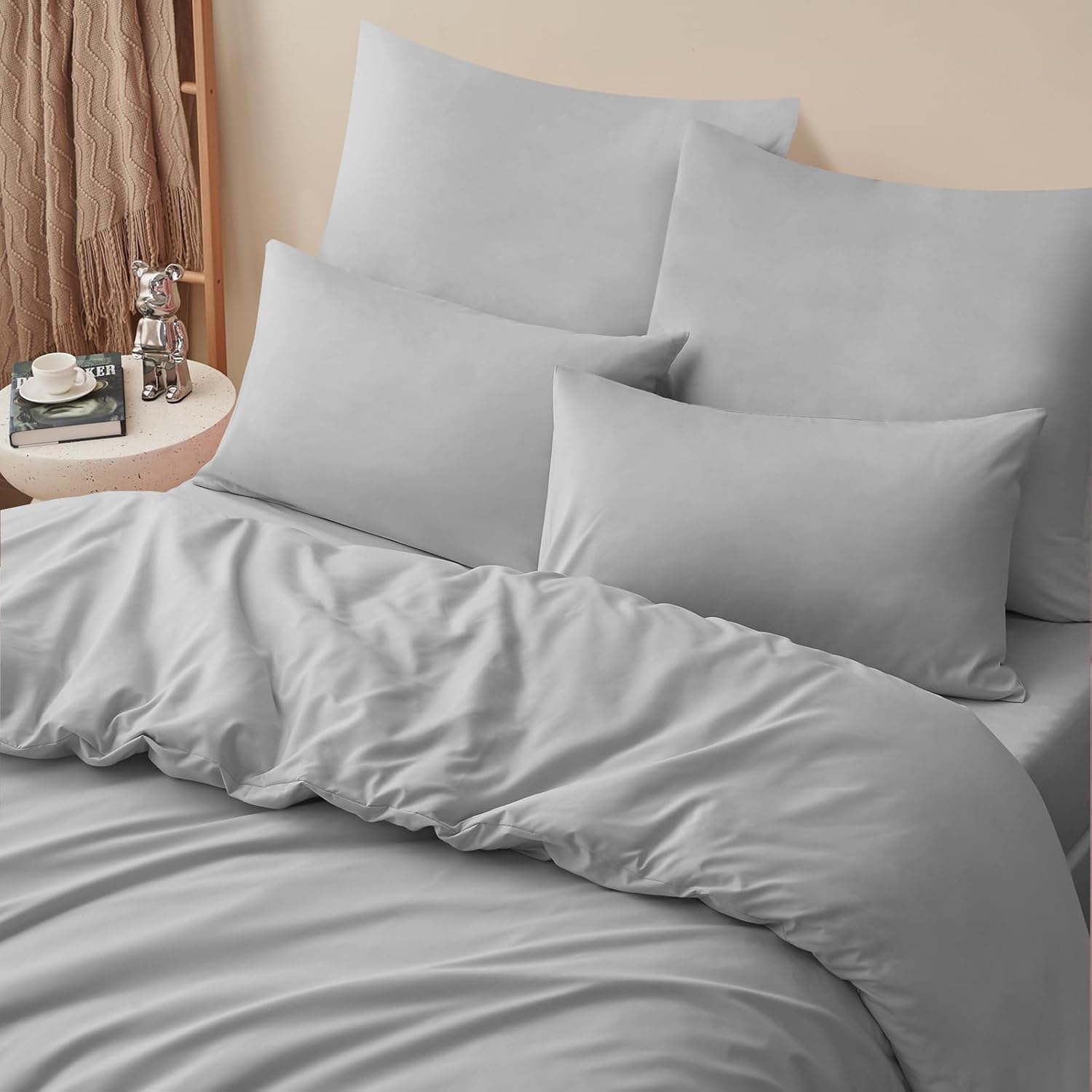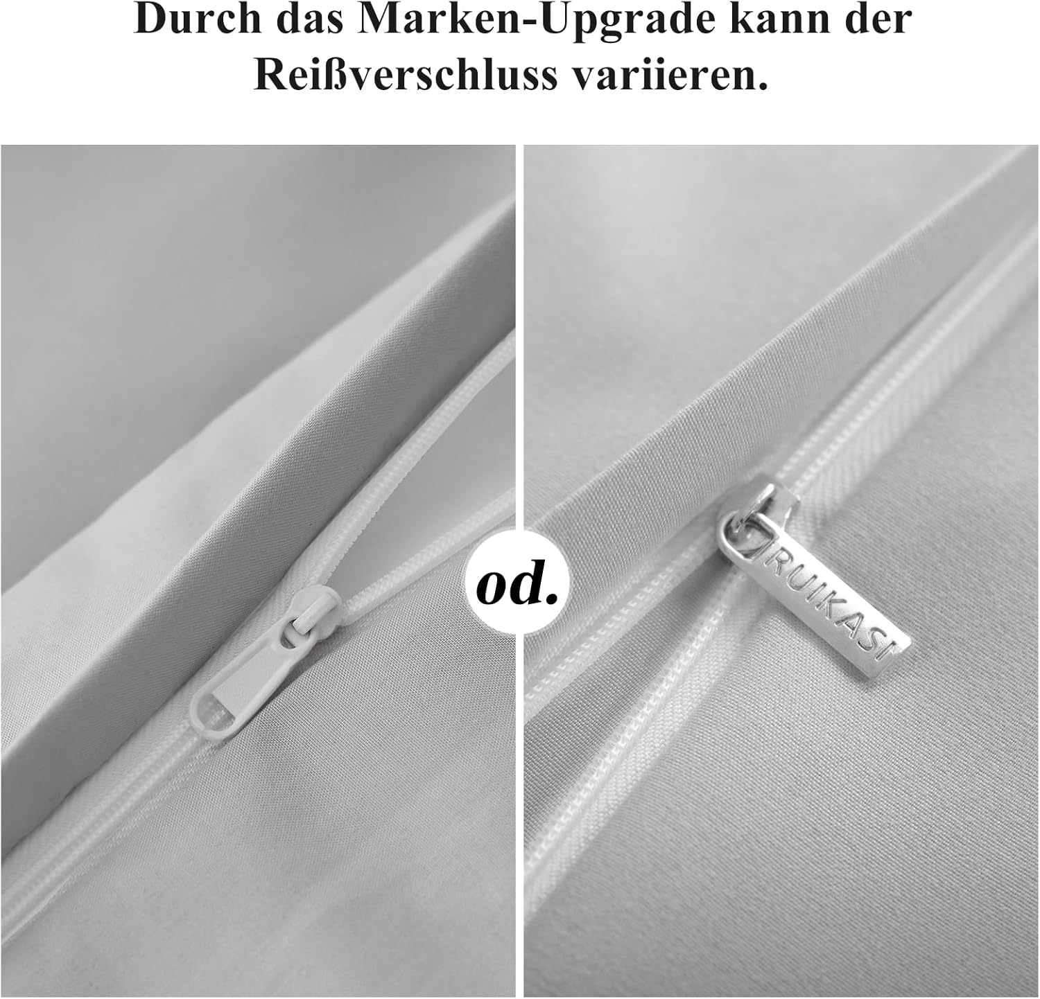 Спално бельо RUIKASI, 200 x 200 см, 3 части, сиво, Комплект пликове за завивки, светло сиво, с калъфки за възглавници, Комплект спално бельо от микрофибър, 2 x 2 м, с цип, меко и не се глади