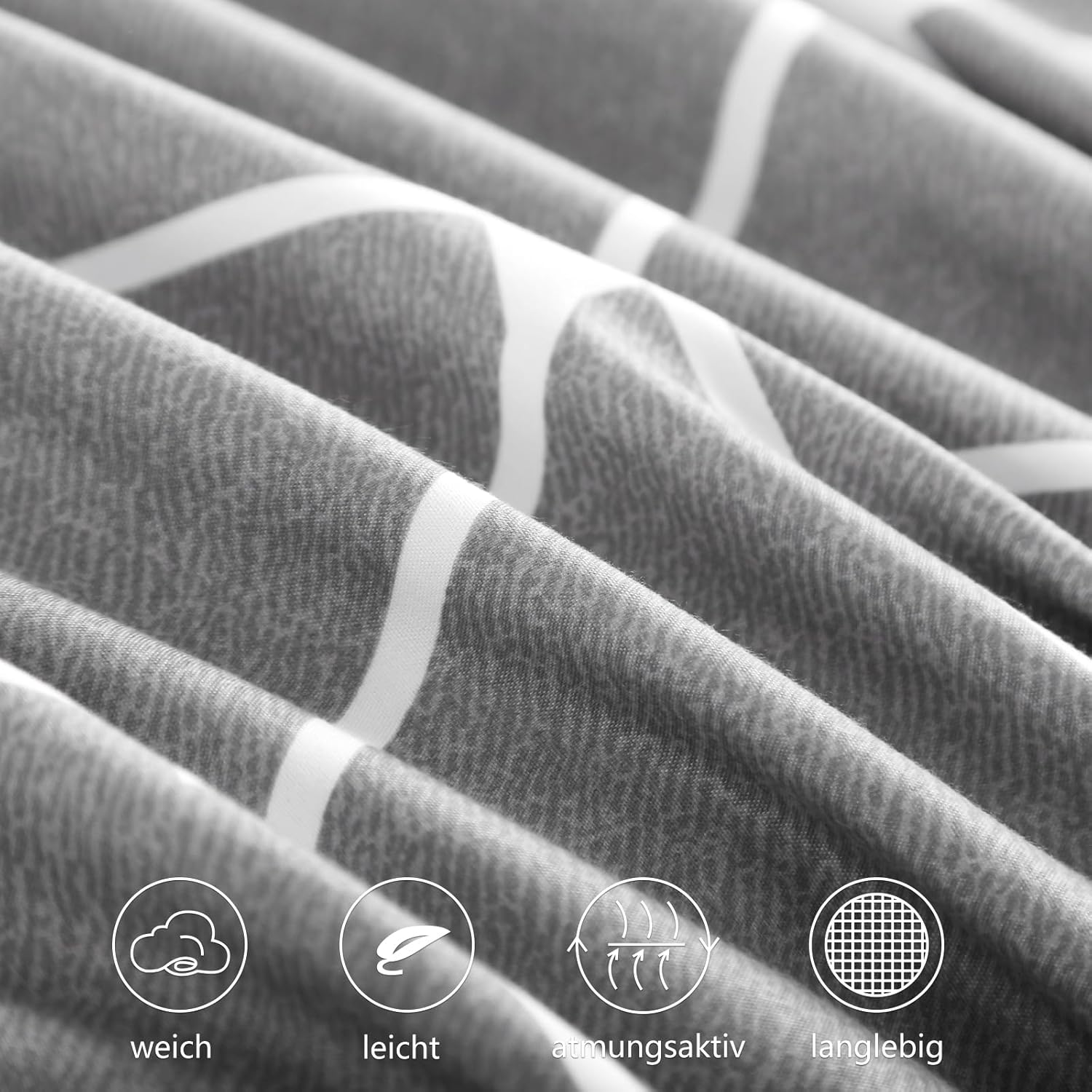 Спално бельо RUIKASI 200 x 200 см, 3 части светло сиво - Комплект калъфи за завивка 200 x 200 см с геометричен мотив, Комплект спално бельо от микрофибър с цип, меко и нежелаещо гладене