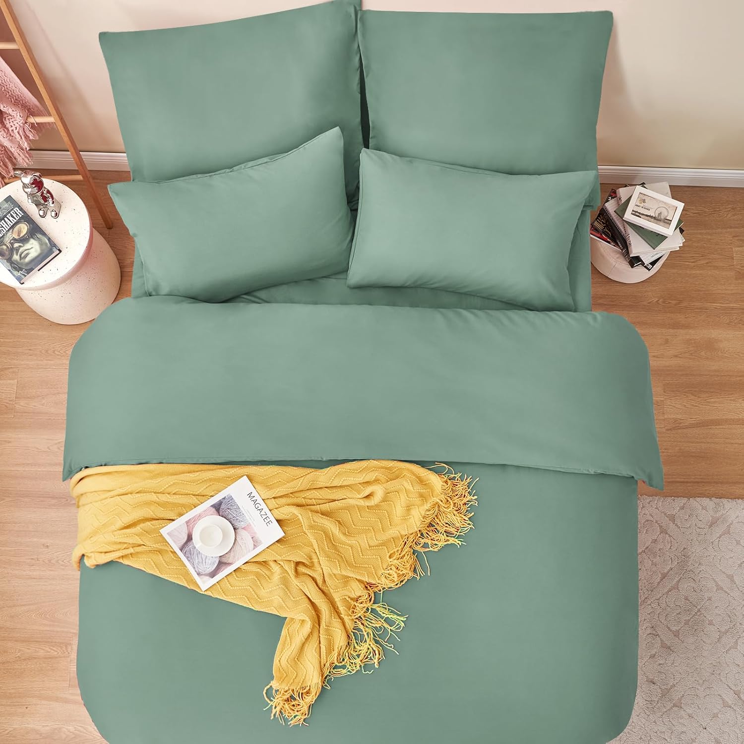• Спалното бельо с размери 200 x 135 см е представено в семпъл дизайн и е решено в няколко модерни едноцветни цвята, така че лесно можете да намерите подходящо спално бельо за интериорния стил. То също така добавя стилни акценти към спалнята и създава домашна атмосфера.