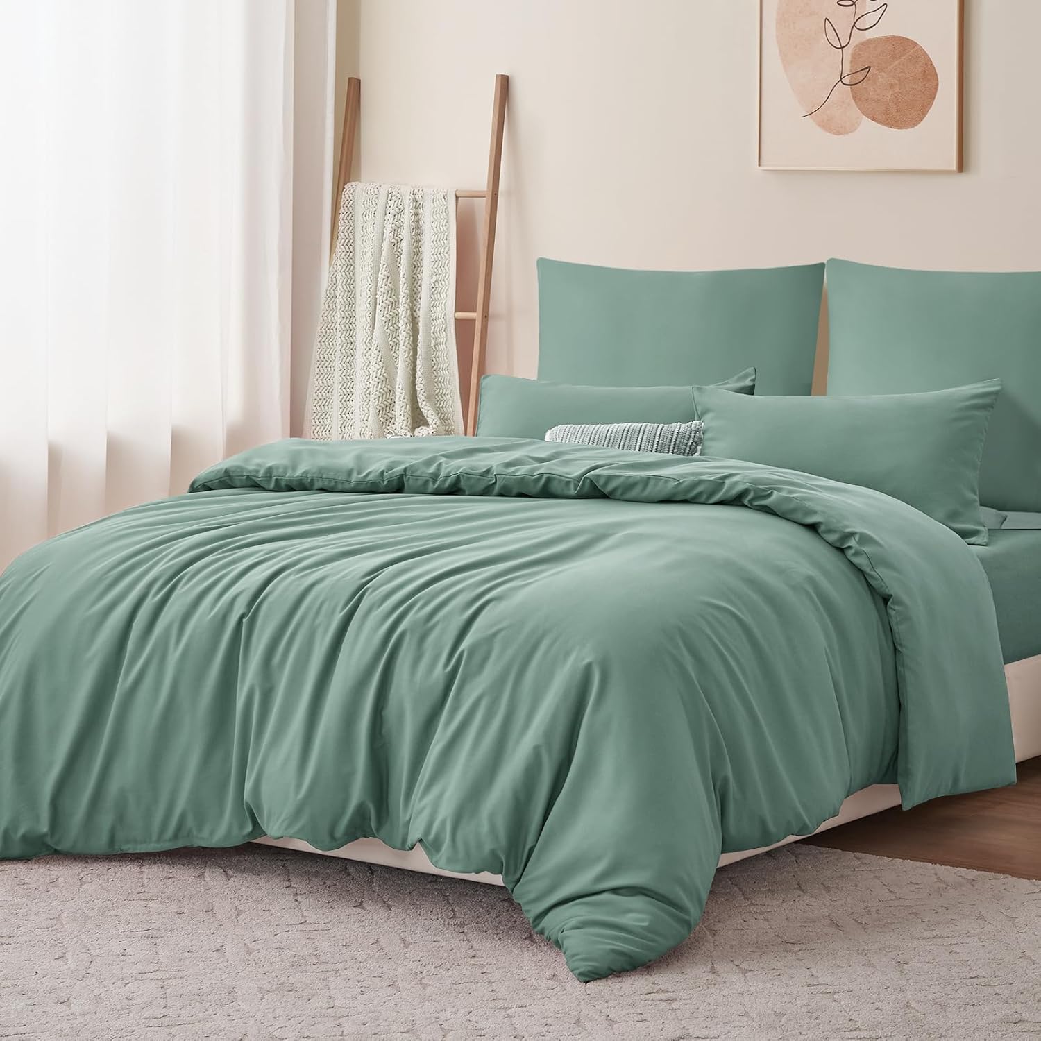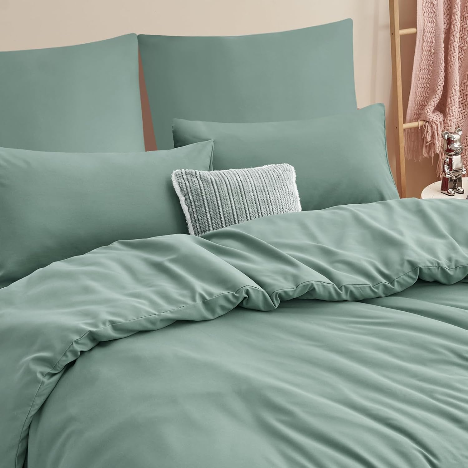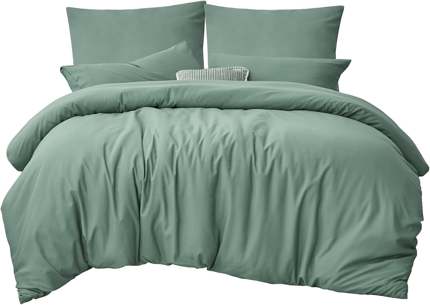 Спално бельо RUIKASI, 200 x 200 см, 3 части, зелено, Комплект пликове за завивки, градински зелено, с калъфки за възглавници, Комплект спално бельо от микрофибър, 2 x 2 м, с цип, меко и не се глади